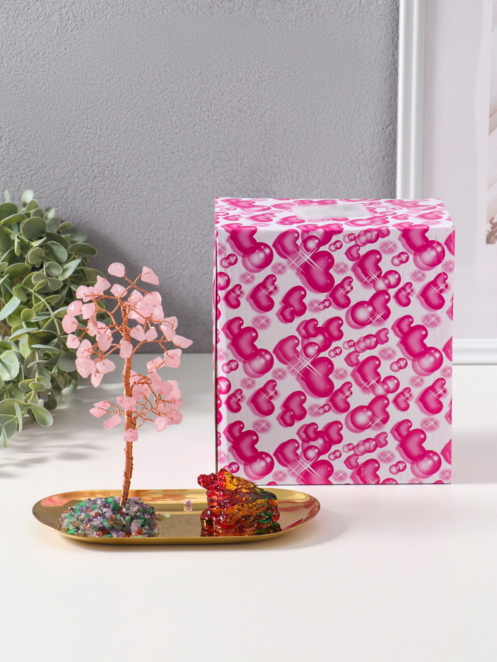 Размер упаковки: 16.5 x 17.5 x 9.5 см. tnved: 8306290000 Высота, см: 11.5 Цвет: Разноцветный Вид листочков: Камни Этот декоративный бонсай с монетами и жабой стильный талисман для привлечения изобилия в ваш дом или офис. Композиция сочетает древние символы процветания с современным дизайном, создавая атмосферу гармонии и стабильности. Каждый элемент, от металлического ствола до каменных листьев, выполнен с вниманием к деталям, превращая сувенир в самостоятельное произведение искусства для вашего интерьера. Особенности композиции