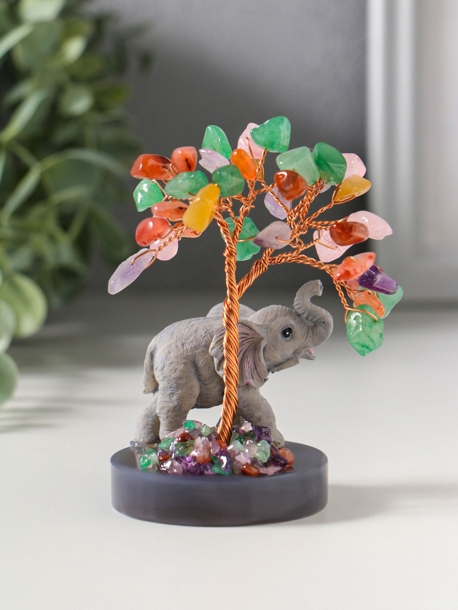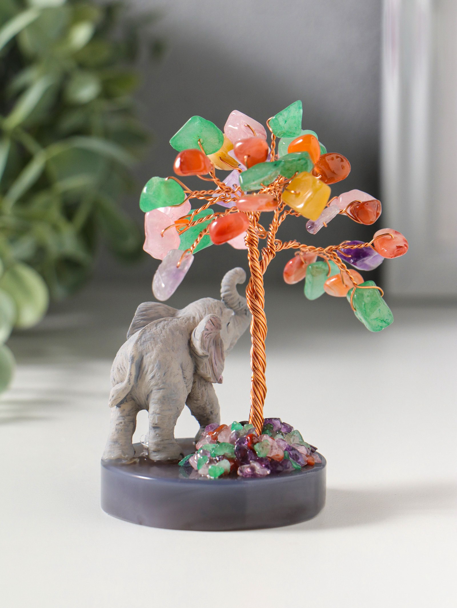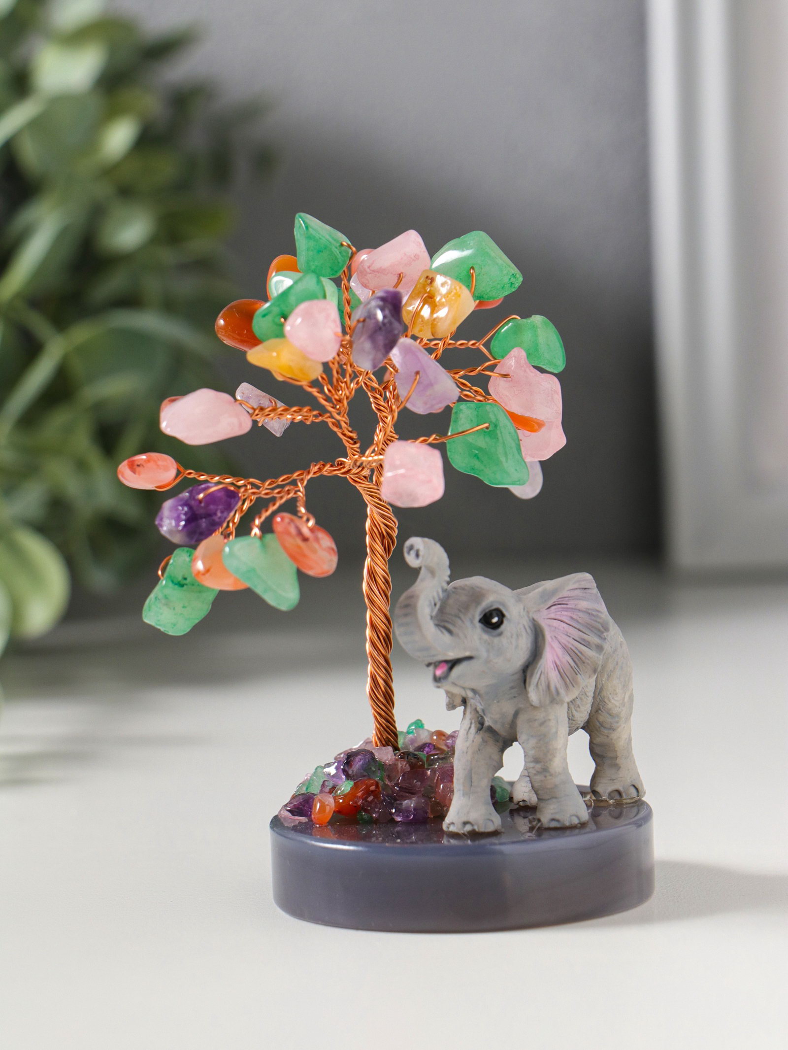 Размер упаковки: 9.5 x 7 x 12.5 см. tnved: 3926400000 Цвет: Разноцветный Вид листочков: Камни Высота, см: 10.5 Это не просто статуэтка, а миниатюрная история о мудрости и процветании, застывшая в камне. В ней причудливо переплелись символизм древнего искусства бонсай и мощная энергия слона стража домашнего очага и символа стабильности. Вглядитесь в эту композицию: могучий слон, расположившийся у подножия дерева с восемнадцатью самоцветами вместо листвы, словно охраняет плодородие и рост вашего благосостояния. Благодаря использованию полистоуна высокотехнологичного композита, внешне неотличимого от натурального камня этот сувенир обретает удивительную реалистичность и долговечность. Материал не боится влаги, перепадов температур и со временем не выцветает. Это значит, что дерево с каменной кроной будет радовать вас своей первозданной красотой долгие годы, где бы вы его ни разместили: в уютной гостиной, рабочем кабинете или в зоне отдыха на загородном участке .