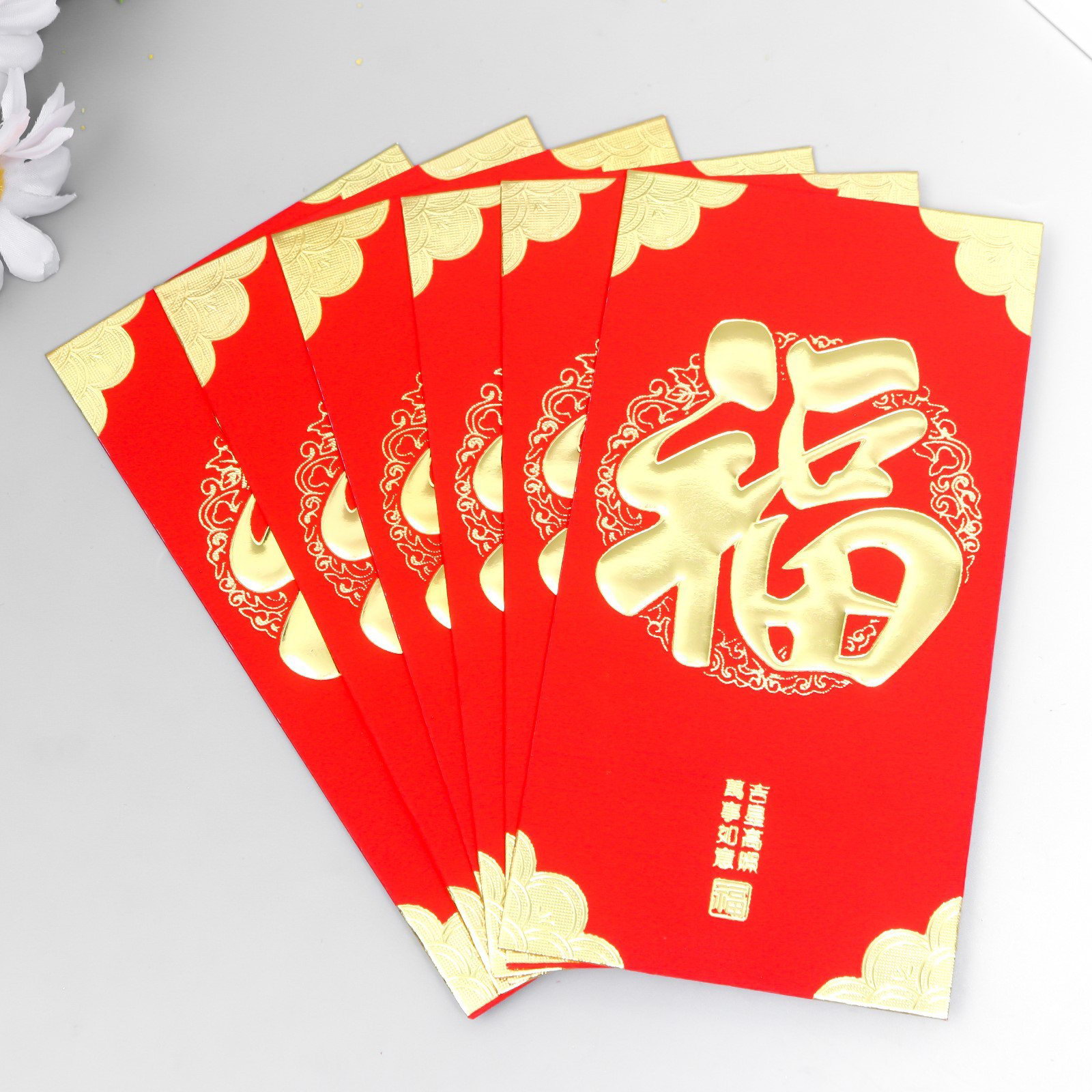 Конверт для денег подарочный Хунбао "Иероглифы: Счастье", набор 6 шт., бумага, красный с золотом, 9x17 см, 9x17 см., Китай