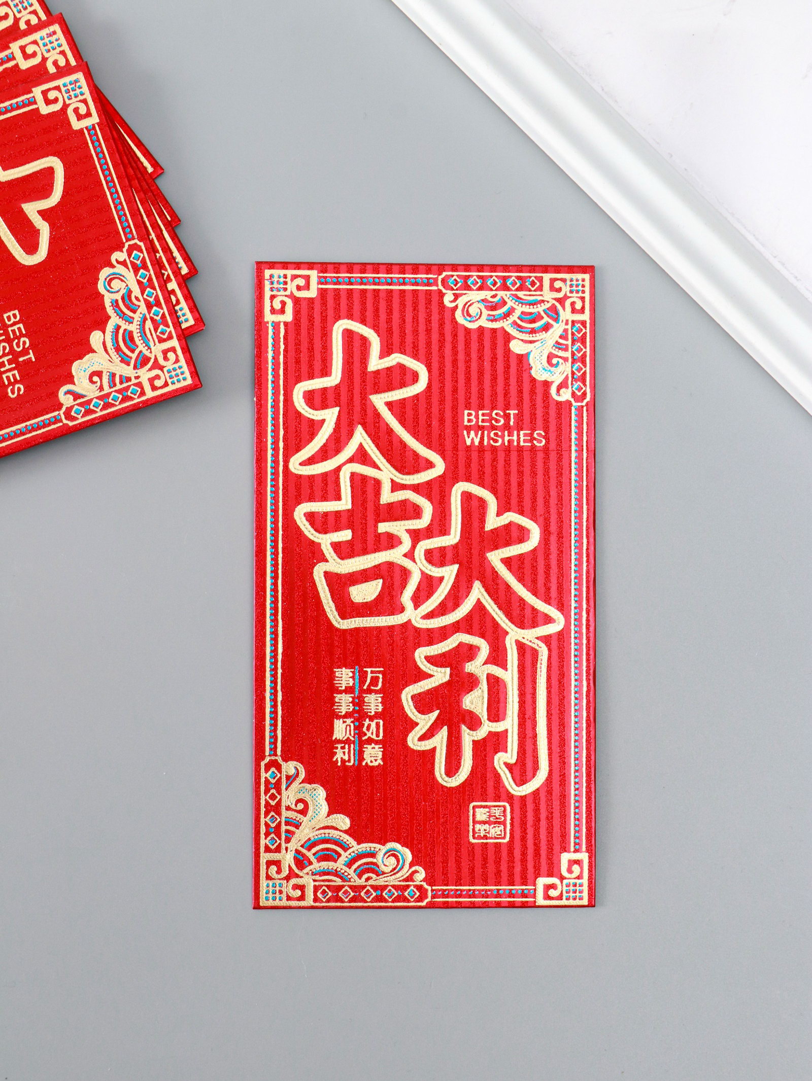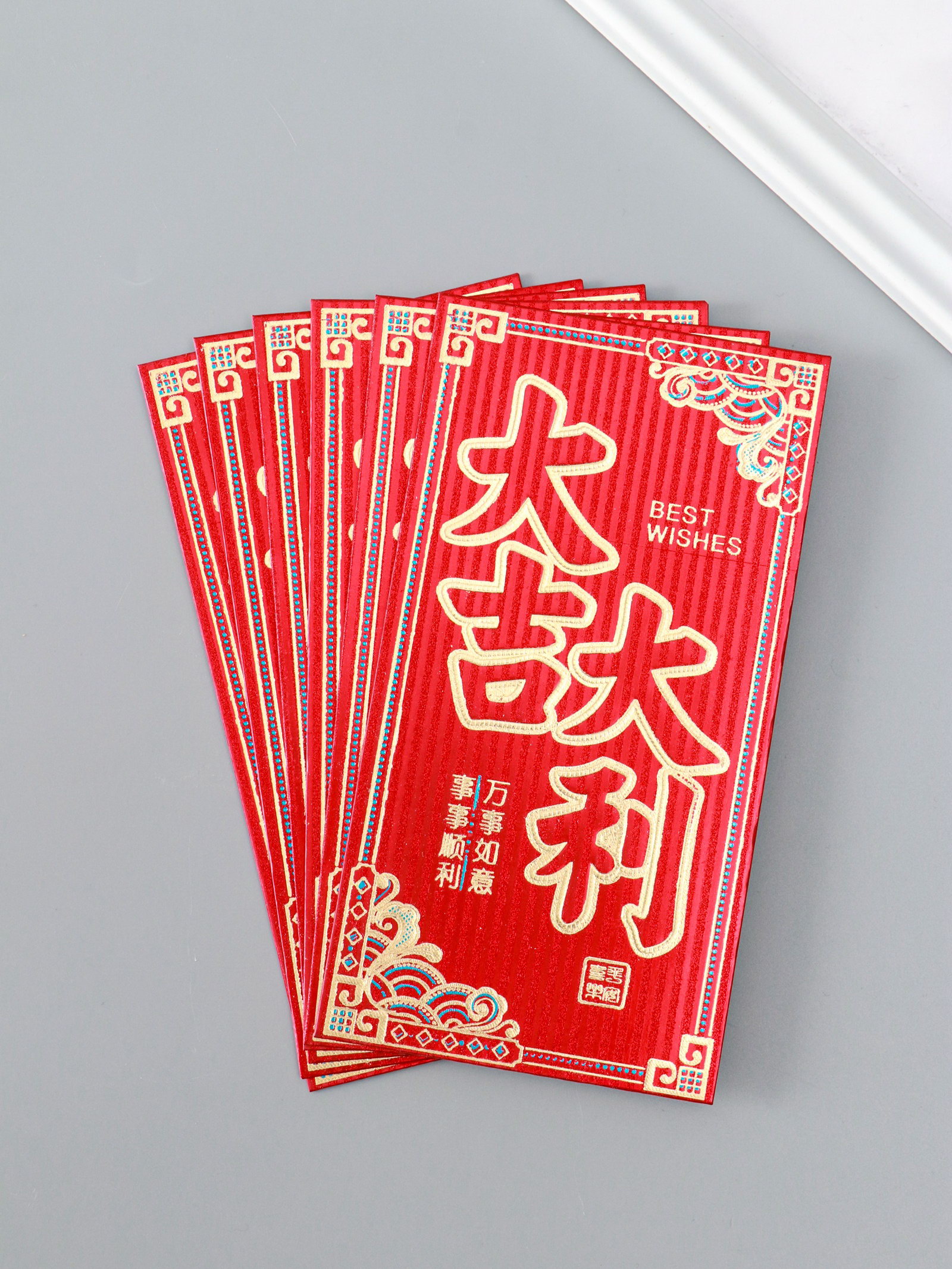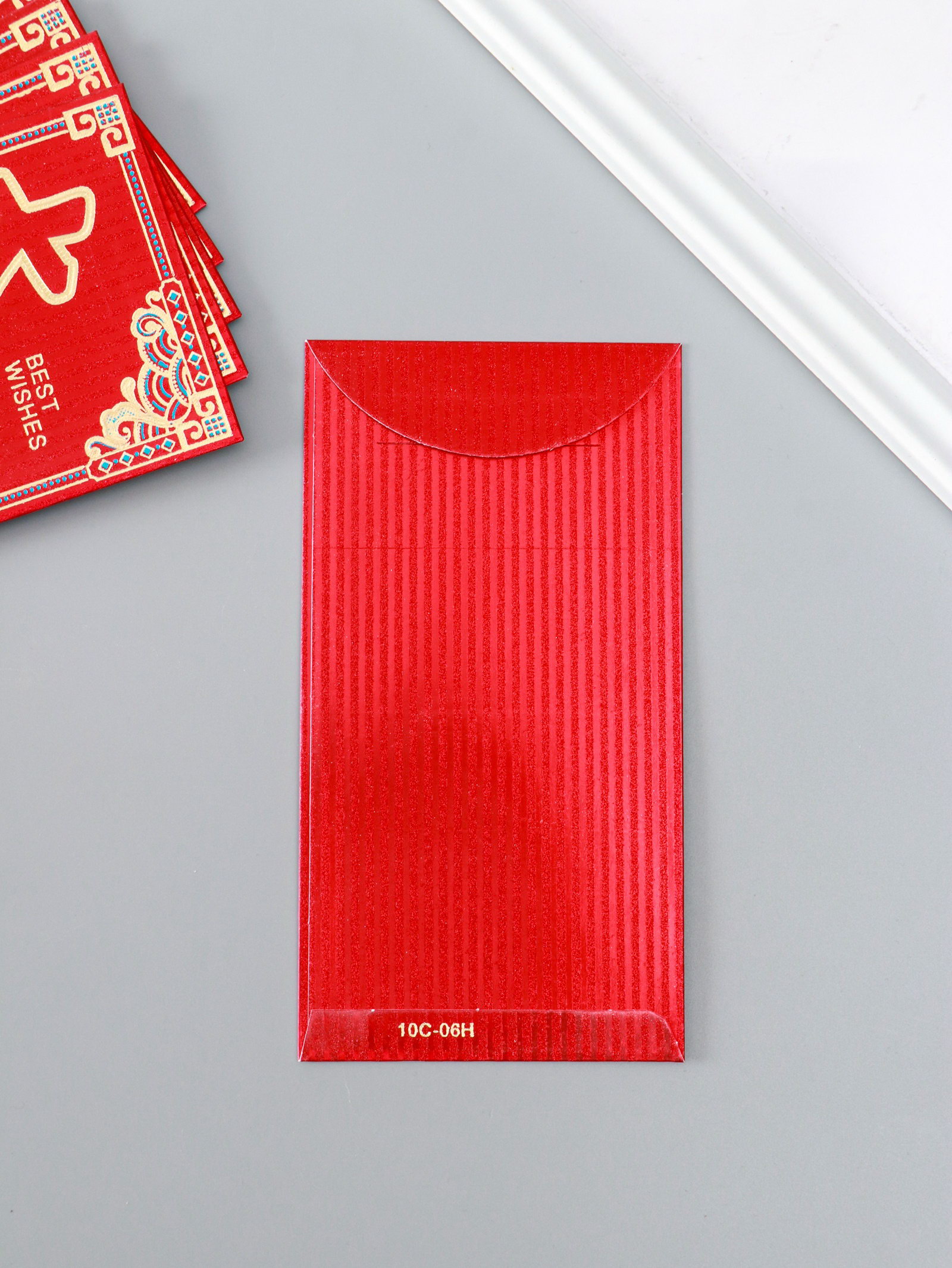 Конверт для денег подарочный Хунбао "Пожелание удачи", набор 6 шт., бумага, тиснение блеск, 9x17 см, 9x17 см., Китай