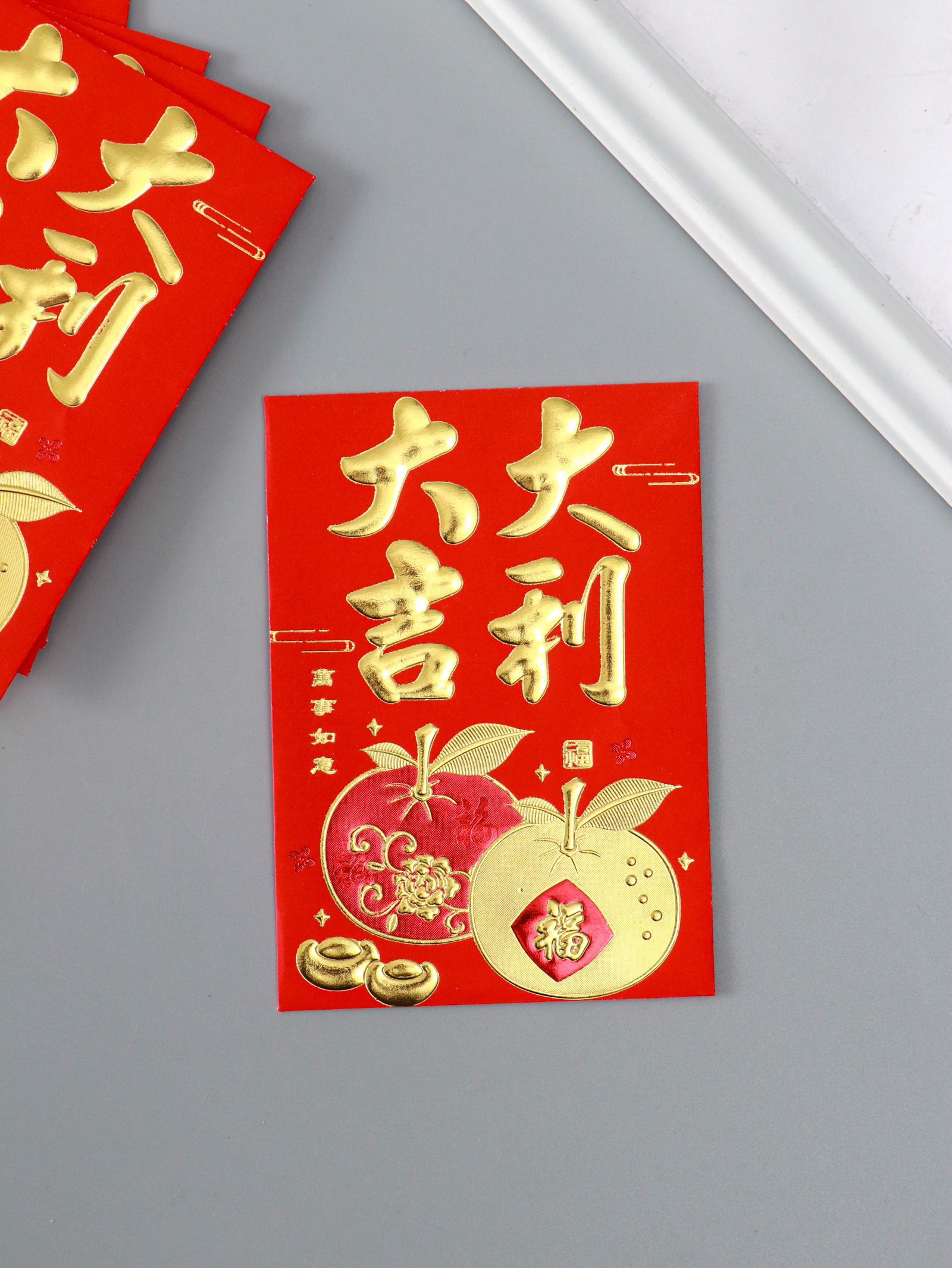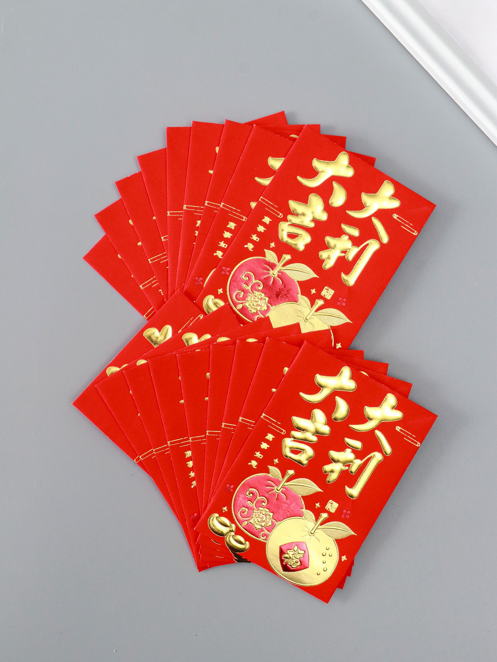Конверт для денег подарочный Хунбао "Пожелания благосостояния", набор 18 шт., бумага, тиснение, 8.2x11.5 см, 8.2x11.5 см., Китай