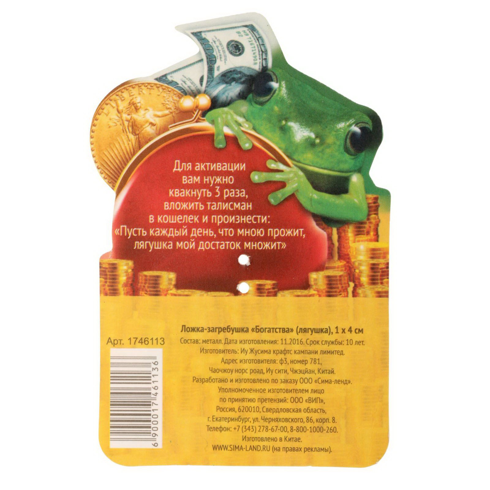 Кошельковый талисман, ложка загребушка "Богатства", 4x0.5 см, 0.5x4x0.3 см., Сима-ленд, Китай
