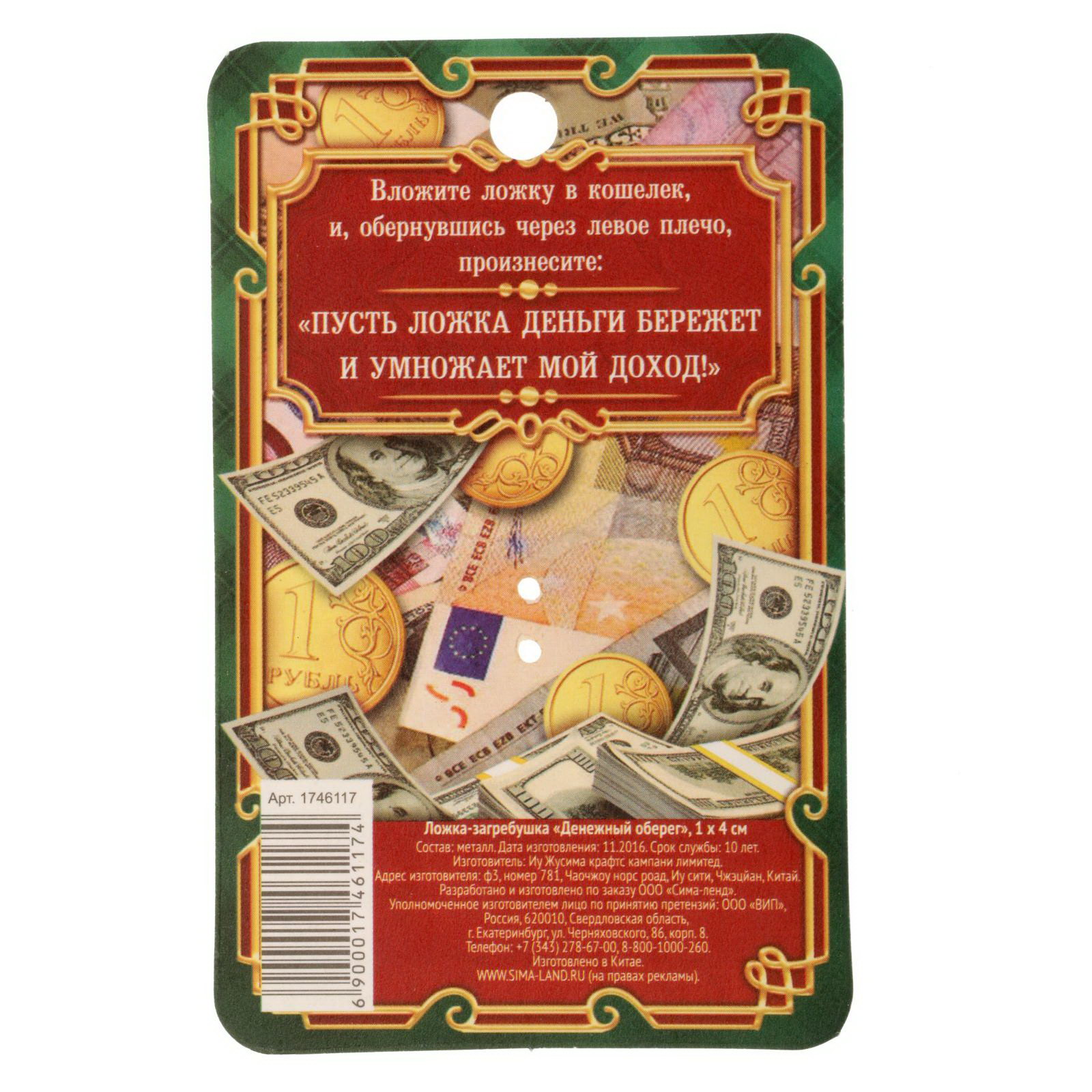 Кошельковый талисман: ложка загребушка "Денежный оберег", 4 x 0.5 см, 0.5x4x0.3 см., Сима-ленд, Китай