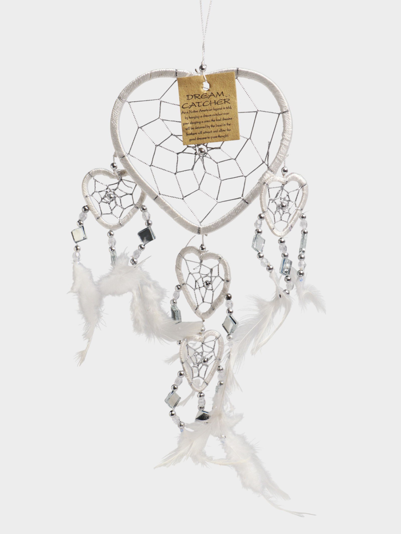 Ловец снов "Пять белых сердец", 0.7x16x45 см, 16х16х45 см., Индонезия