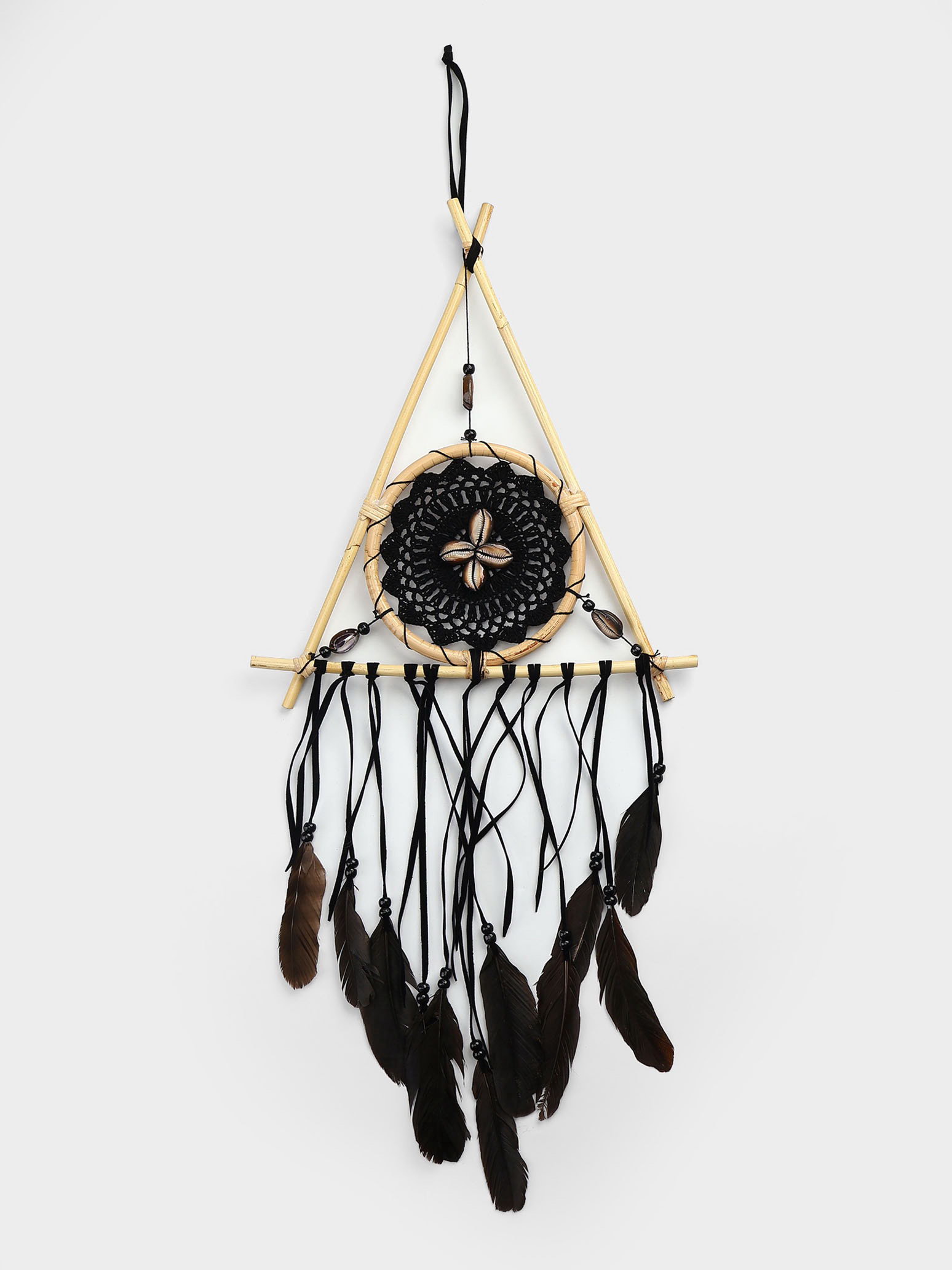 Размер упаковки: 33 x 3 x 39 см. tnved: 6701000000 Особенности ловцов снов: Без особенностей Цвет: Чёрный Форма: Треугольная Ловец снов древний амулет, пришедший из культуры североамериканских индейцев. Хорошие сны проходят сквозь паутину и мягко спускаются к спящему по перьям, а плохие запутываются в сети и исчезают с первыми лучами солнца. Этот шаманский ловец снов высотой 70 см выполнен в чёрной гамме с использованием ракушек, перьев и текстиля. Его треугольная форма и внушительный размер делают его не просто оберегом, а мощным визуальным акцентом в интерьере. Страж сновидений