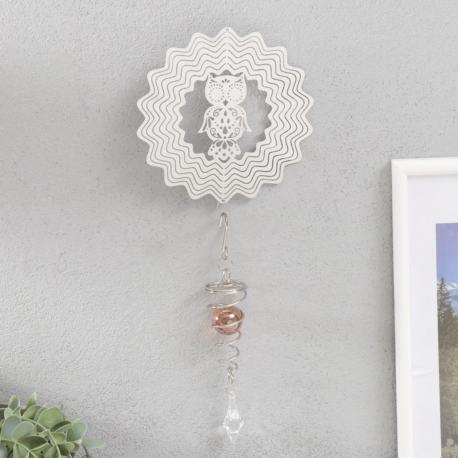 Музыка ветра: ловец солнца 3D "Ветряной колокольчик. Ажурный филин", с бусиной, 13.5x13.5x31 см, 13.5х13.5х31 см., Китай