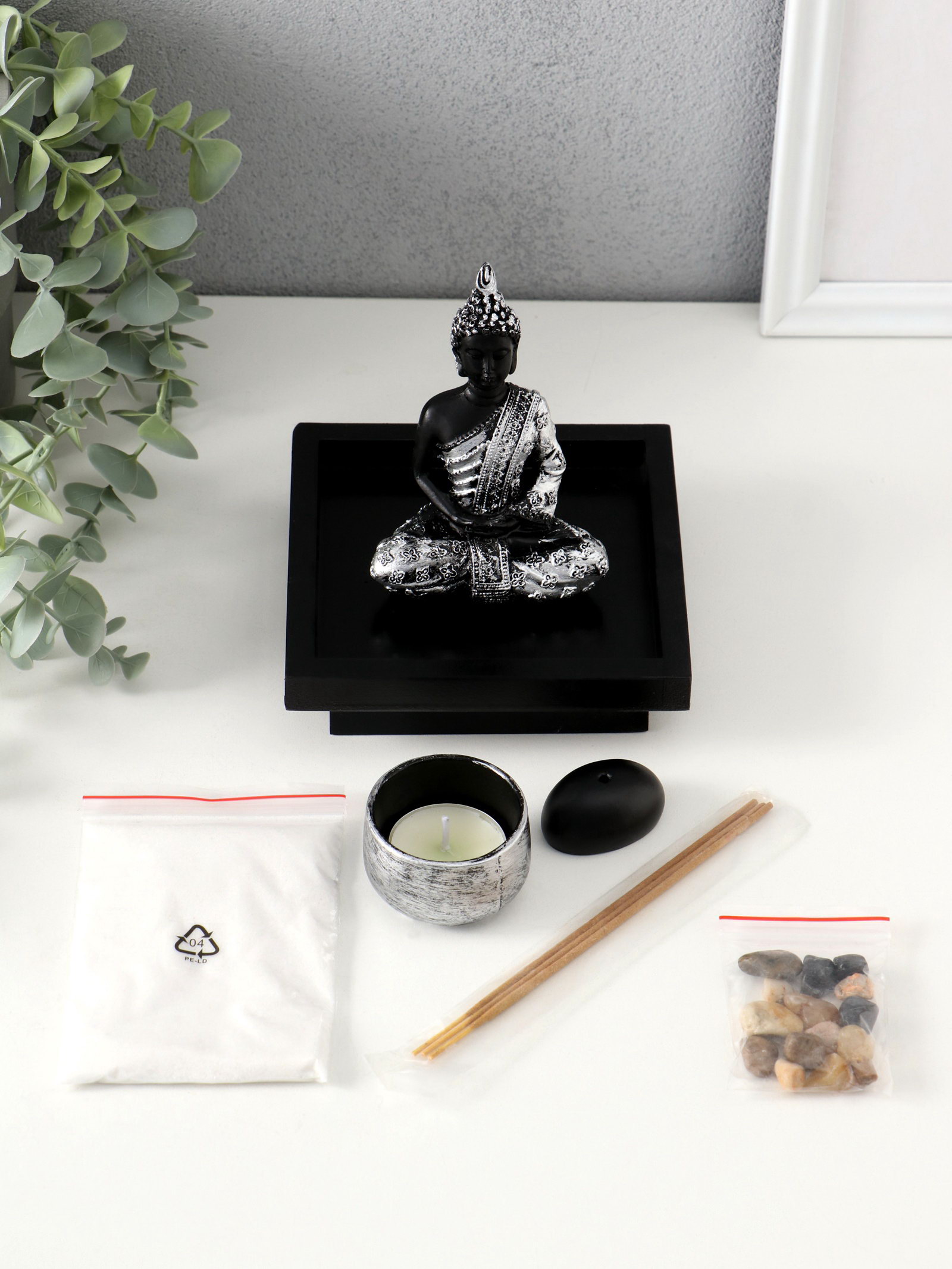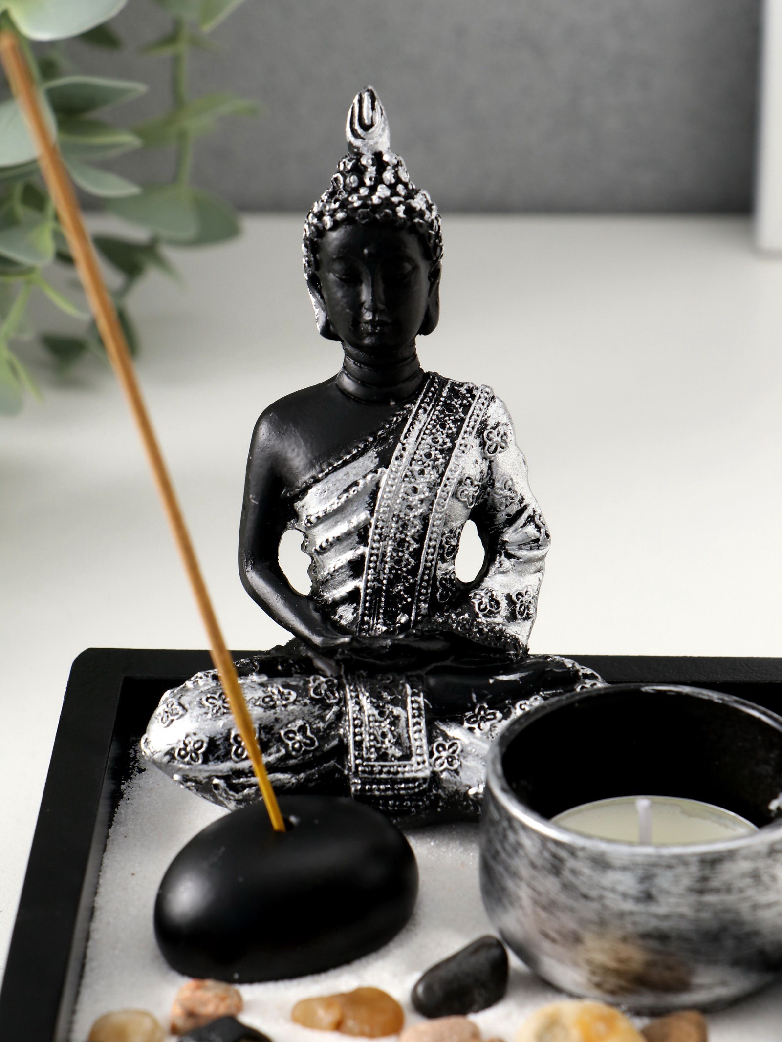 Форма фигуры: Будда, Мыслитель (духовный наставник) Размер упаковки: 8.5 x 13.5 x 13.5 см. Тип благовоний: Палочки Фигурное: Да Длина, см: 12.5 Высота, см: 13 Цвет: Чёрный Ширина, см: 12.5 Имя Бога: Будда tnved: 4420190000 Настольный сад в стиле дзен с Буддой и подставкой для благовоний это ваш личный источник гармонии и сосредоточения. Компактная композиция идеально впишется на рабочем столе или полке, создавая атмосферу спокойствия. Особенности