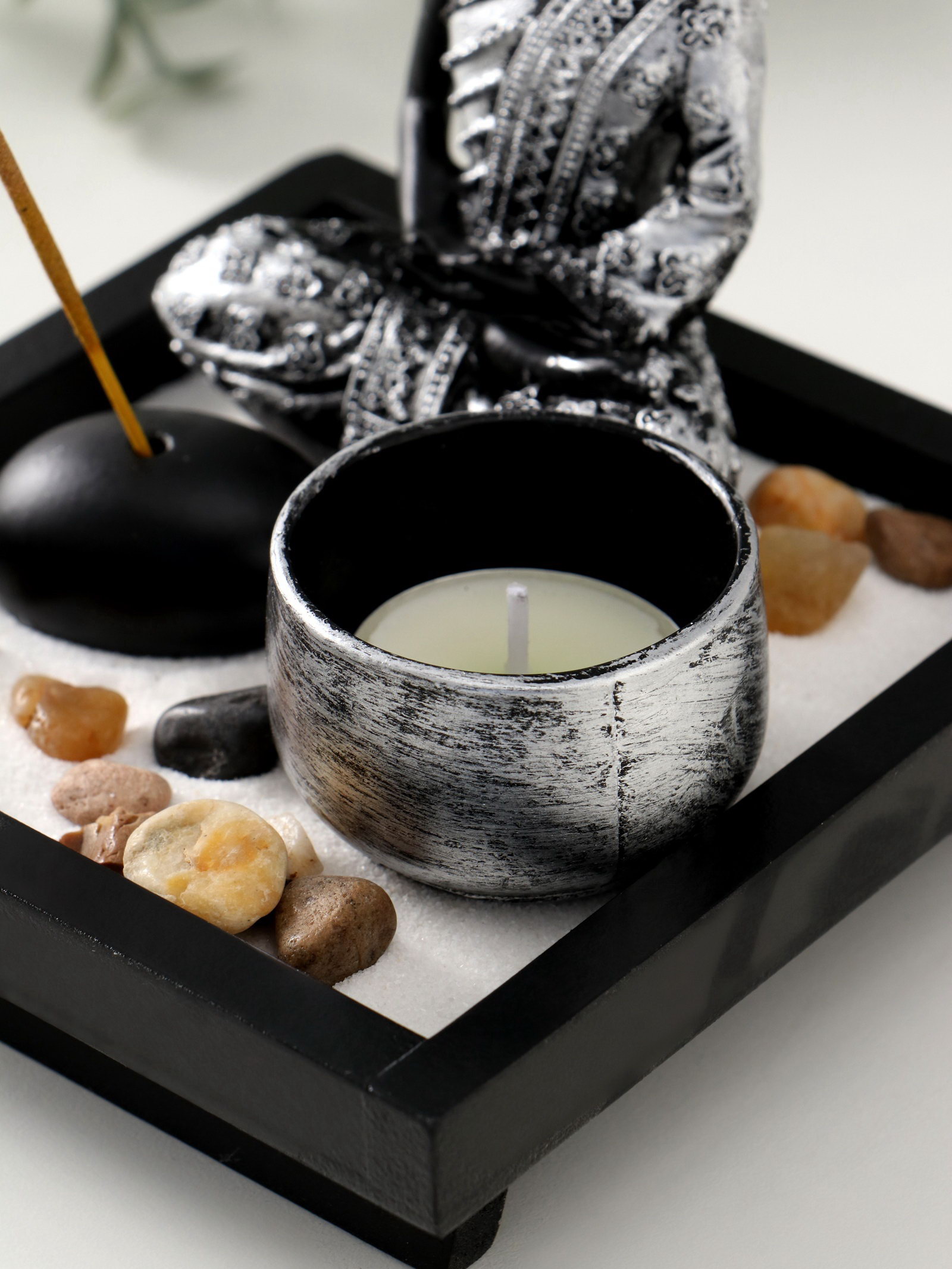 Практическая польза Такой мини-сад помогает найти внутренний баланс и справиться со стрессом. Создание узоров на песке способствует расслаблению и улучшению концентрации. Аромат благовоний дополняет эффект, наполняя пространство умиротворением. "Это не просто декоративный элемент, а инструмент для достижения состояния покоя и ясности мышления". Подходит как для домашнего использования, так и для офисной среды, где важно сохранять продуктивность и спокойствие. Может стать отличным подарком для ценителей восточной философии и практикующих дзен. | ||