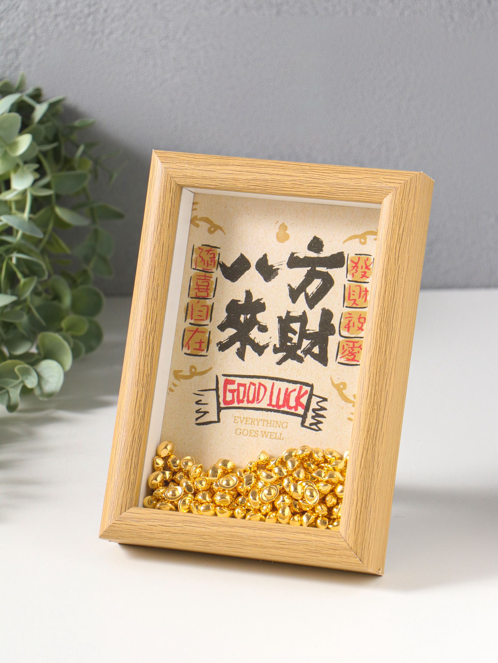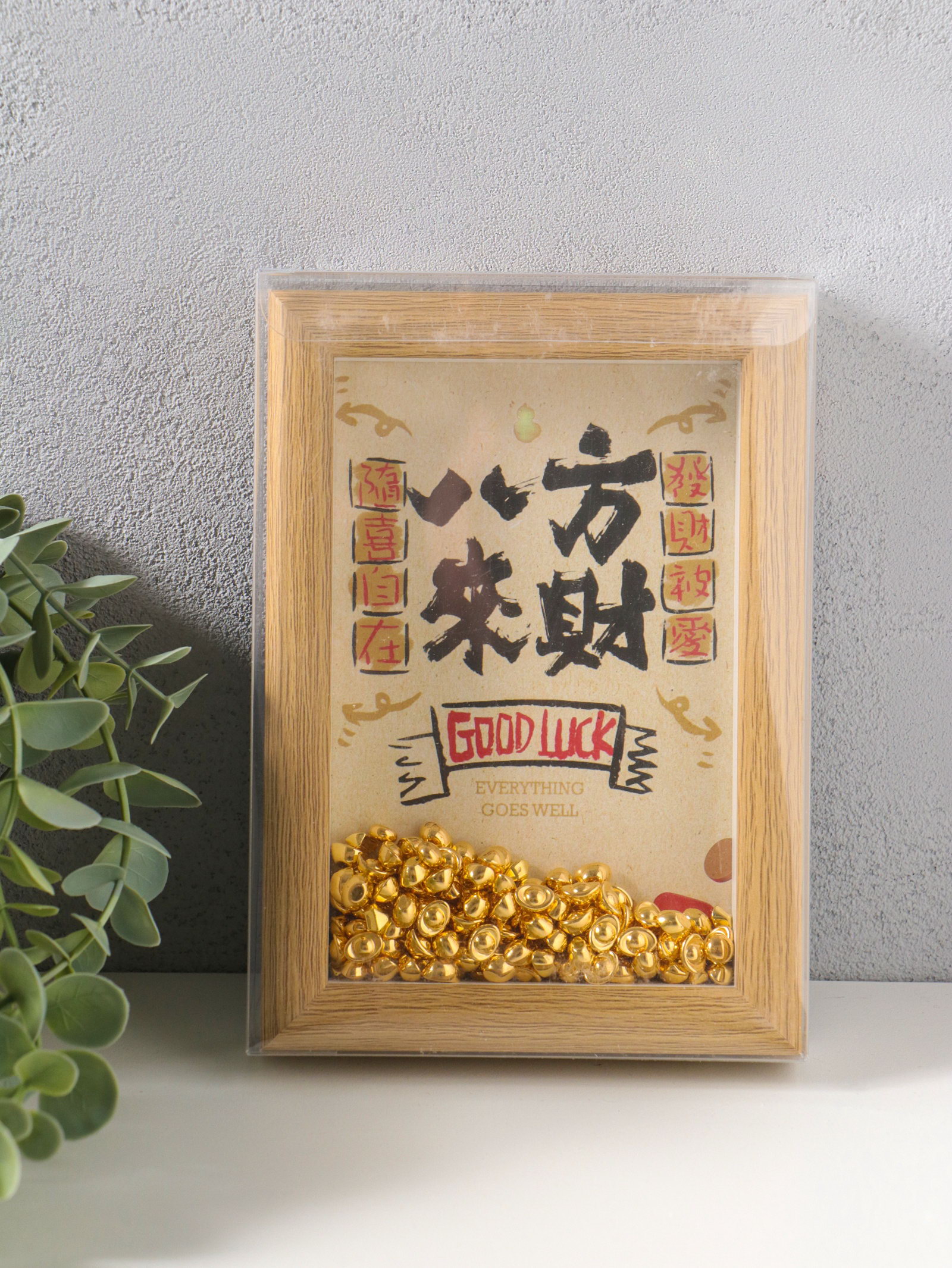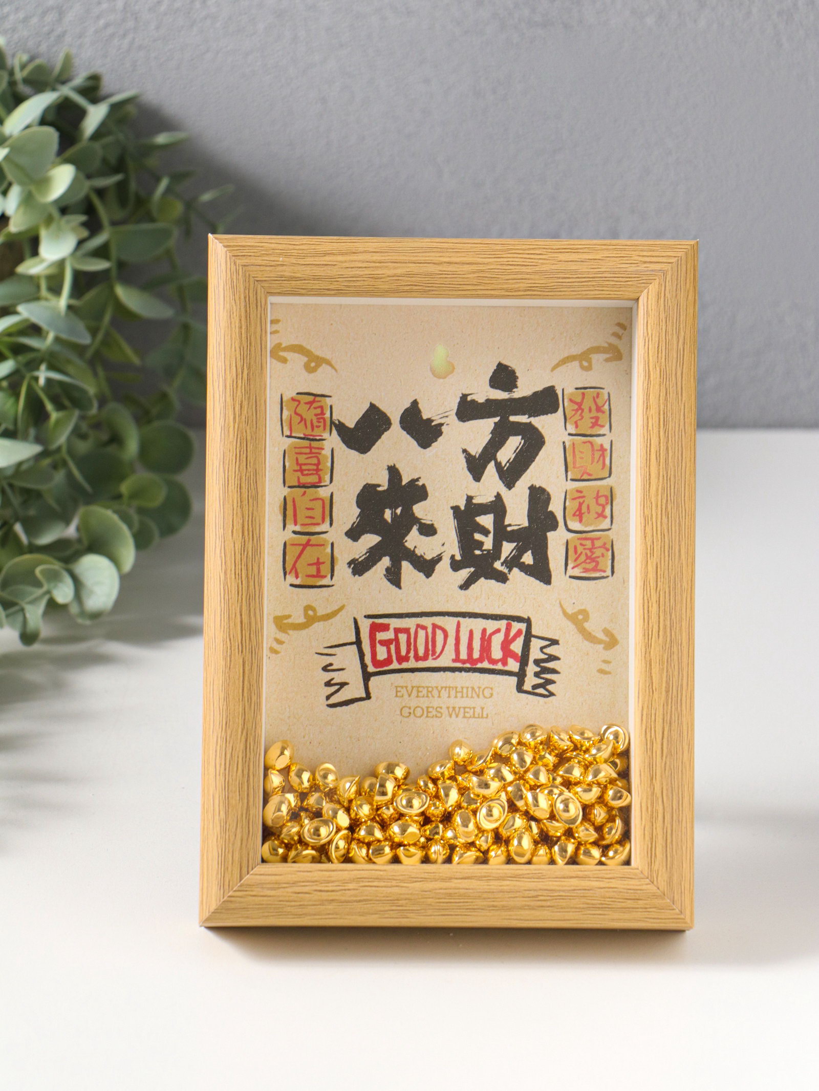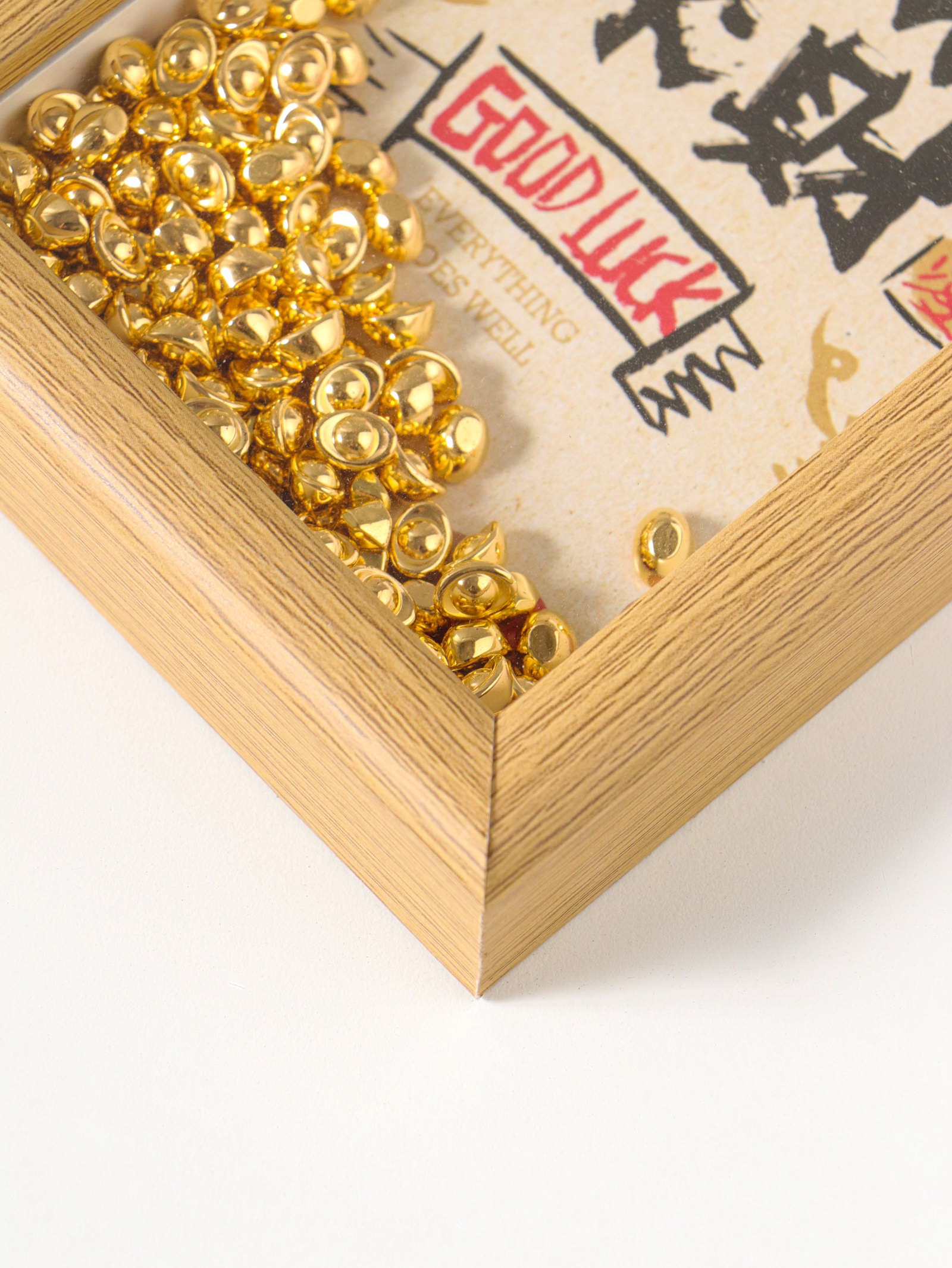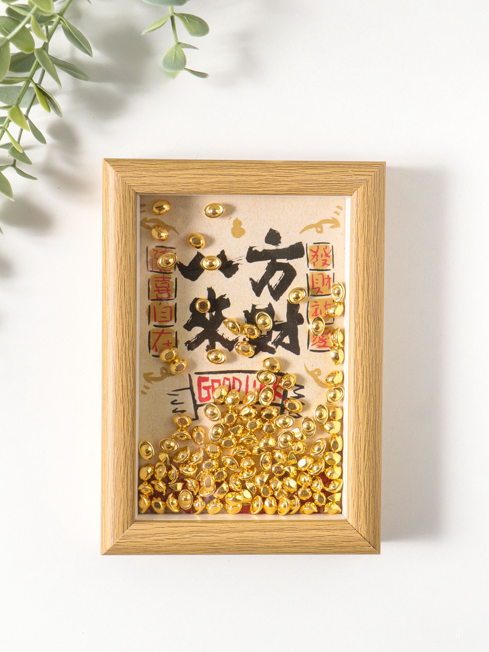 Настенный декор, панно в раме "Золотые слитки: Пожелание удачи", 3x12.3x17.2 см, 12.3x3x17.2 см., Китай