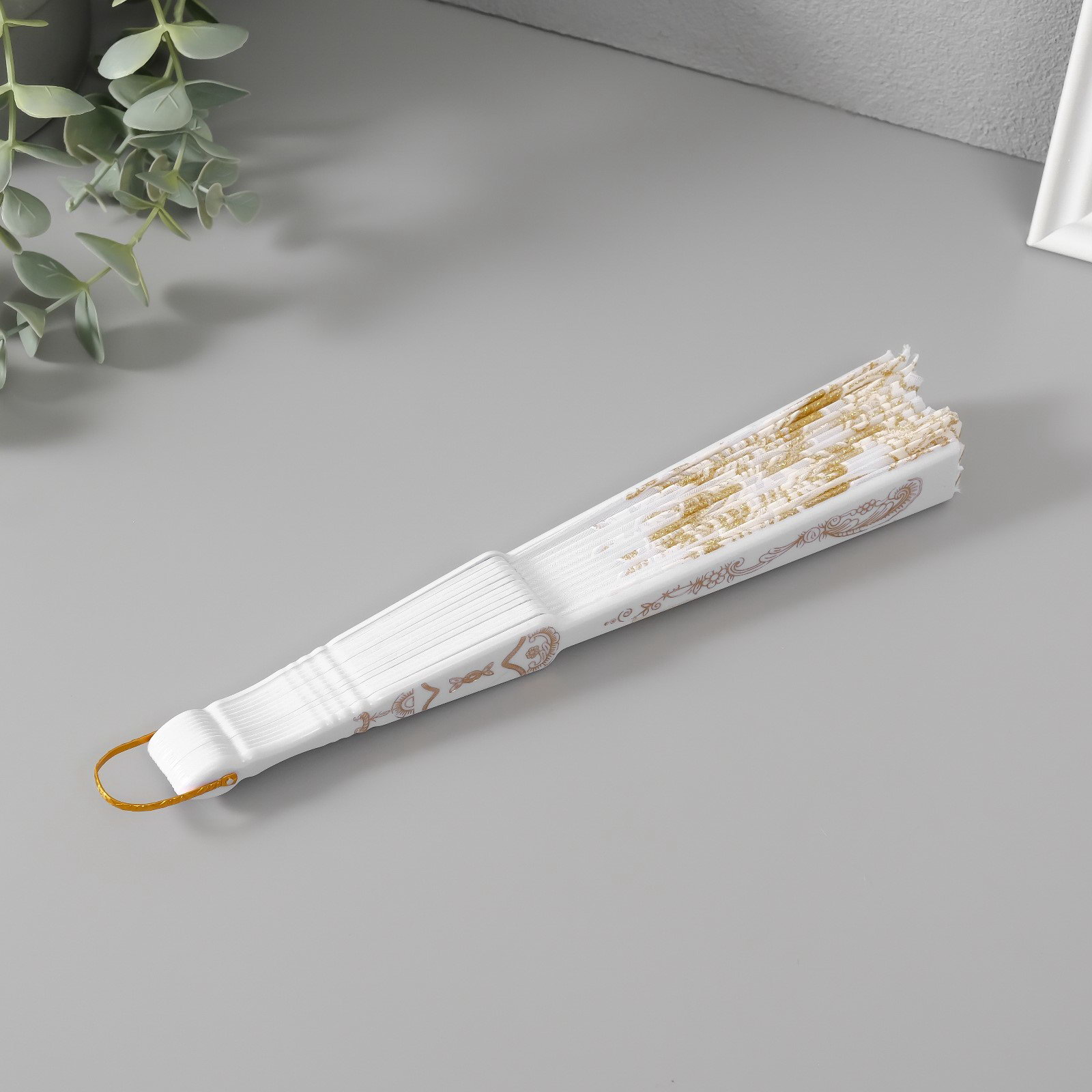Веер складной "Золотые узоры", пластик, текстиль, блёстки, 22.5 см, МИКС, 22.5x22.5 см., Китай