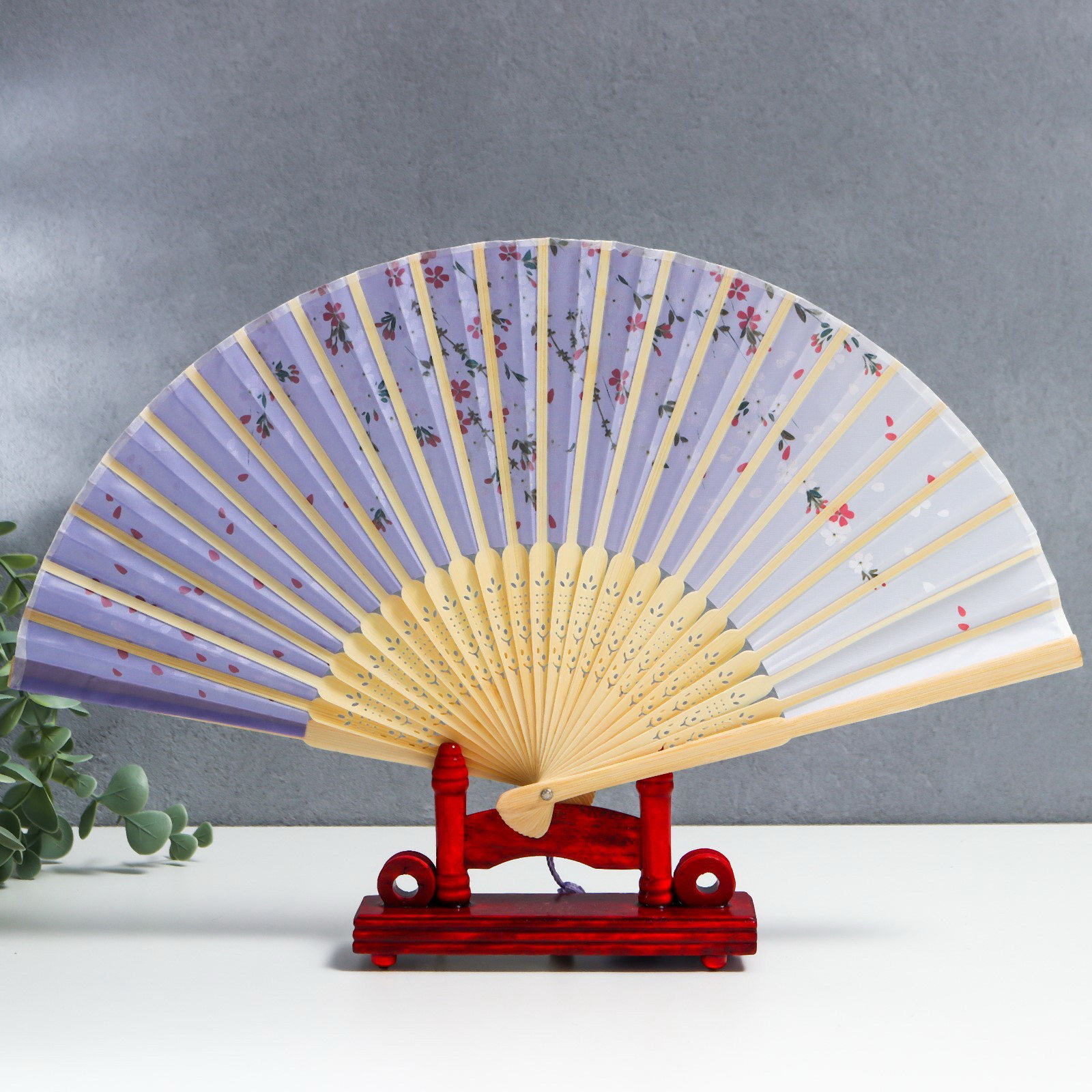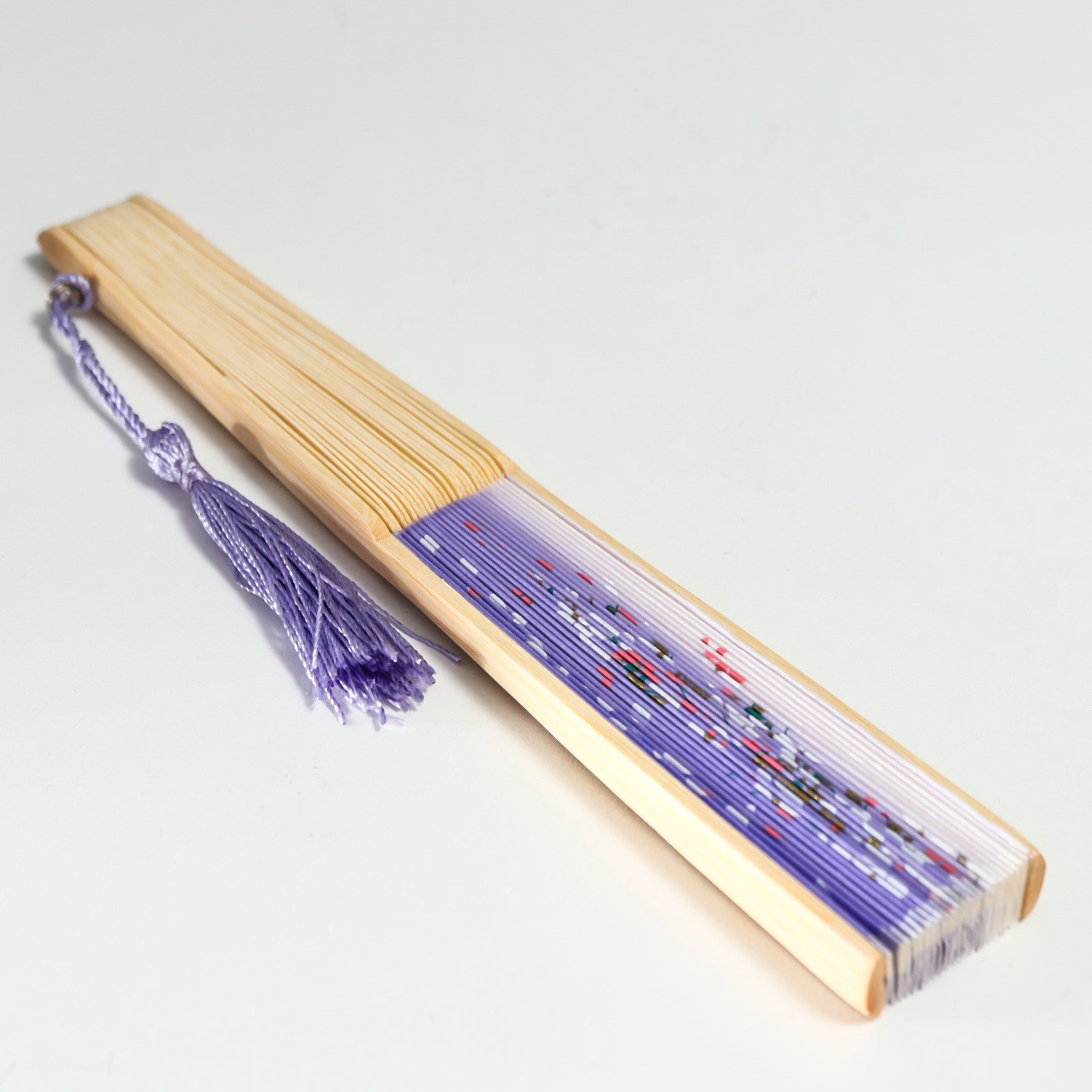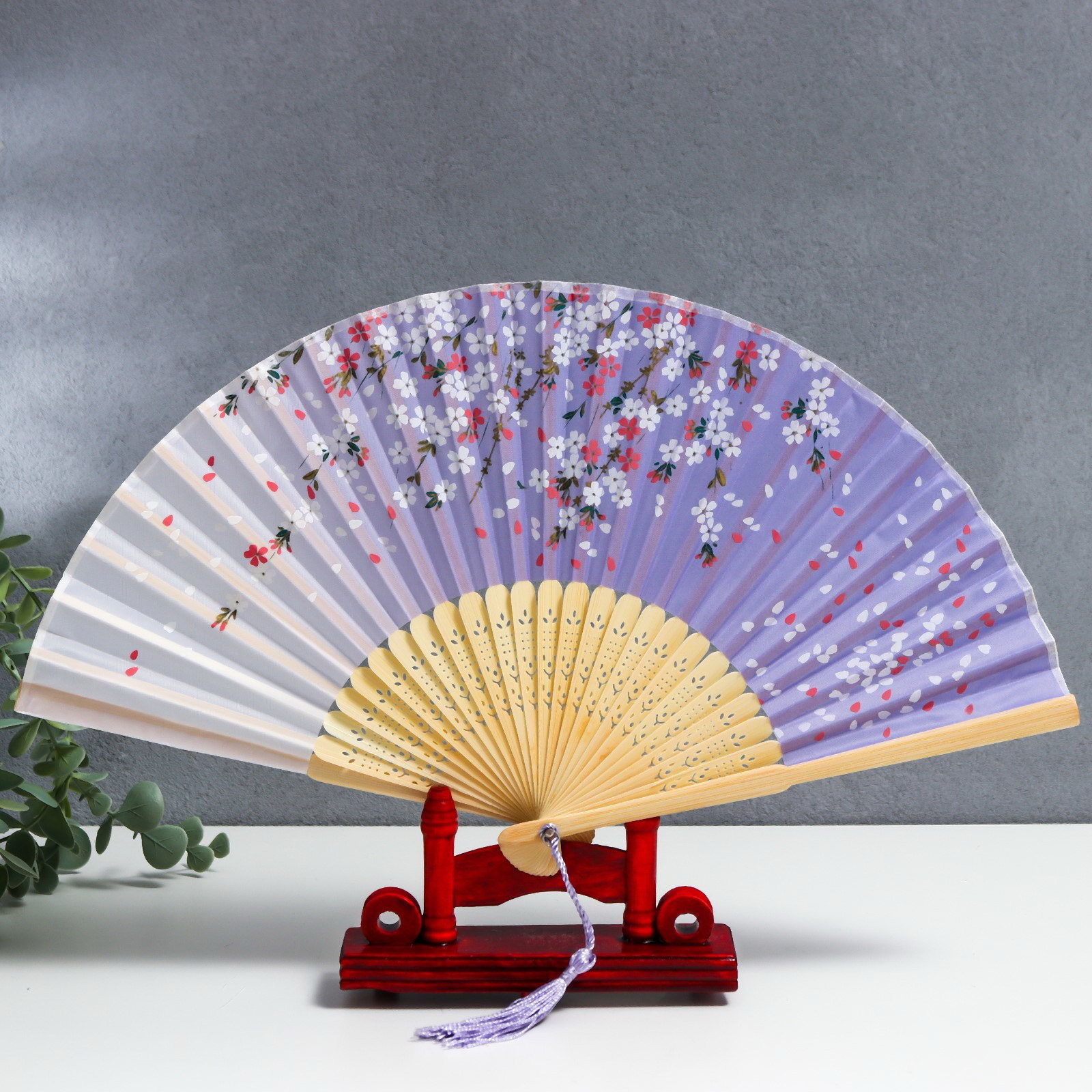 Веер складной h=21 см "Лепестки", сиреневый, с кисточкой, 38x21 см., Китай