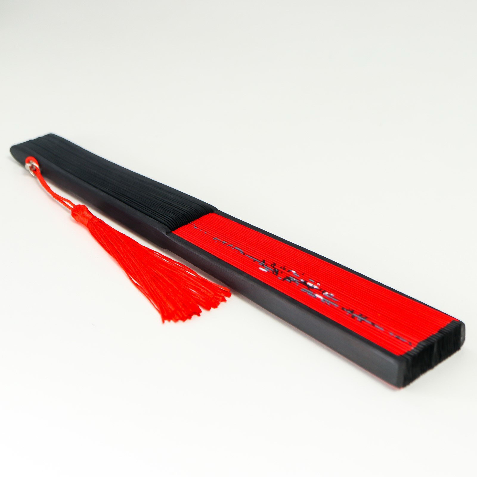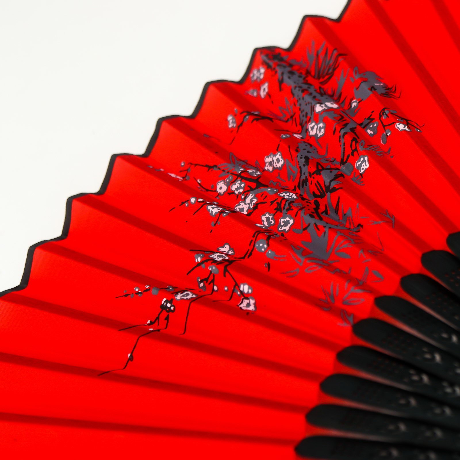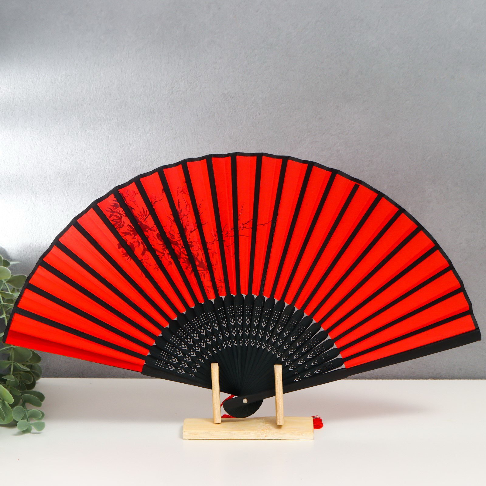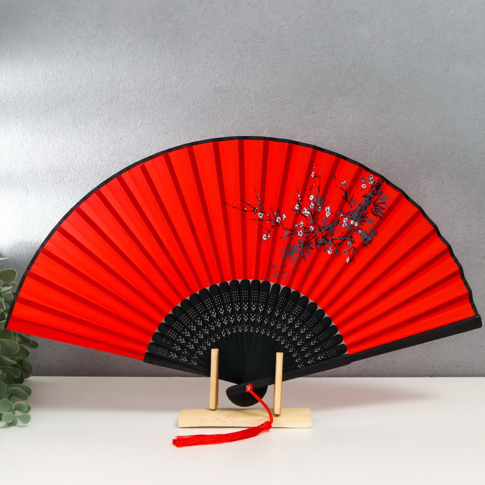 Веер складной h=23 см "Веточка сакуры", красный, с кисточкой, 23 см., Китай