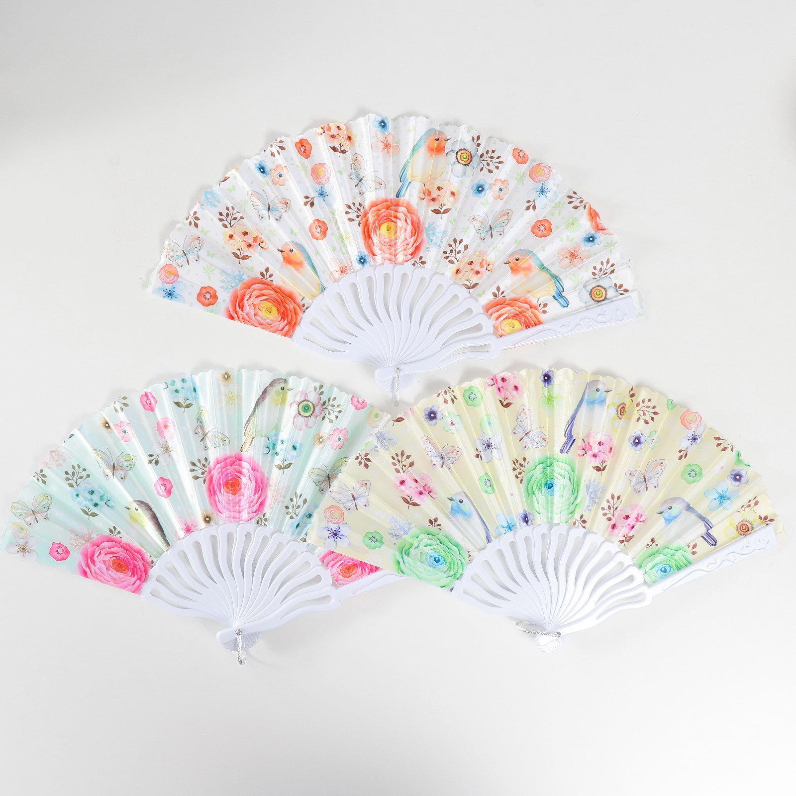 Веер складной "Птички и цветы", 23 см, МИКС, 23 см., Китай