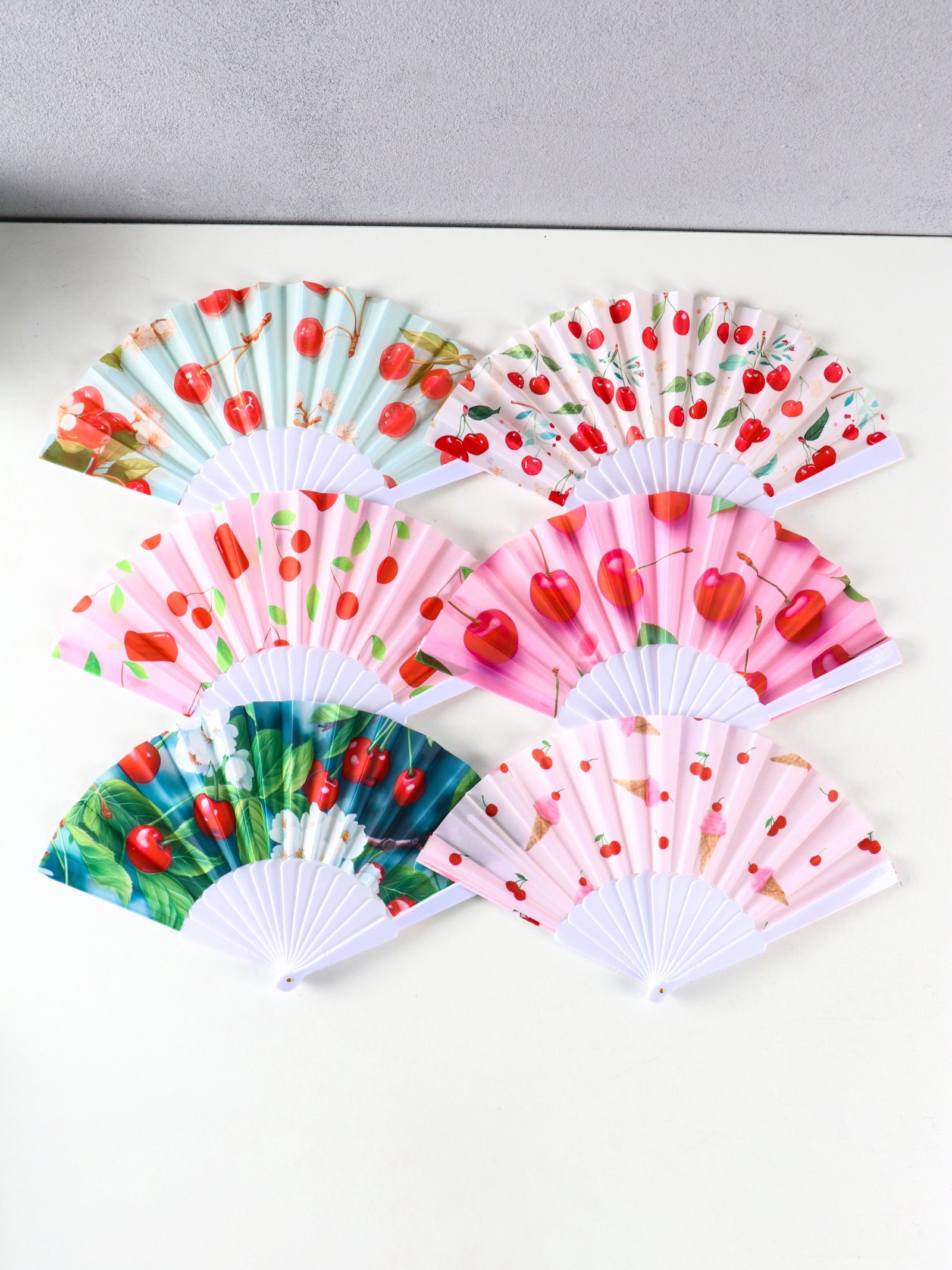 Веер складной "Вишня и цветки", 23 см, МИКС, 23 см., Китай