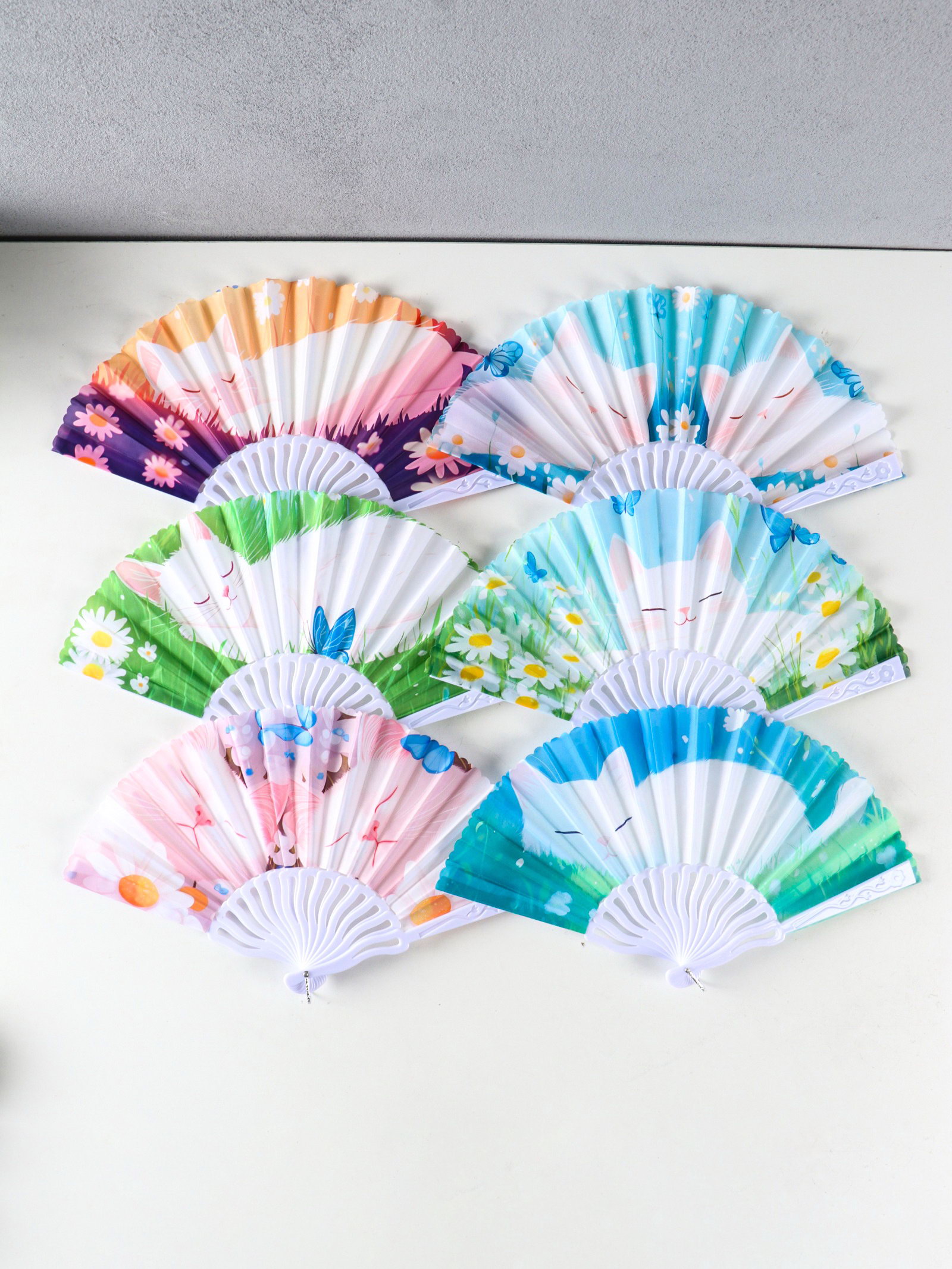 Веер складной "Спящие котики на полянке", 23 см, МИКС, 23 см., Китай