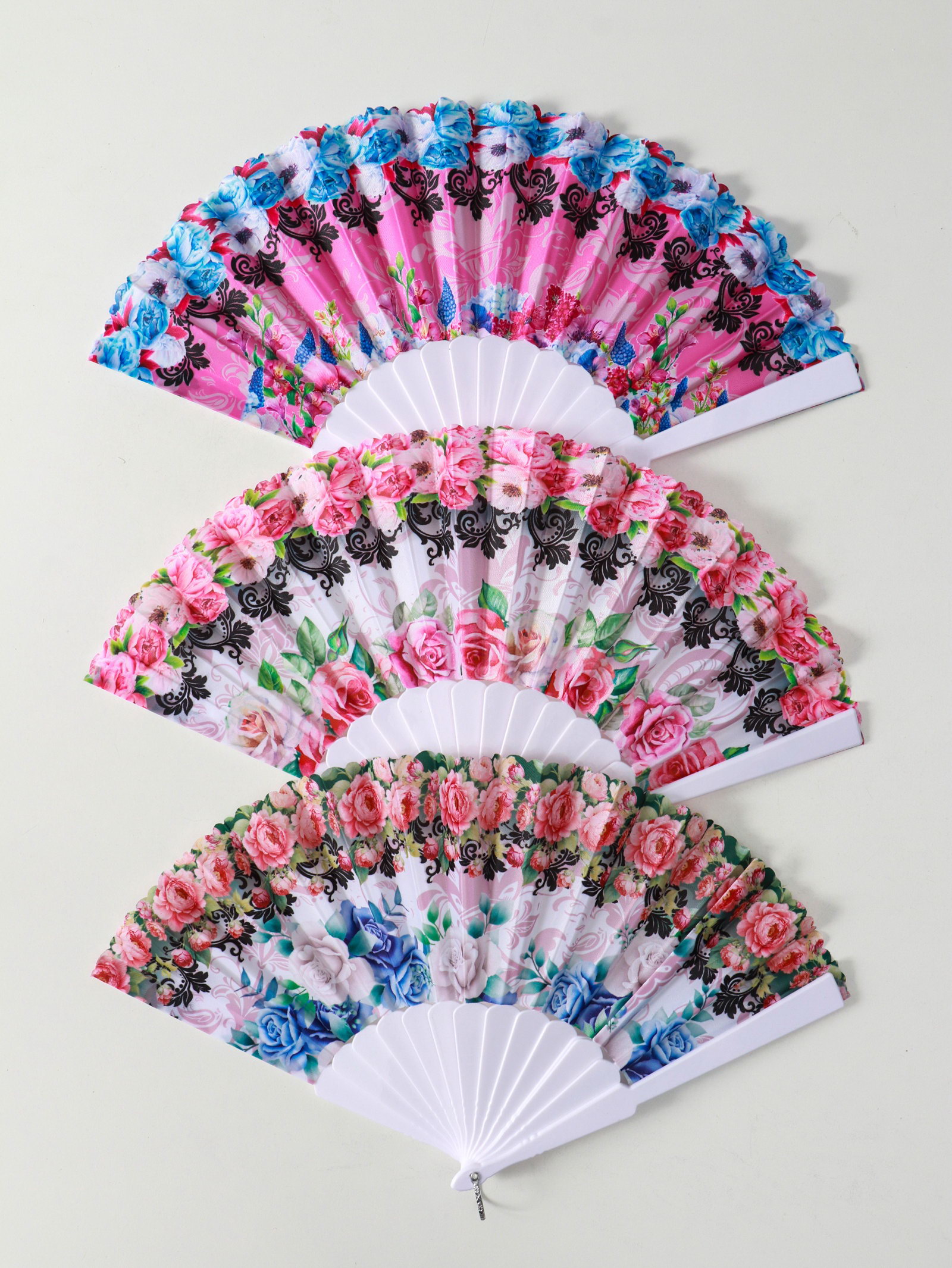 Веер складной "Цветочный", широкие лопасти, 23 см, МИКС, 23 см., Китай