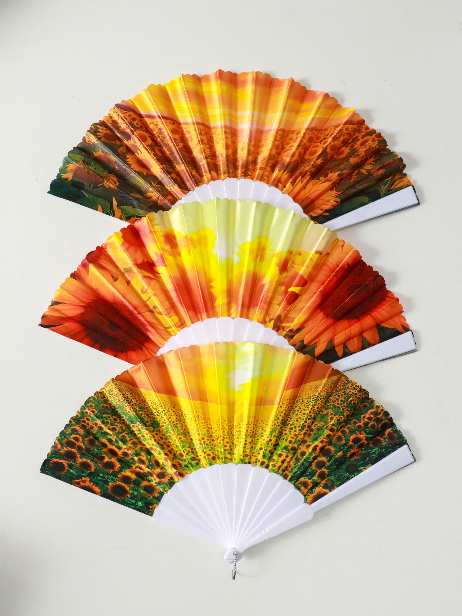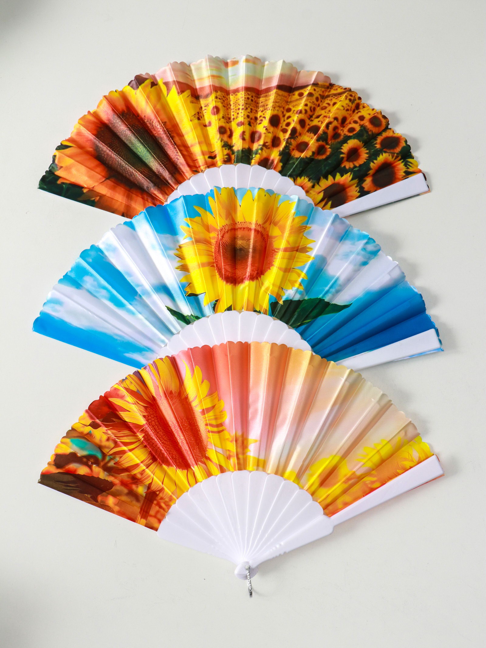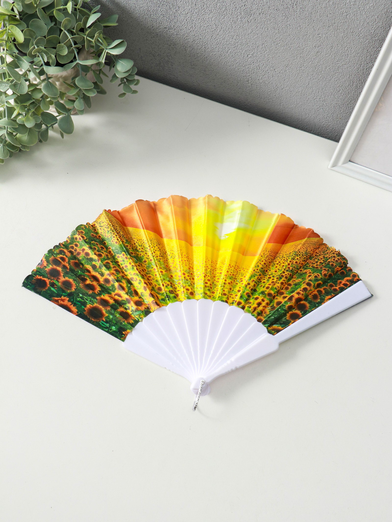 Веер складной "Подсолнухи", широкие лопасти, 23 см, МИКС, 23 см., Китай