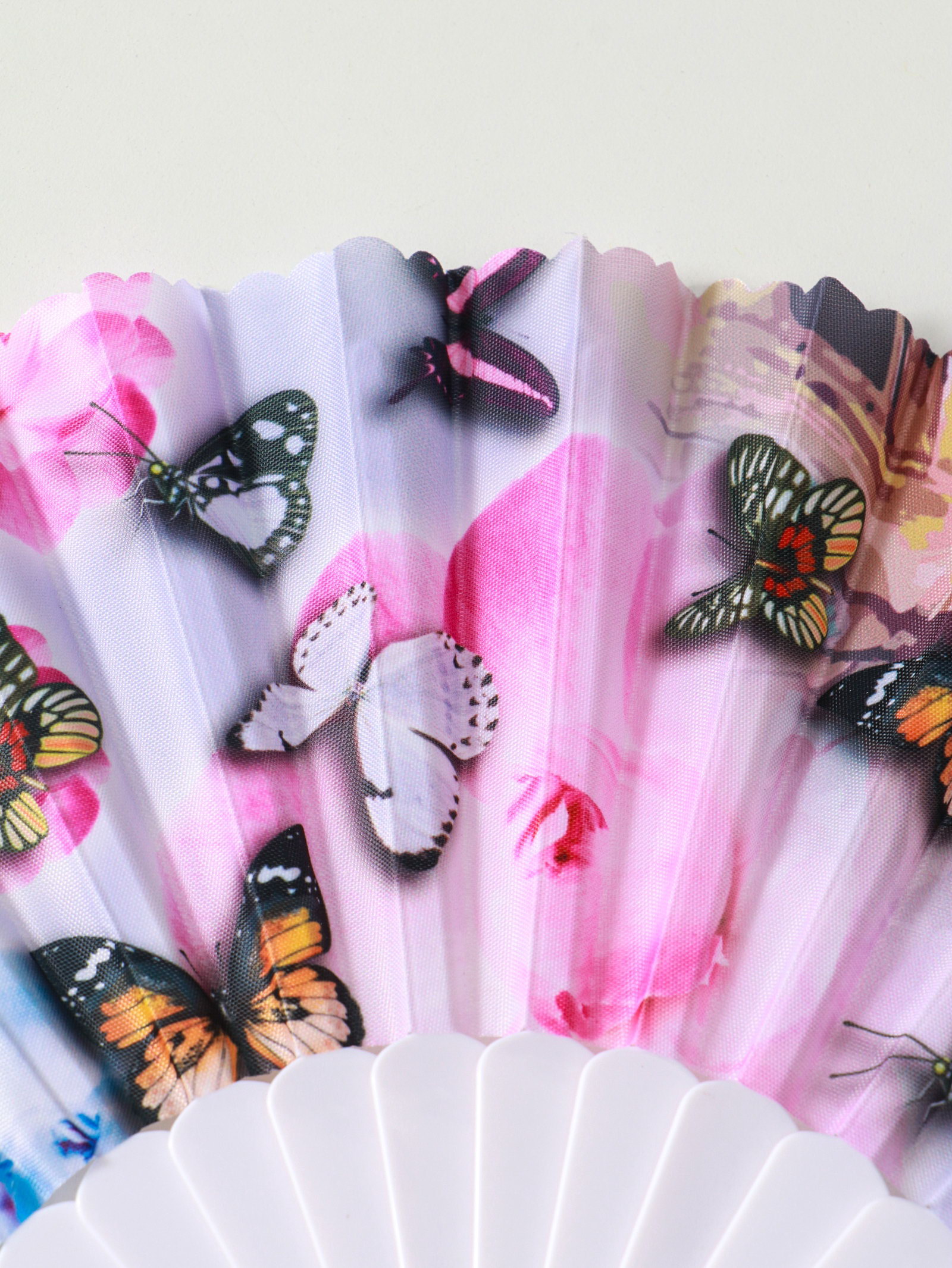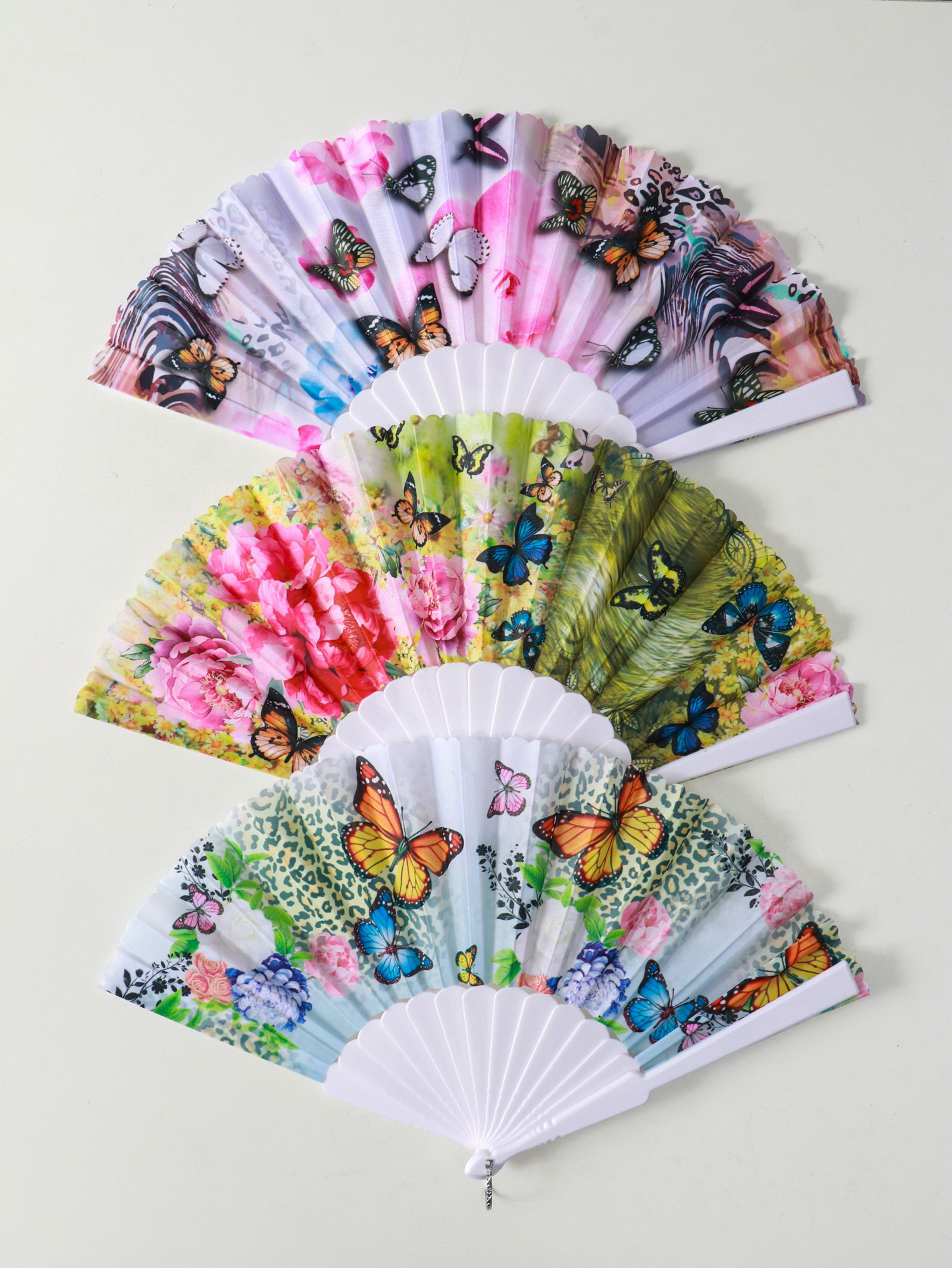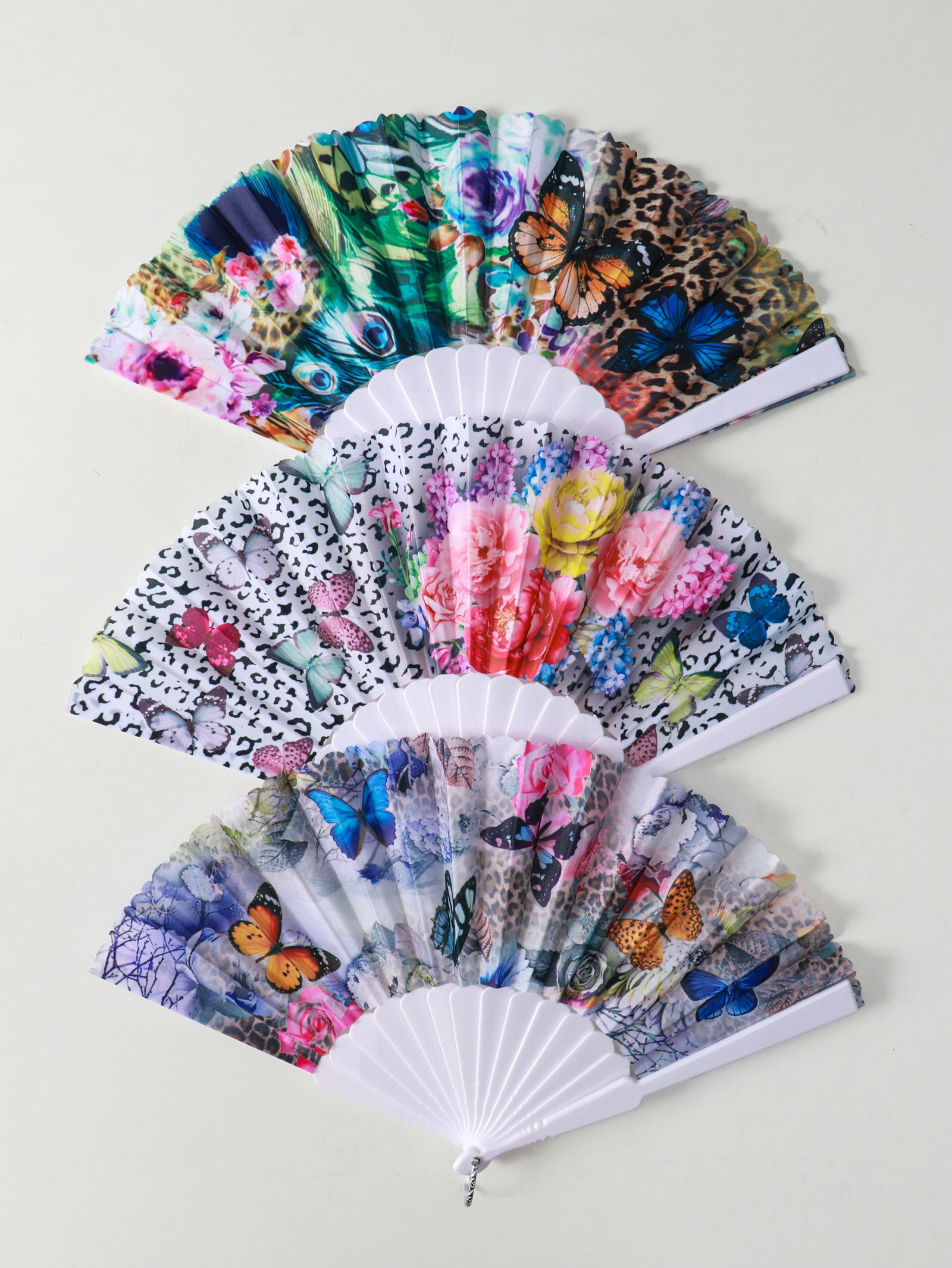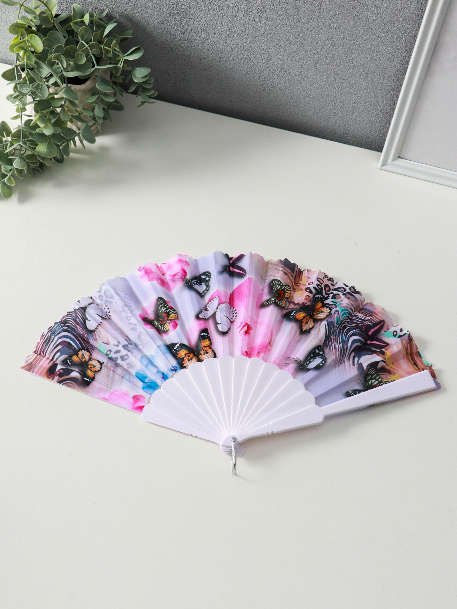 Веер складной "Бабочки и цветы на леопарде", 23 см, МИКС, 23 см., Китай
