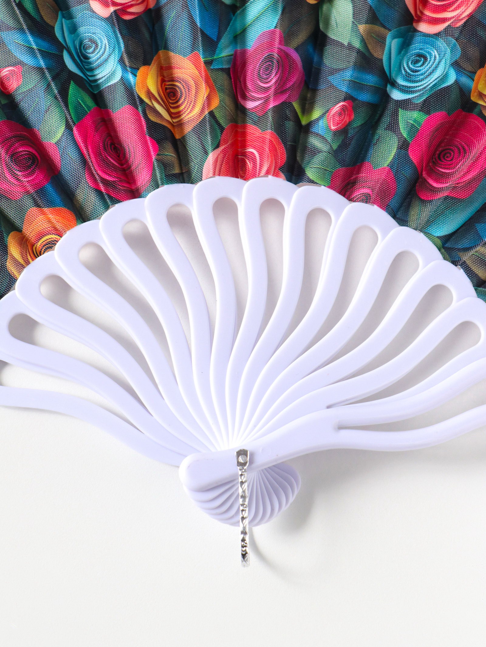 Веер складной "Вышивка. Розочки на зелёном", 22.5 см, 22.5 см., Китай