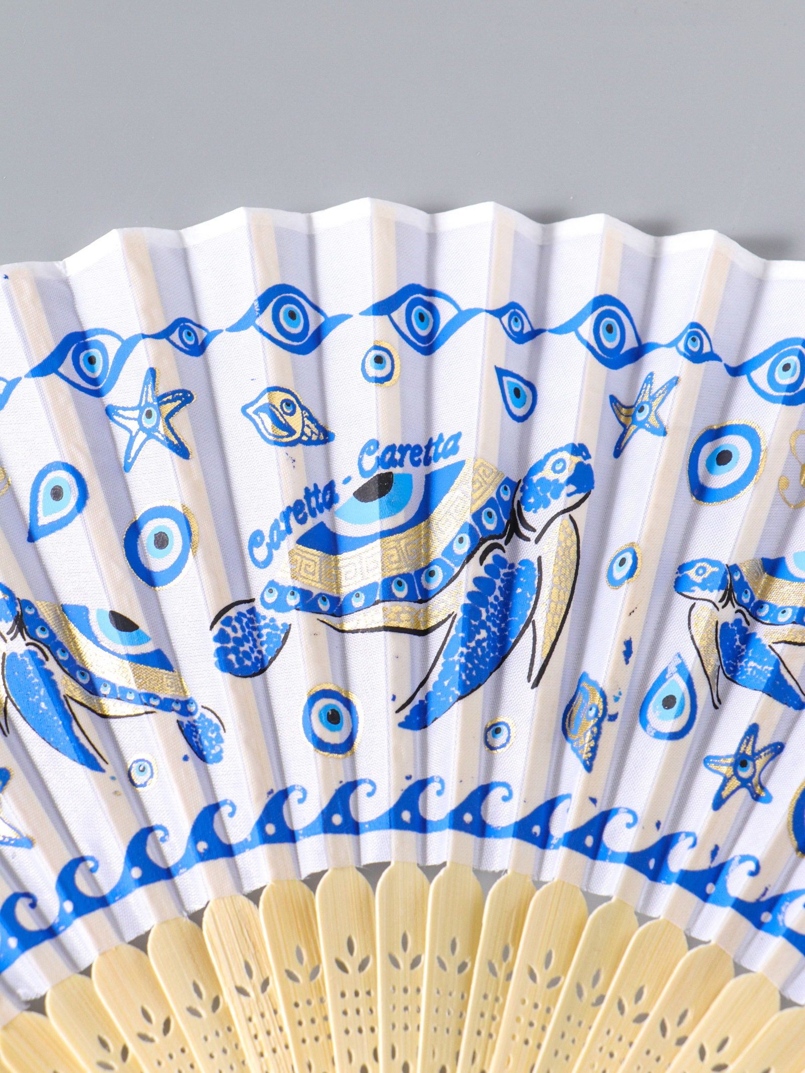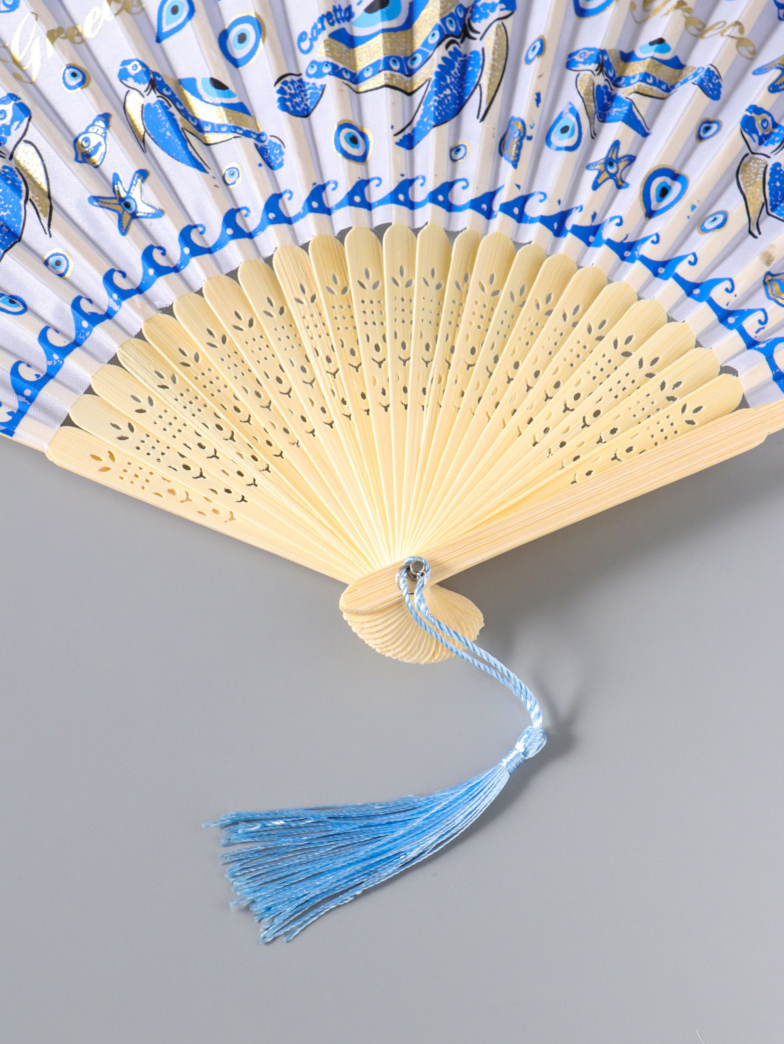 Веер складной с кисточкой "Черепахи", белый с золотом, 23 см, 23 см., Китай