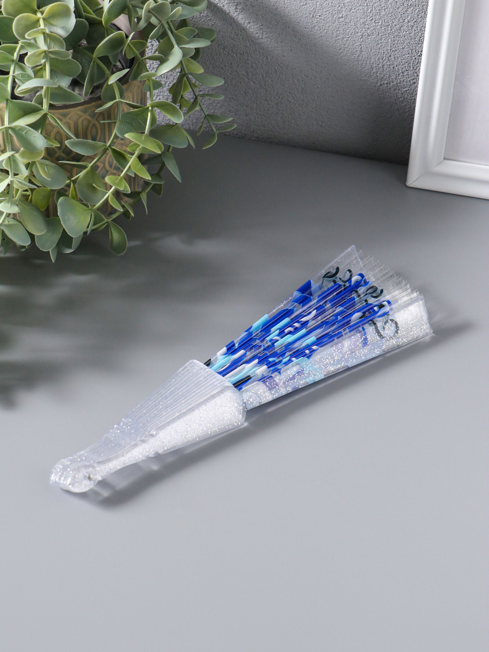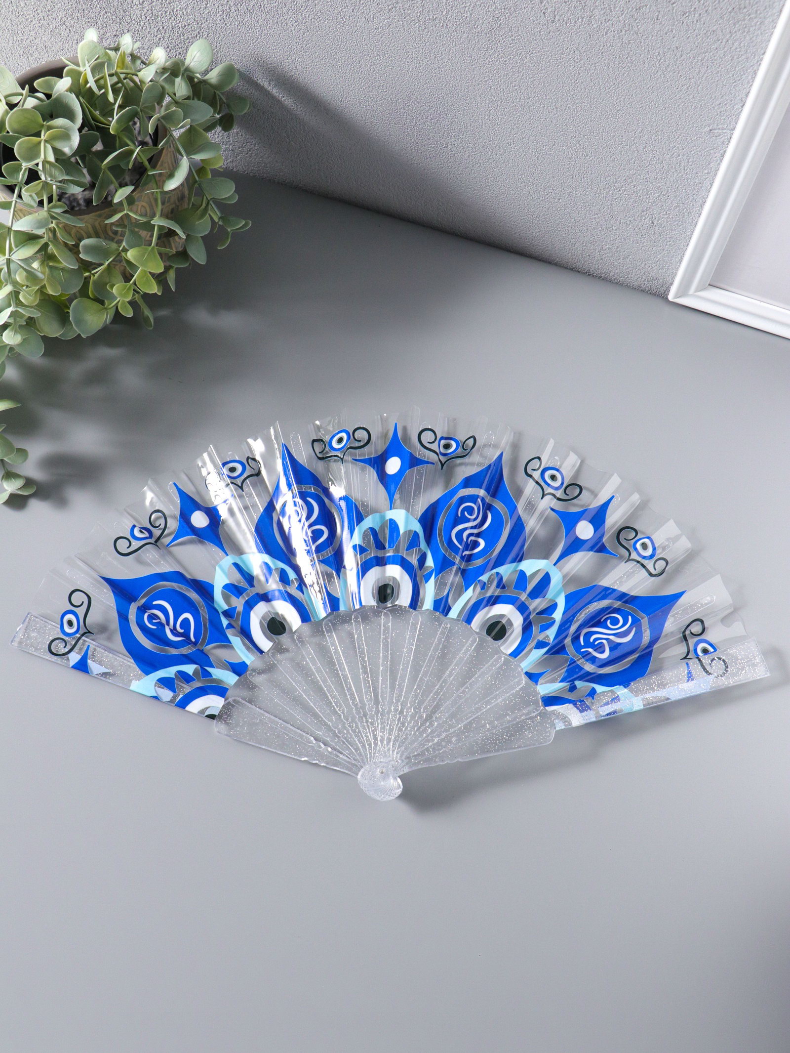 Веер складной пластик "Орнамент от сглаза", блеск, 23 см, 23 см., Китай