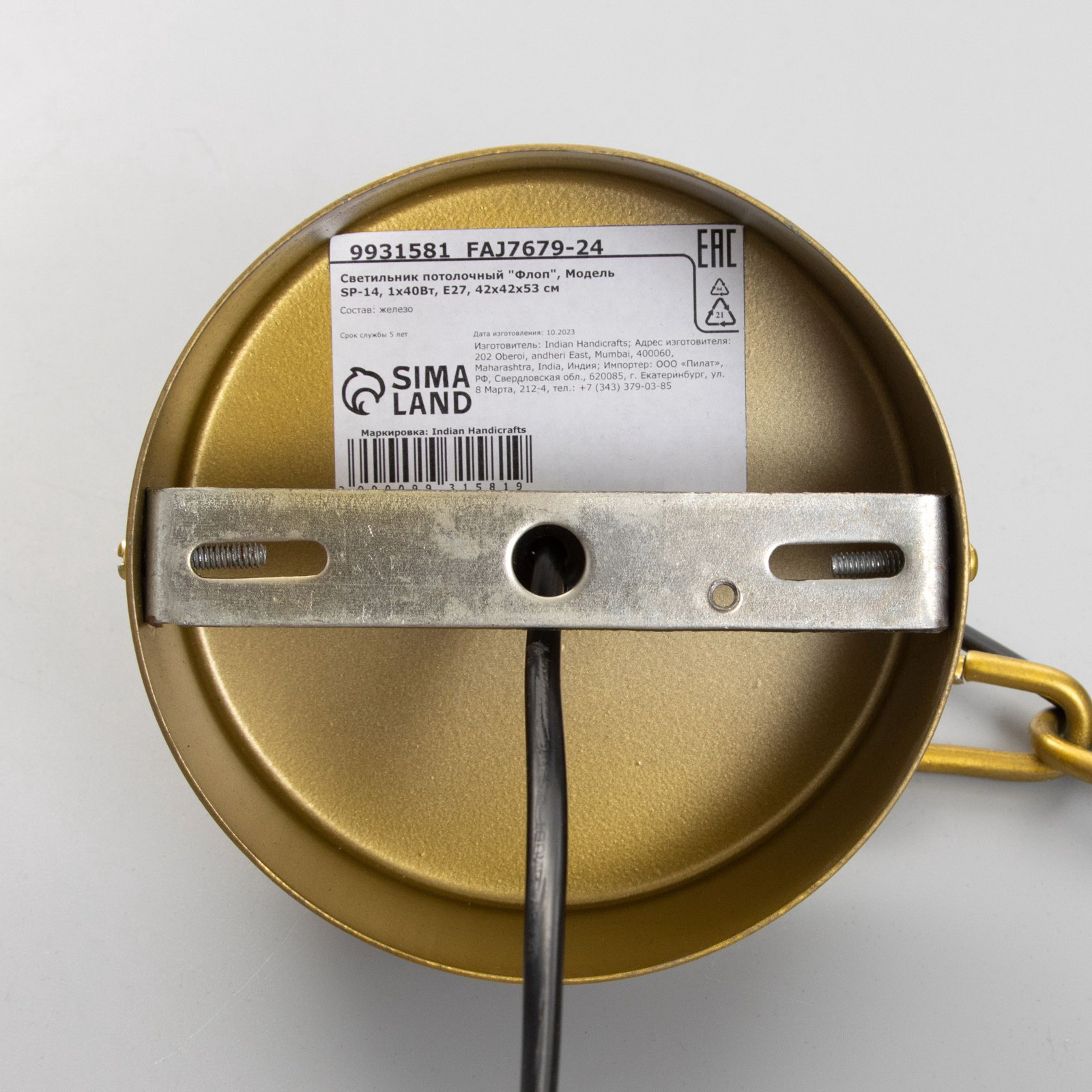 Стиль: Лофт, Потолочные Размер упаковки: 45 x 56 x 46.5 см. Вид установки: Потолочный Цоколь: E27 Тип питания: От сети 220 В Управление светильником: Без пульта Вид лампы: Накаливания Тип рассеивателя: Абажур Подходит для натяжных потолков: Да (при использования светодиодных ламп) Материал рассеивателя: Металл Цвет рассеивателя: Золотой Назначение по помещениям: Универсальное Материал основания: Металл Цвет основания: Золотой Количество ламп: 1 Площадь освещения, ?2: 2 Мощность на цоколь, Вт: 40 Тип источника освещения: Лампа не в комплекте Длина, см: 43 Ширина, см: 43 Высота, см: 53 Тип крепления: За основание Форма рассеивателя: Фигурная Тип подвеса: Цепь tnved: 9405190000 tnved: 9405190000 | ||