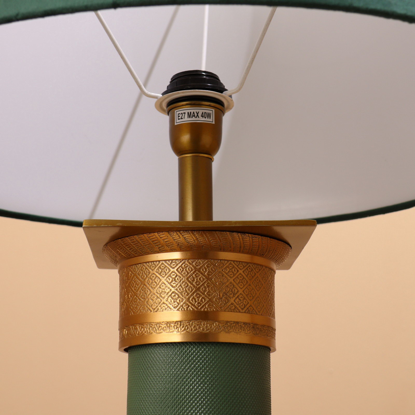 Цвет основания: Зелёный, Золотой Материал основания: Алюминий, Латунь Размер упаковки: 21 x 70.5 x 21 см. Стиль: Классика Управление светильником: С выключателем на проводе Тип питания: От сети 220 В Цоколь: E27 Вид установки: Настольный Вид лампы: Накаливания Направление рассеивателя: Вверх Особенности светильника: Без особенностей Тип рассеивателя: Абажур Форма рассеивателя: Трапеция Оттенок рассеивателя: Тёмные тона Цвет рассеивателя: Зелёный Высота, см: 88 Мощность на цоколь, Вт: 40 Количество ламп: 1 Длина, см: 56 Ширина, см: 56 Материал рассеивателя: Текстиль Тип источника освещения: Лампа не в комплекте tnved: 9405290000 tnved: 9405290000 | ||