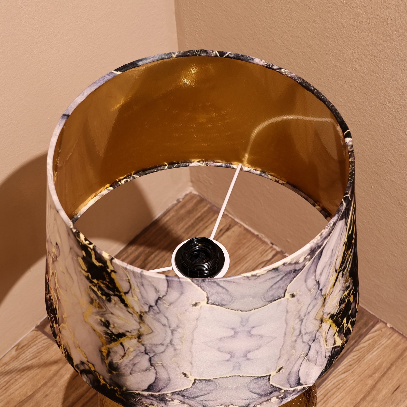 Управление светильником: Без пульта, С выключателем на проводе Цвет рассеивателя: Белый, Золотой, Чёрный Материал основания: Алюминий, Камень Размер упаковки: 30.5 x 54 x 30.5 см. Количество ламп: 1 Длина, см: 35 Ширина, см: 35 Мощность на цоколь, Вт: 60 Цвет основания: Золотой Направление рассеивателя: Вверх Тип питания: От сети 220 В Тип рассеивателя: Абажур Вид лампы: Накаливания Цоколь: E27 Оттенок рассеивателя: Тёмные тона Особенности светильника: Без особенностей Форма рассеивателя: Трапеция Высота, см: 50 Материал рассеивателя: Текстиль Тип источника освещения: Лампа не в комплекте Тип источника освещения: Лампа не в комплекте tnved: 9405290000 | ||