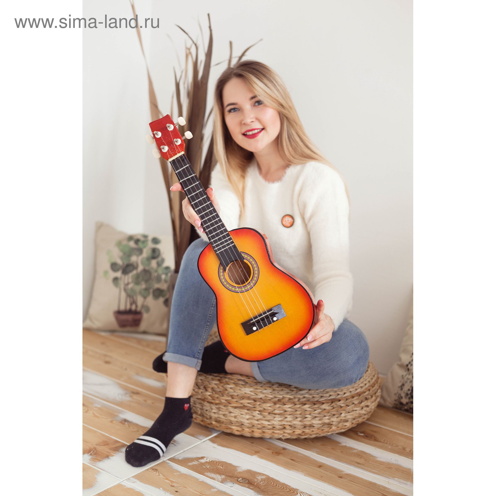 Сувенирный музыкальный инструмент Гитара-укулеле "Закат" 55х20х6 см, 6x55x20 см., Индонезия