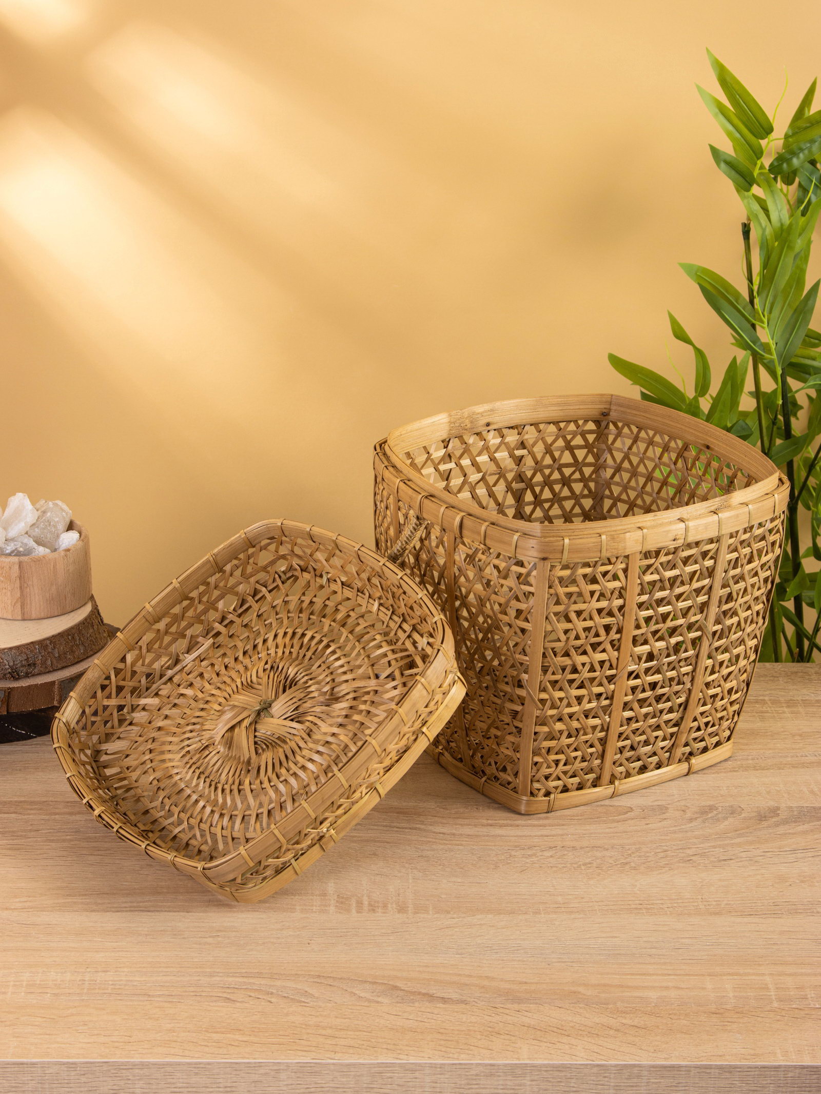 Корзина плетёная "Баскет", 27x27x37 см, бамбук, светлая, 27x27x37 см., Индонезия