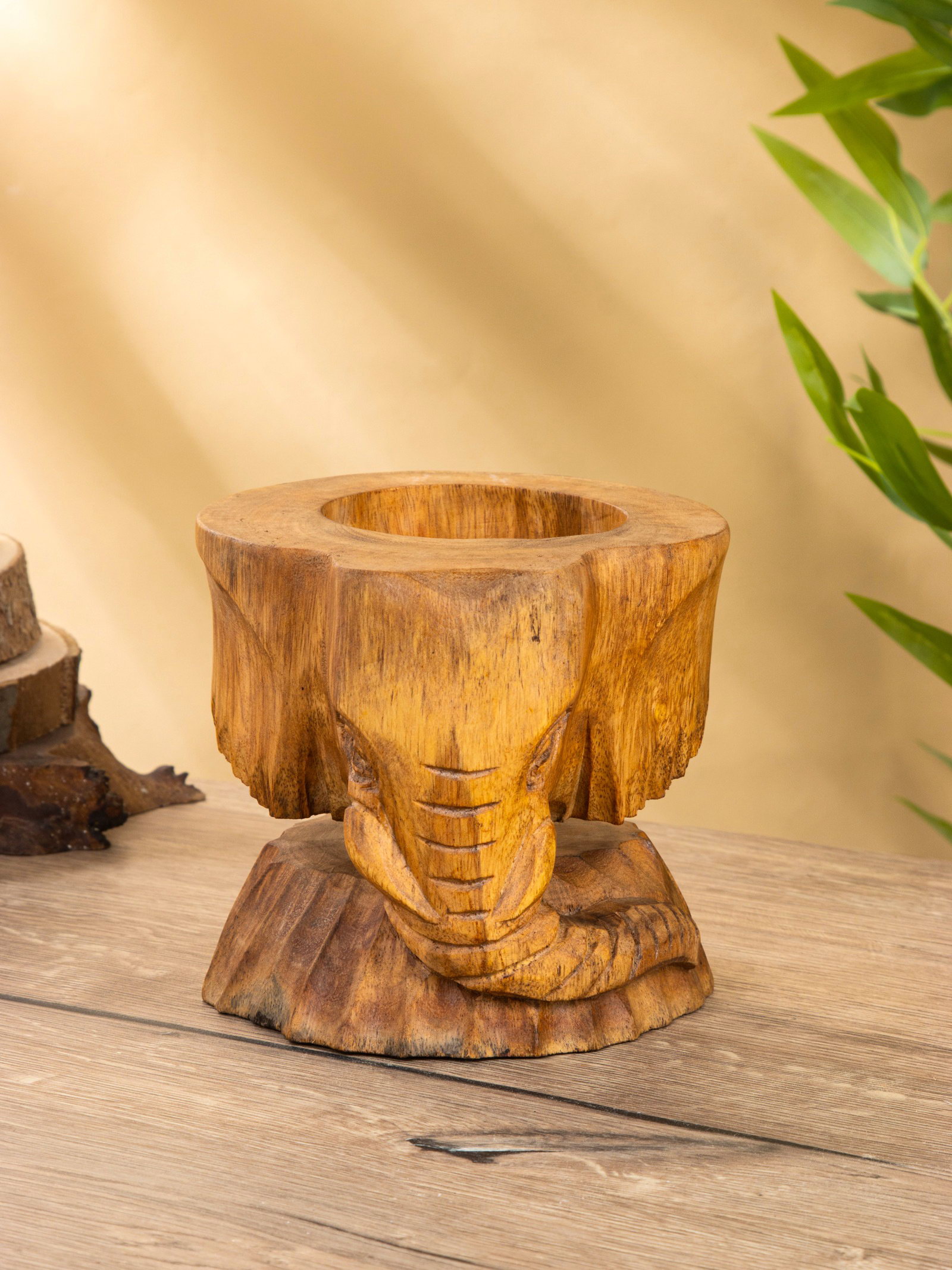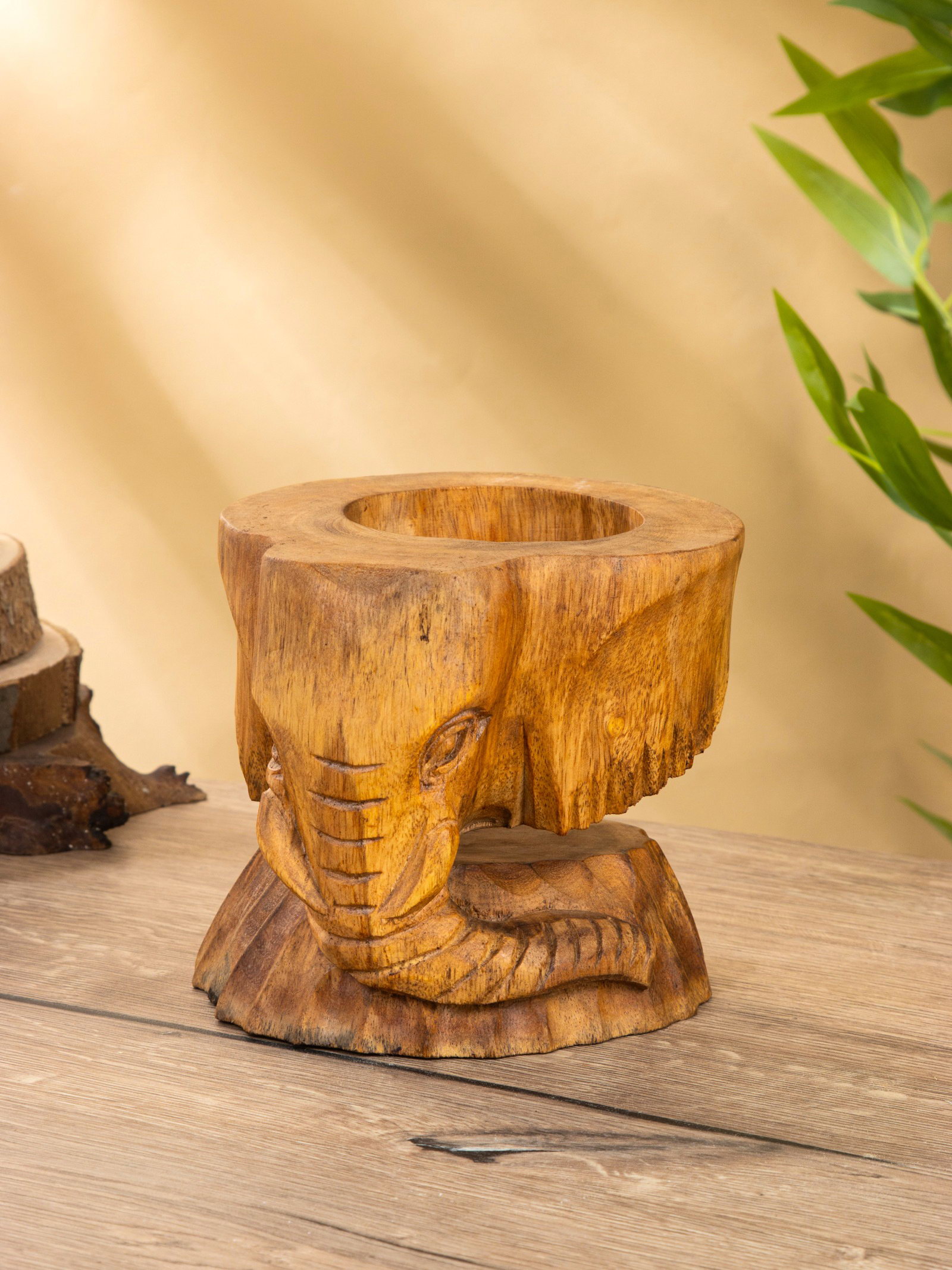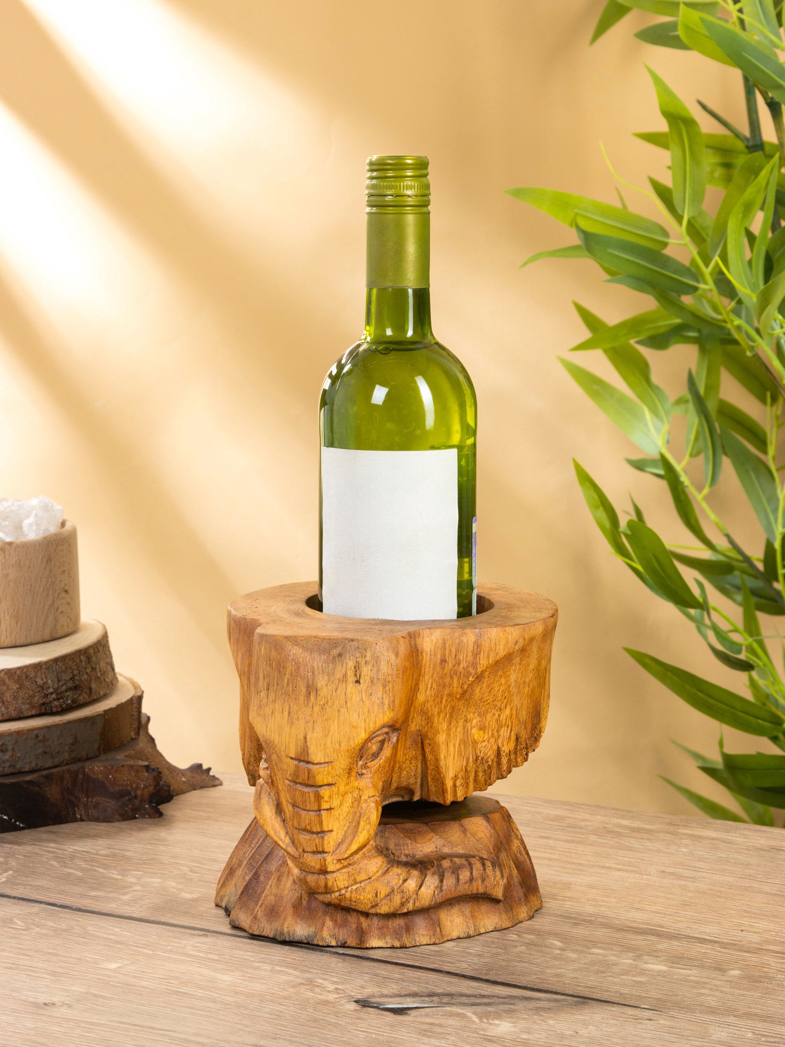 Подставка под бутылки "Голова слона", 15x15x17 см, дерево пиннис, коричневая, 13x15x25 см., Индонезия