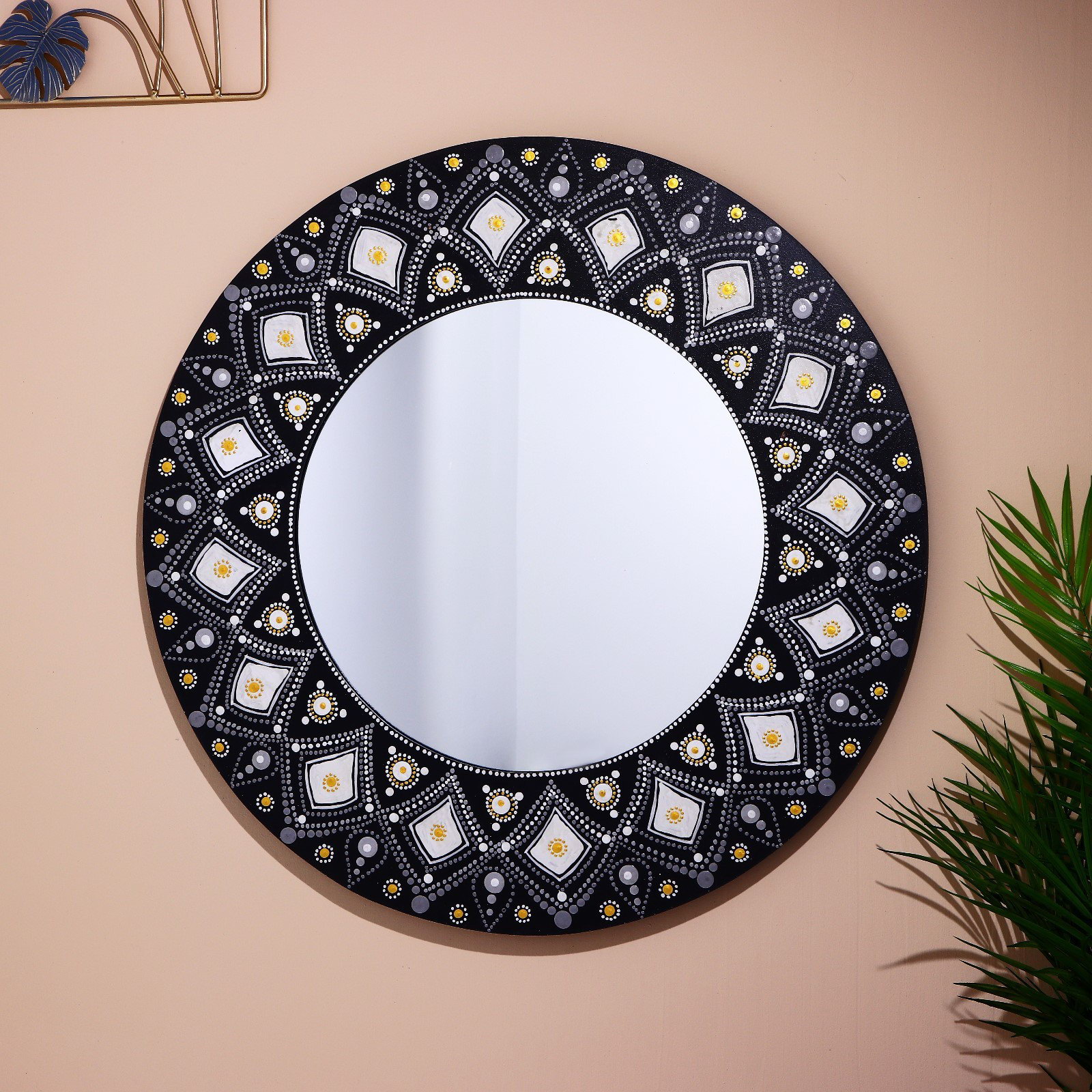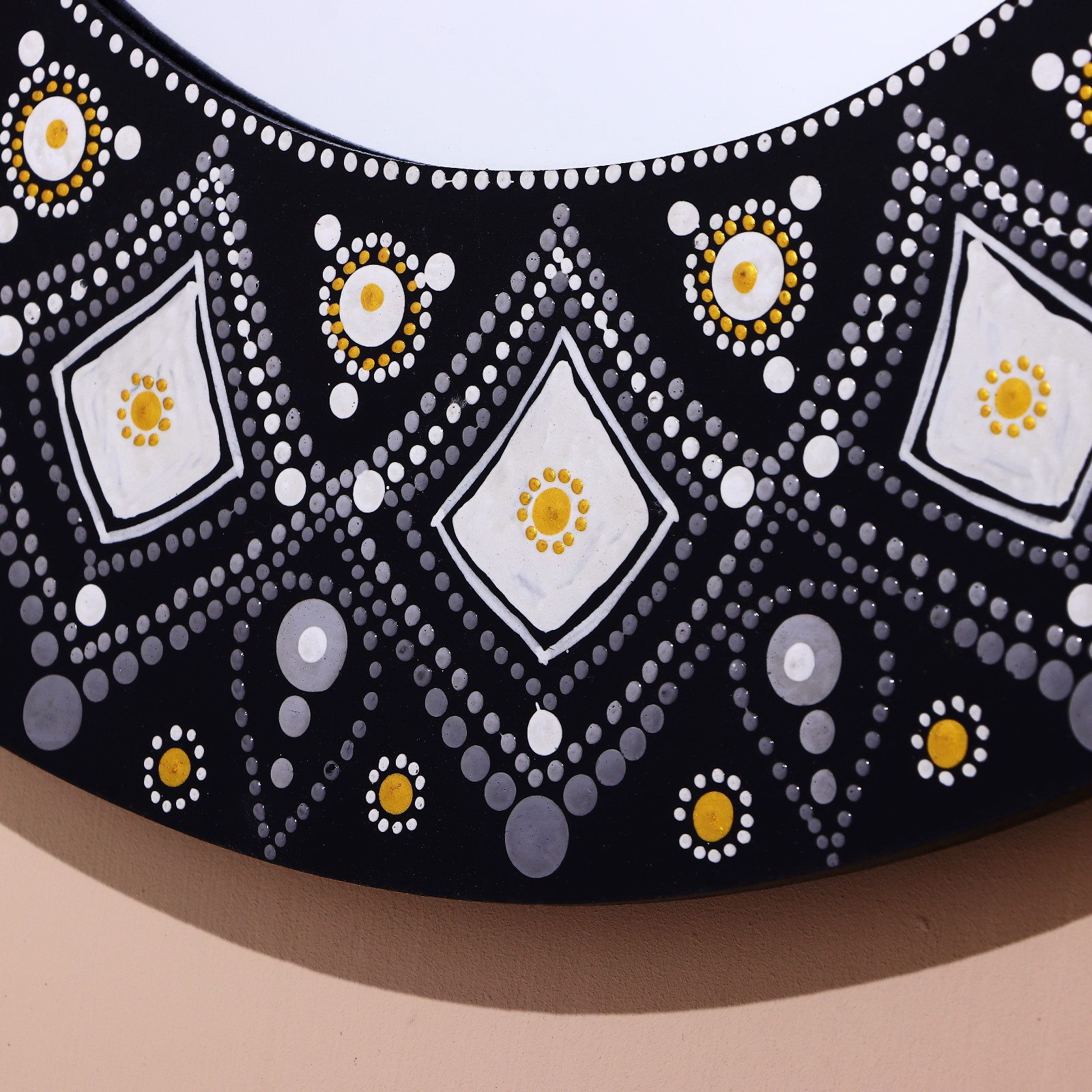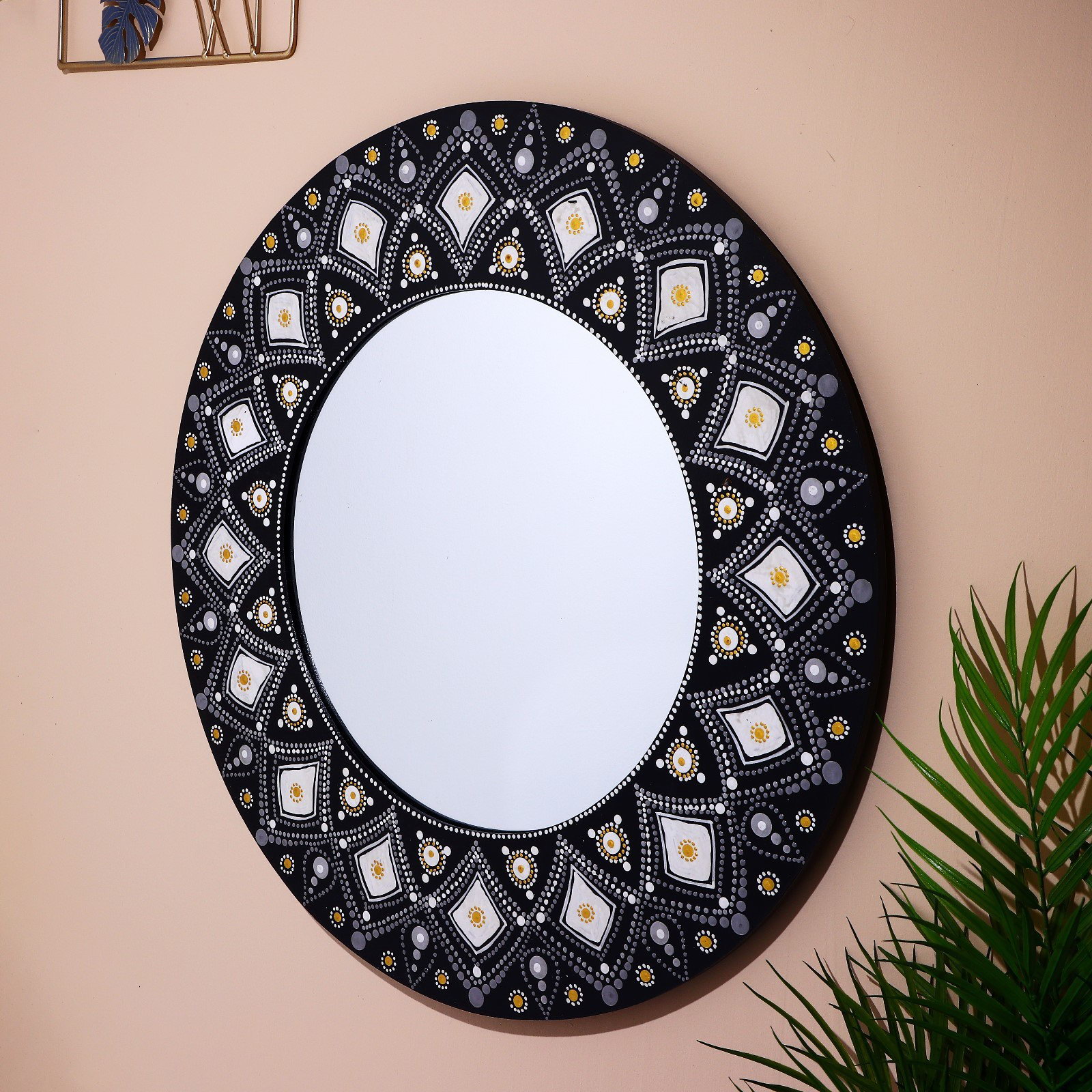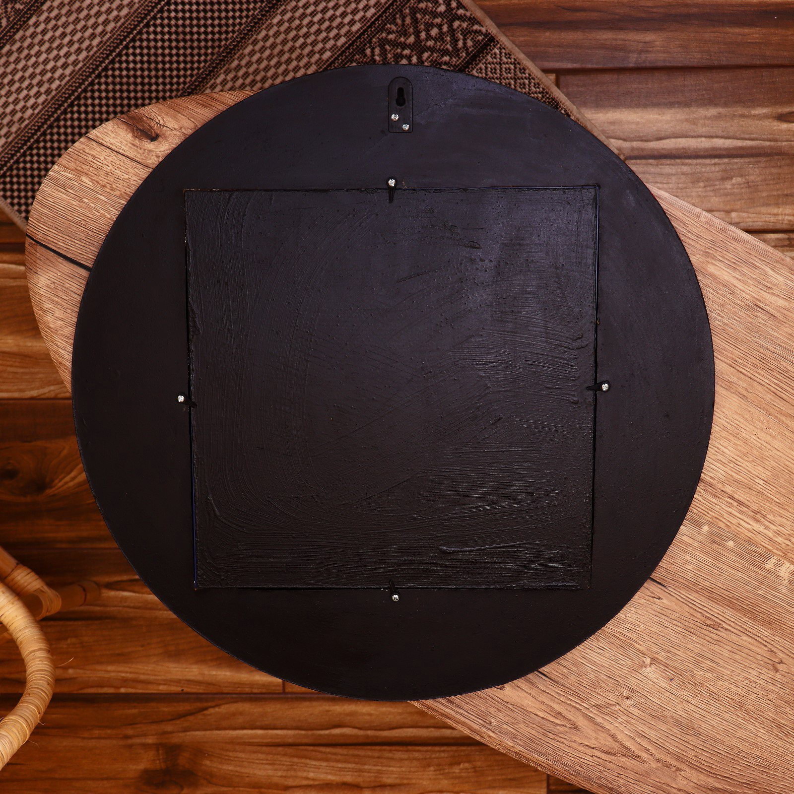 Зеркало, 60 см, дерево, чёрное с орнаментом, 60x60x1 см., Индонезия