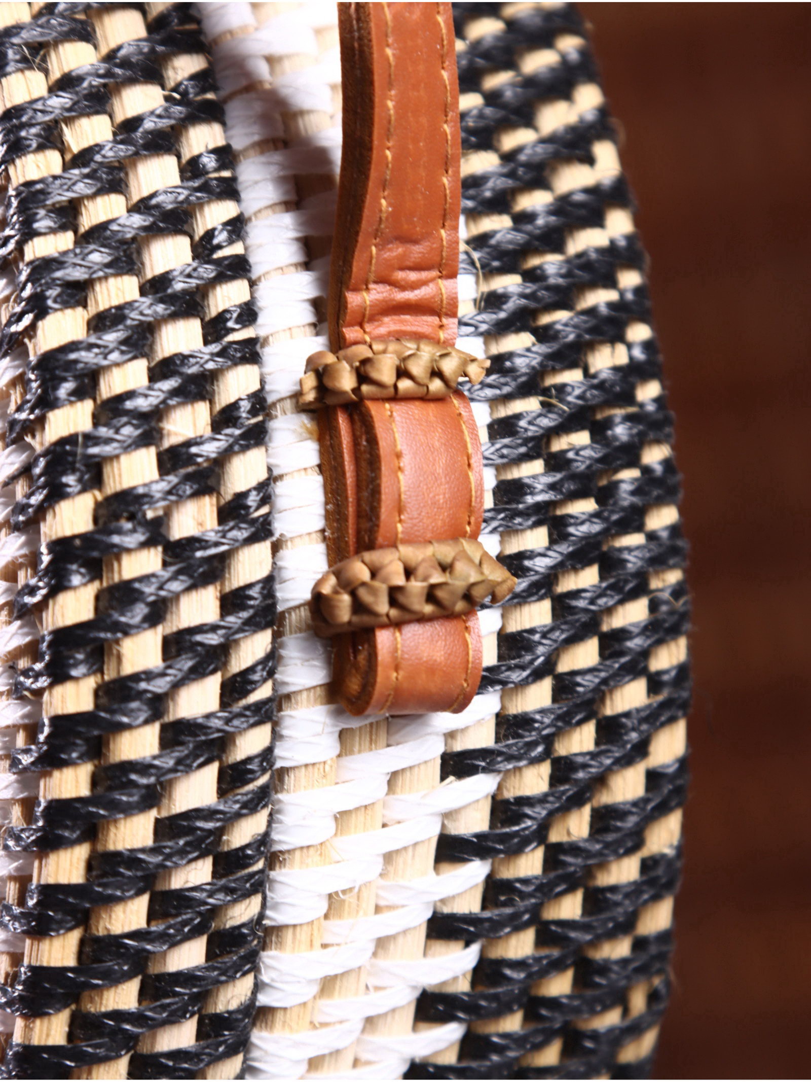 Сумка женская через плечо плетёная "Мандала", 20x6x70 см, ротанг, чёрно-белая, 6x20x70 см., Индонезия