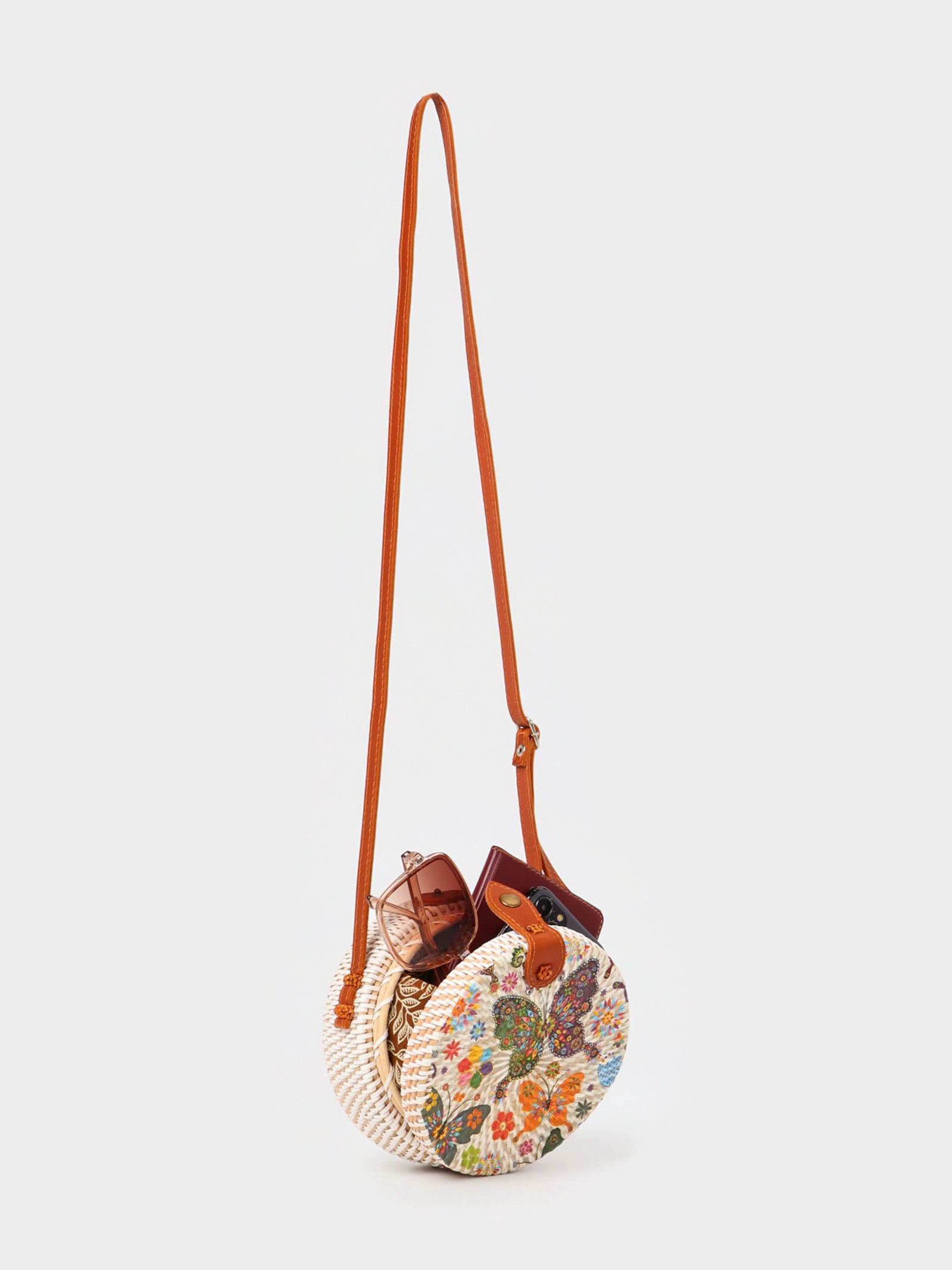 Сумка женская через плечо плетёная "Бабочки", 15x6x60 см, ротанг, 6x15x60 см., Индонезия