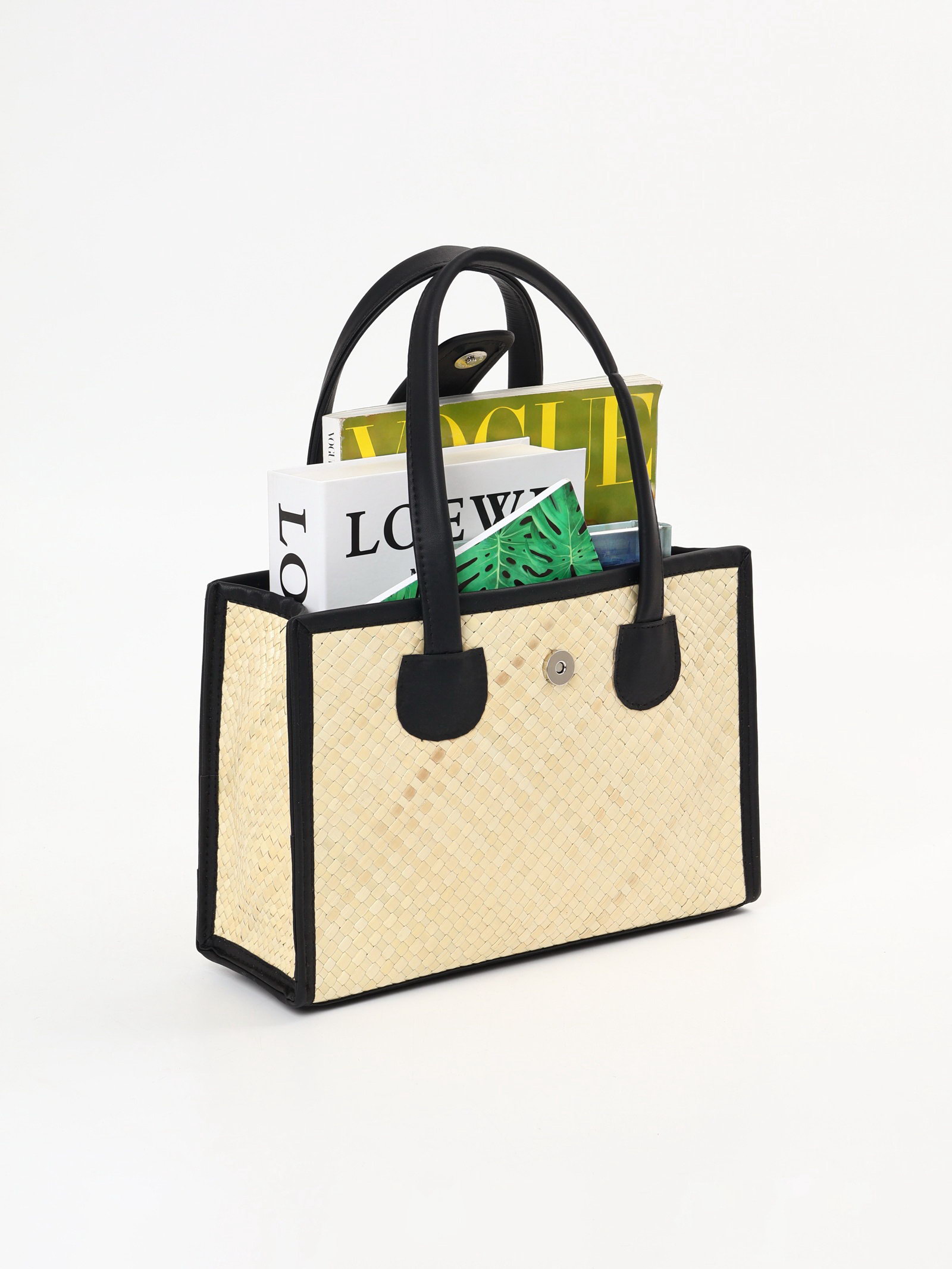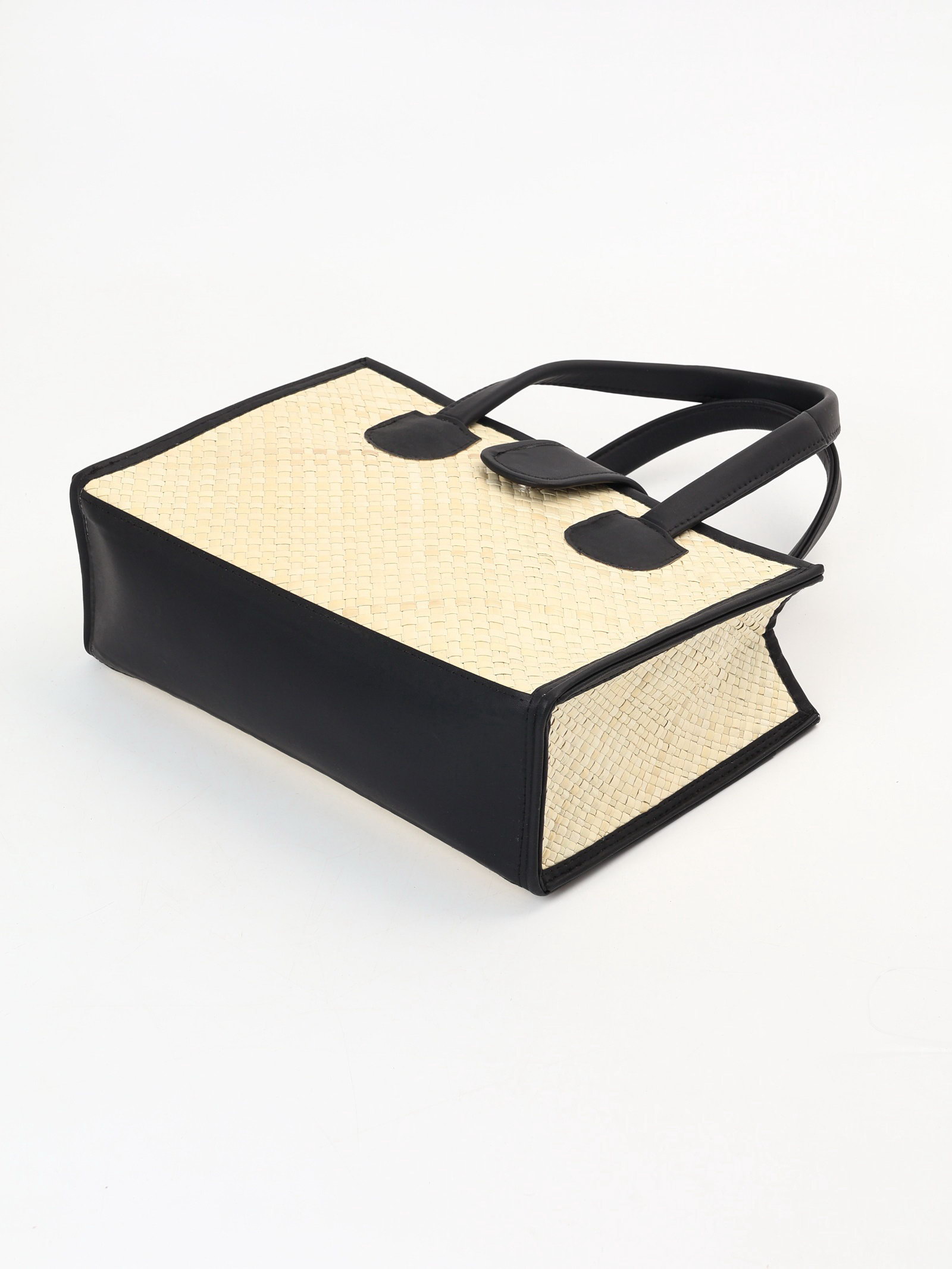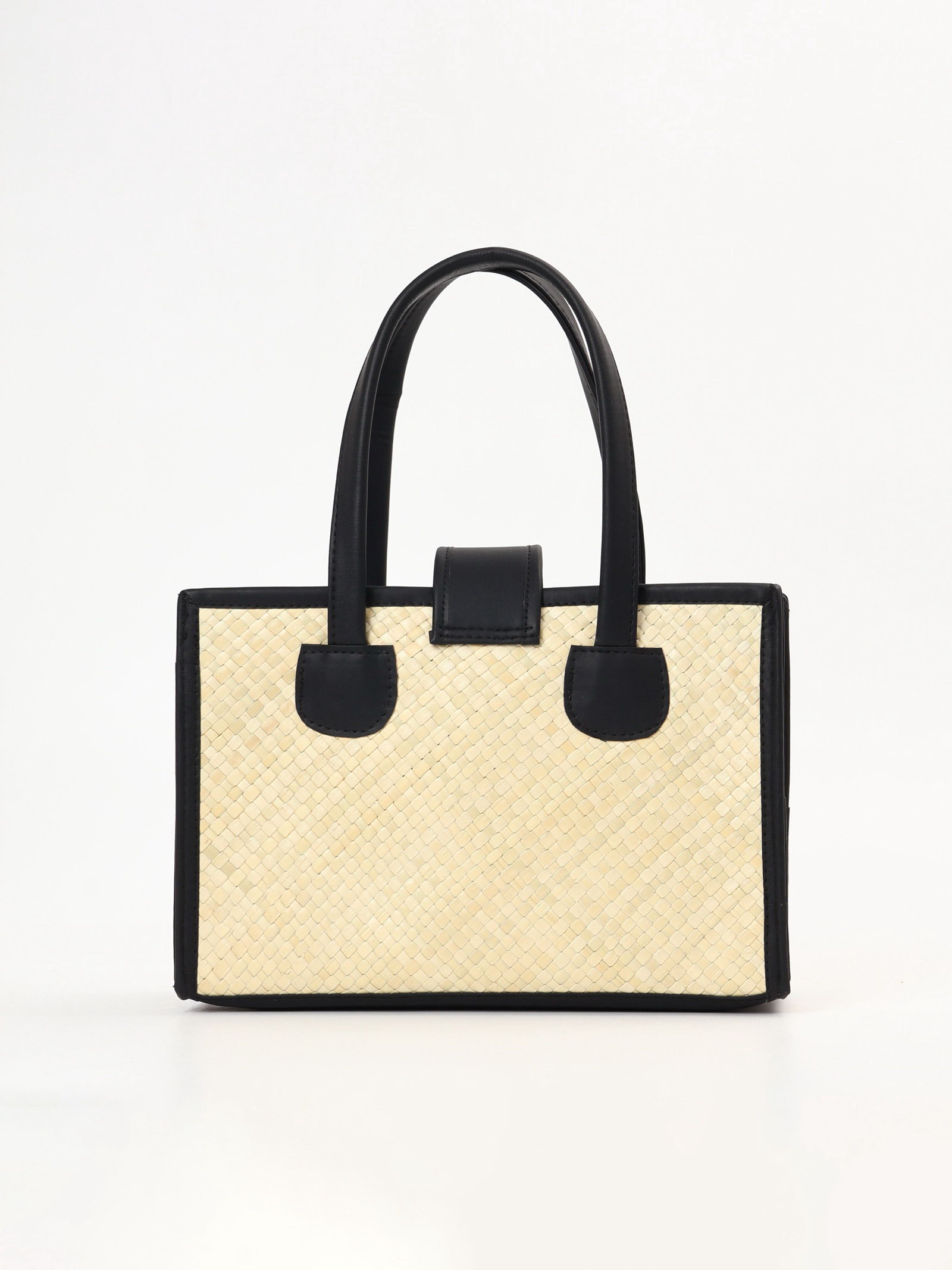 Сумка плетёная на застёжке из пандана, 30x10x35 см, бежево-чёрная, 10x30x20 см., Индонезия