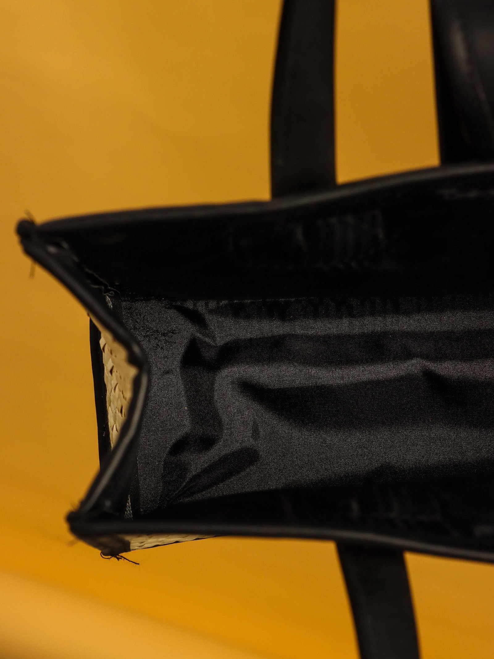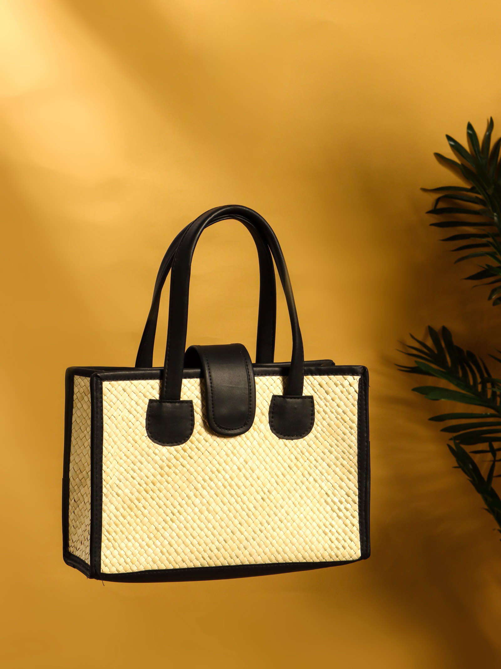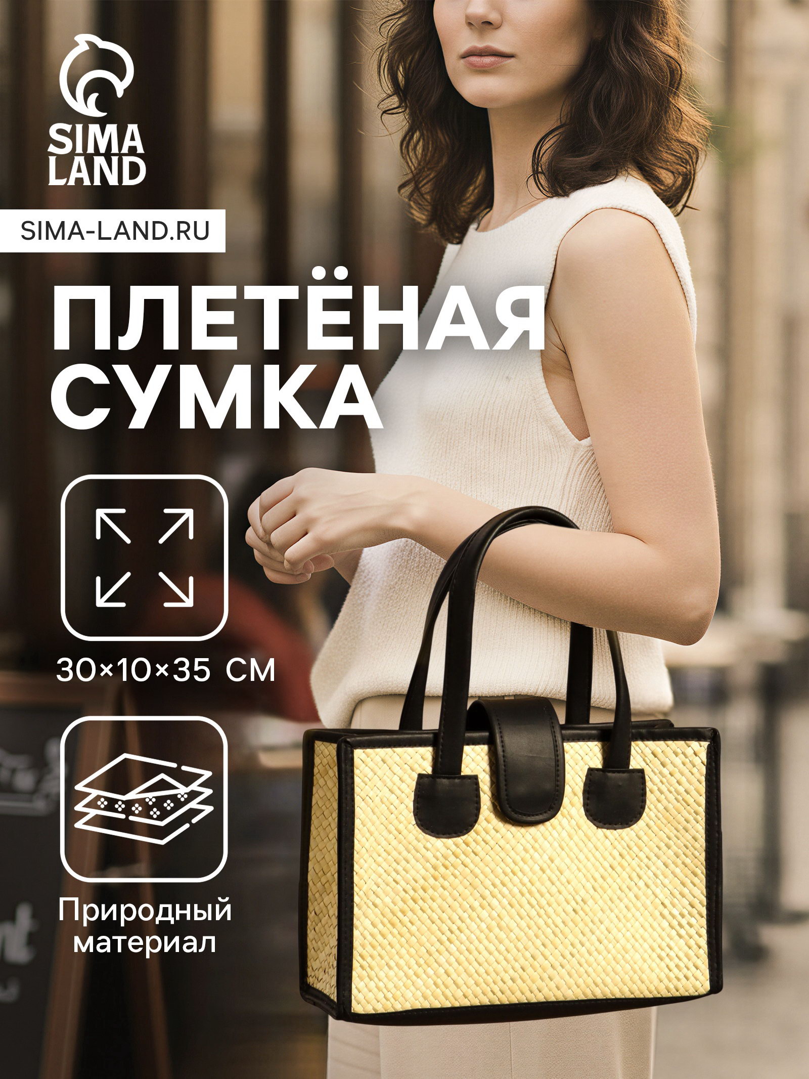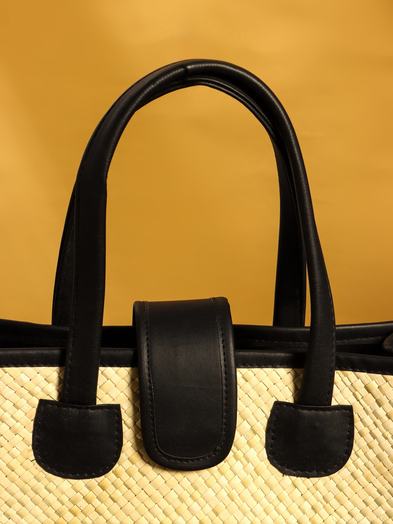 Сумка плетёная на застёжке из пандана, 30x10x35 см, бежево-чёрная, 10x30x20 см., Индонезия