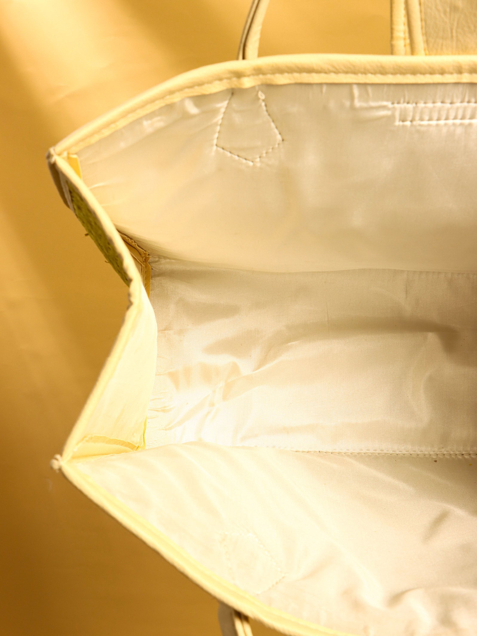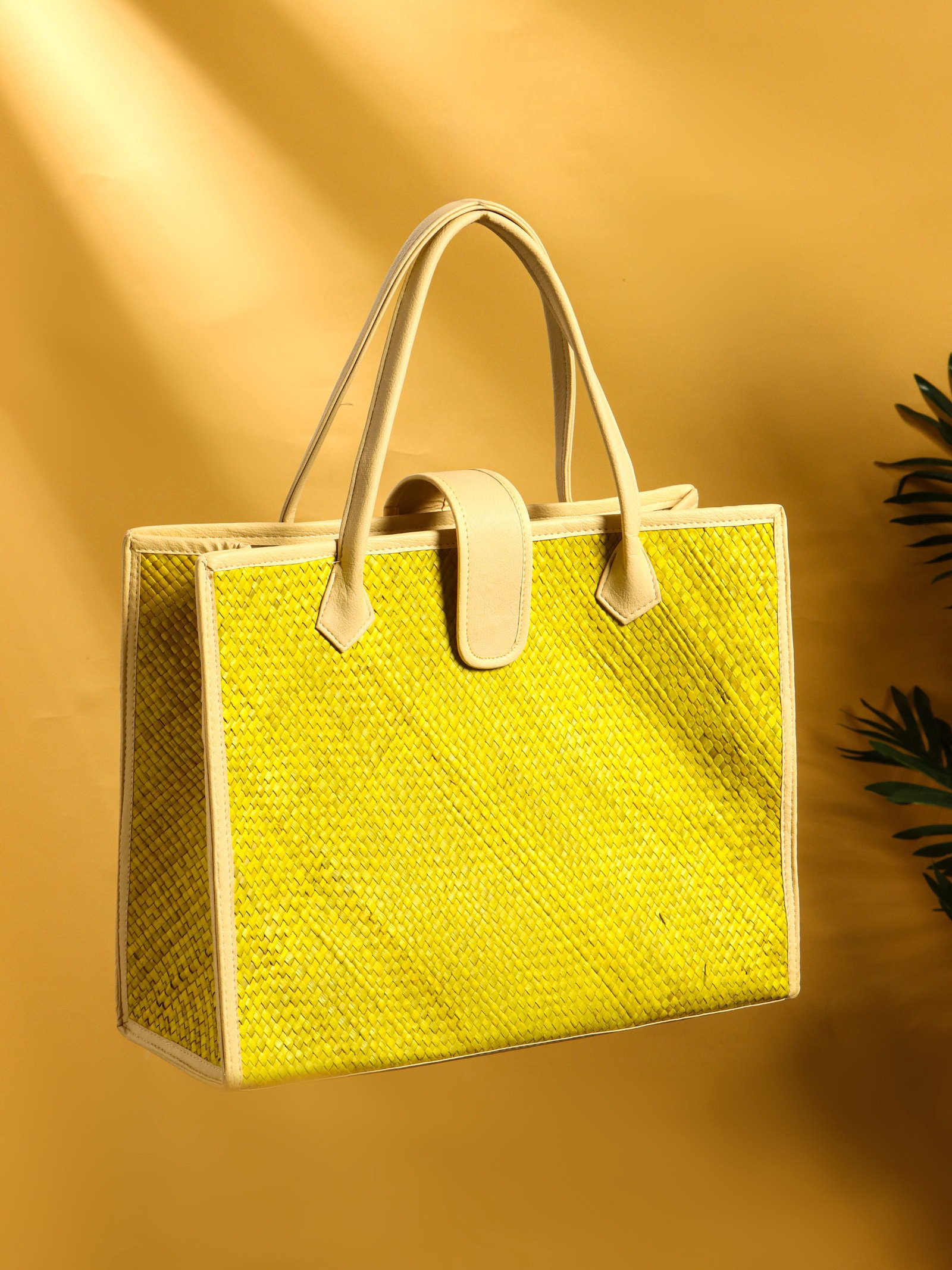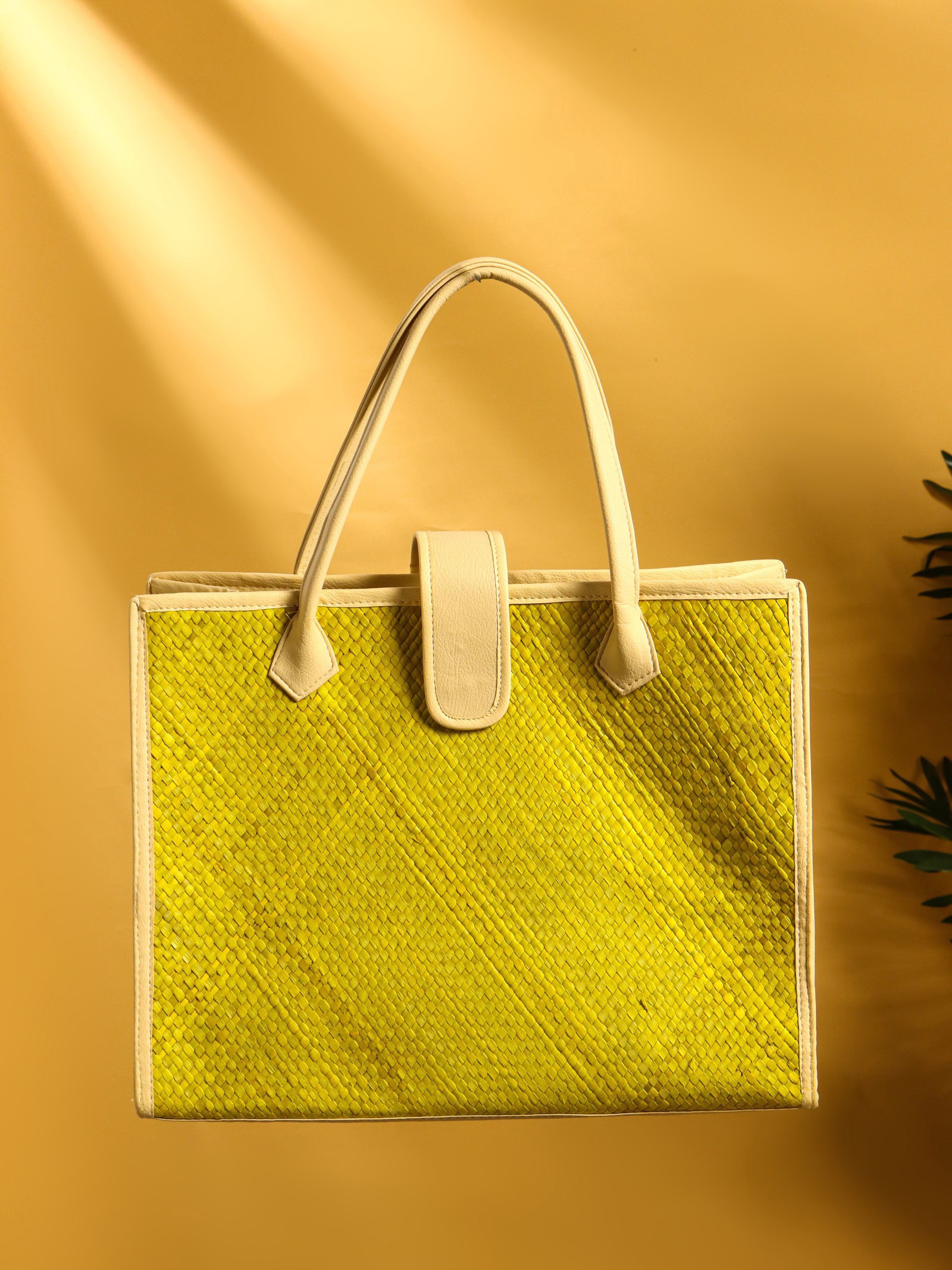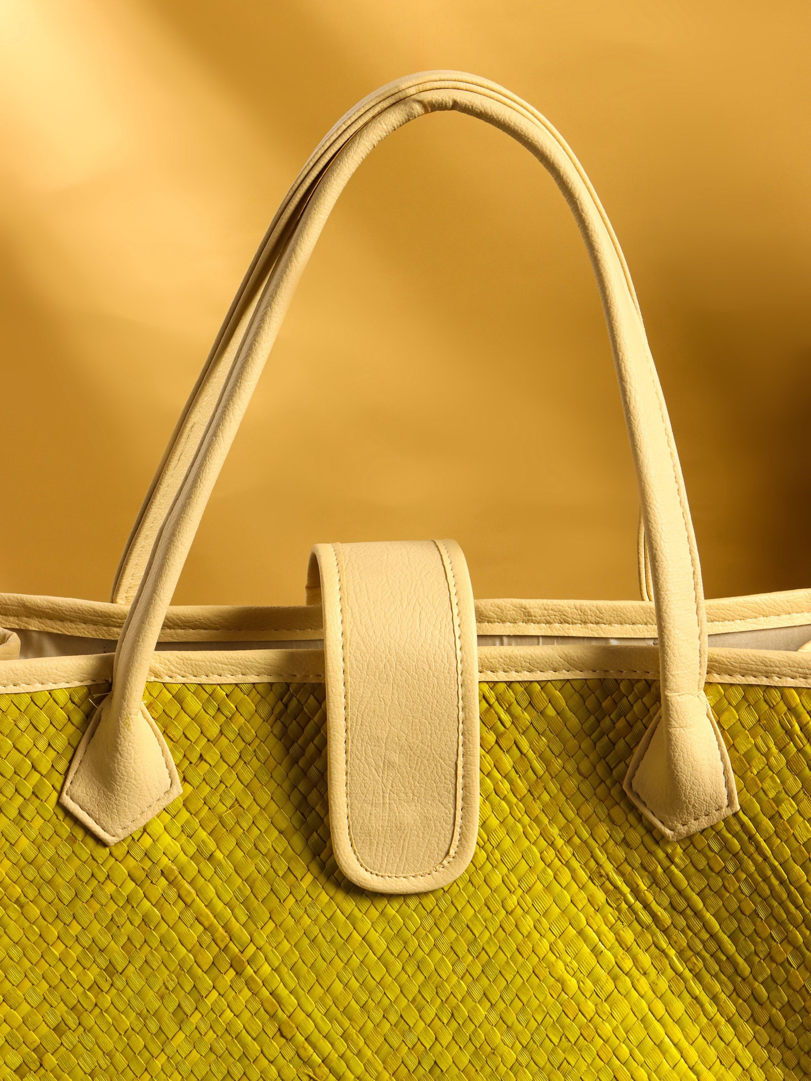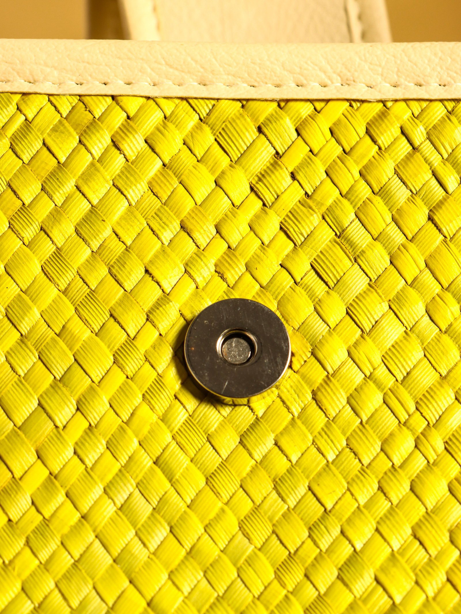 Сумка плетёная на застёжке из пандана, 41x16x50 см, жёлто-белая, 16x41x32 см., Индонезия