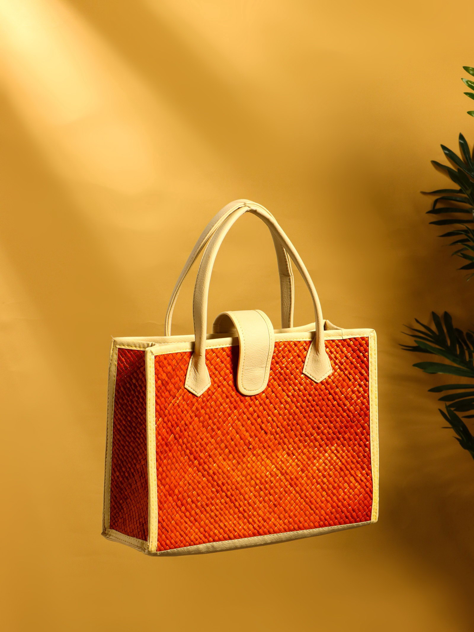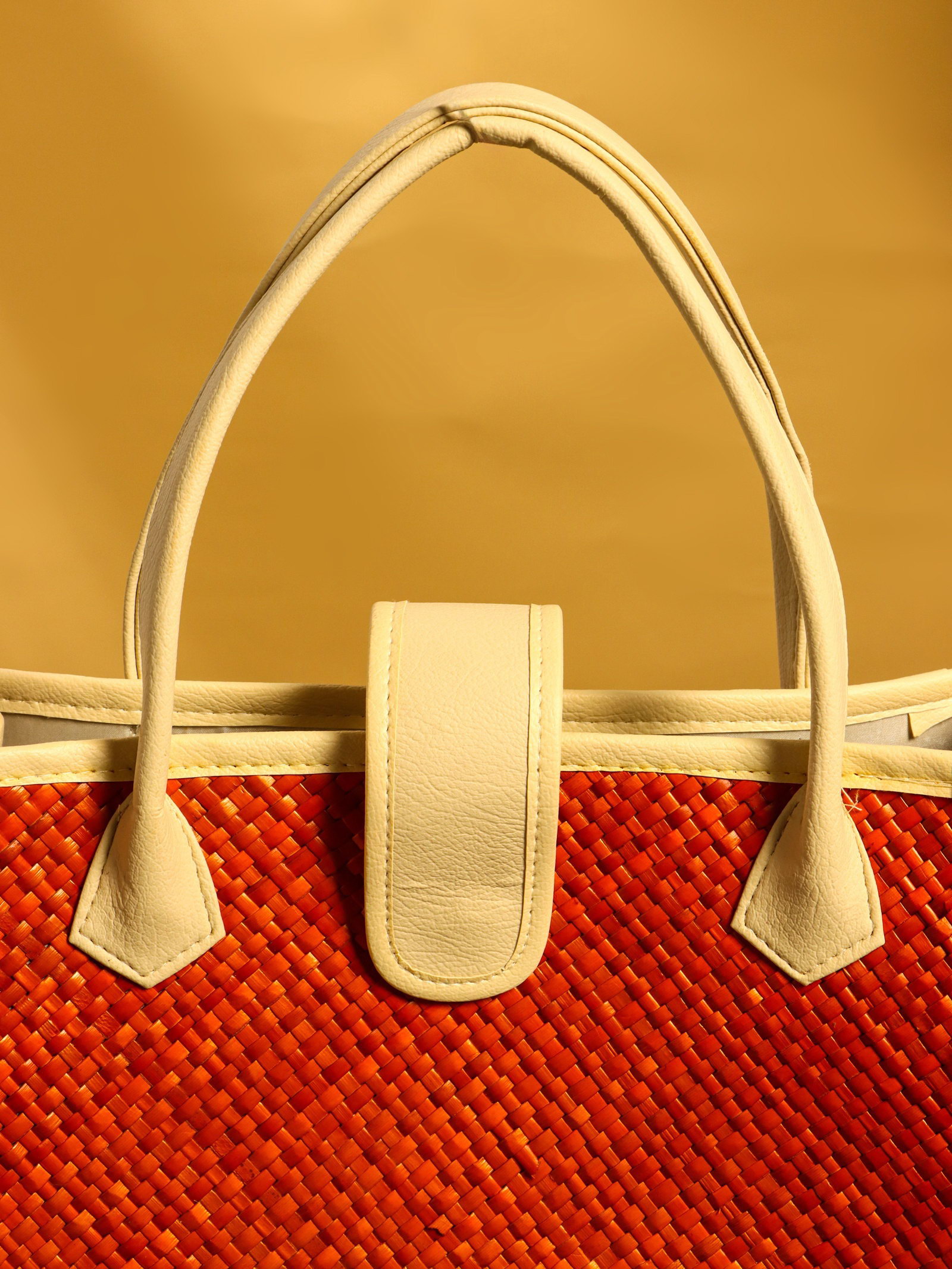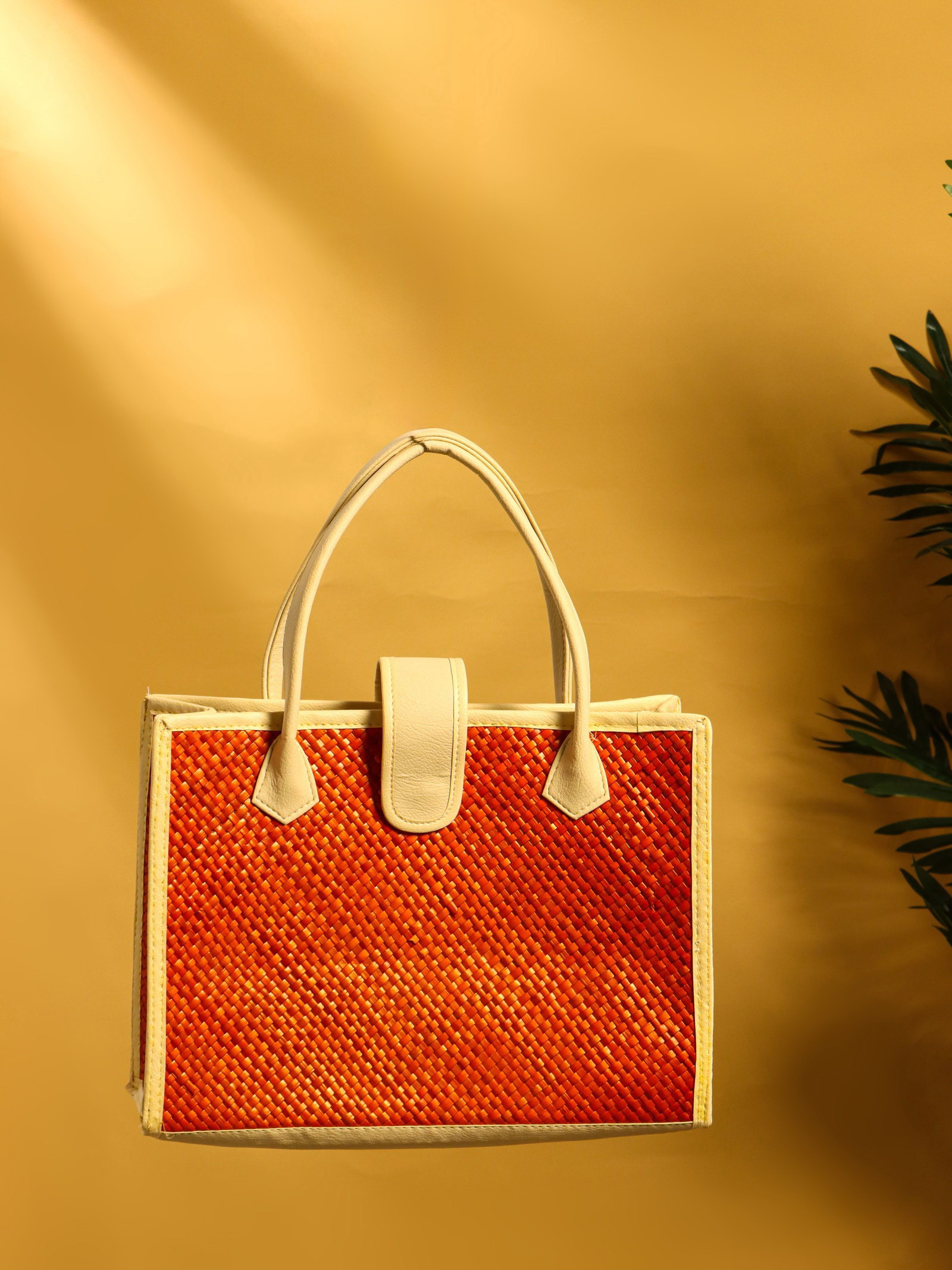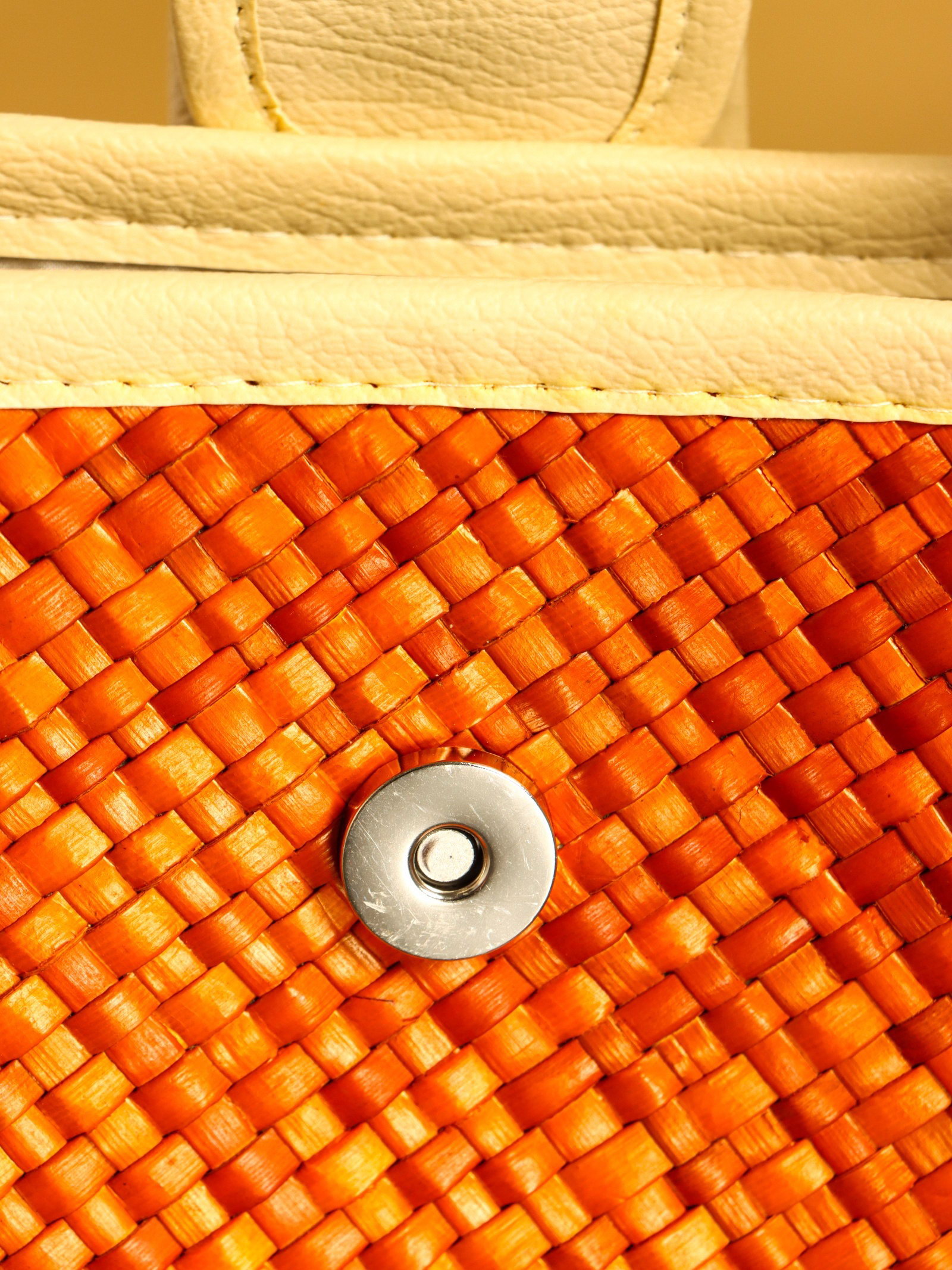 Сумка плетёная на застёжке из пандана, 35x12x40 см, бежево-оранжевая, 12x35x25 см., Индонезия