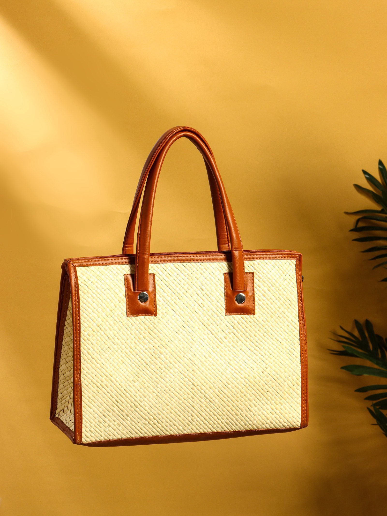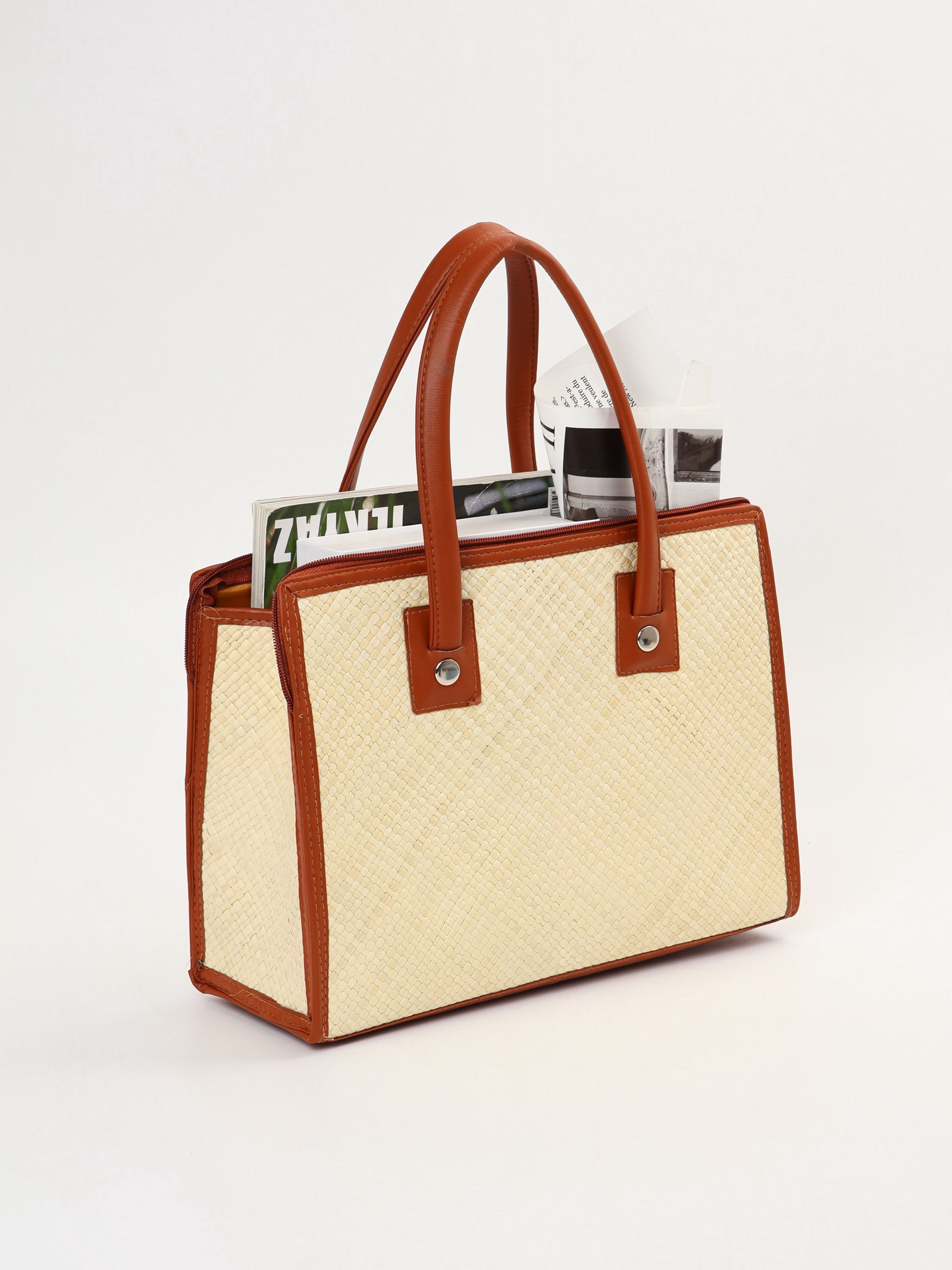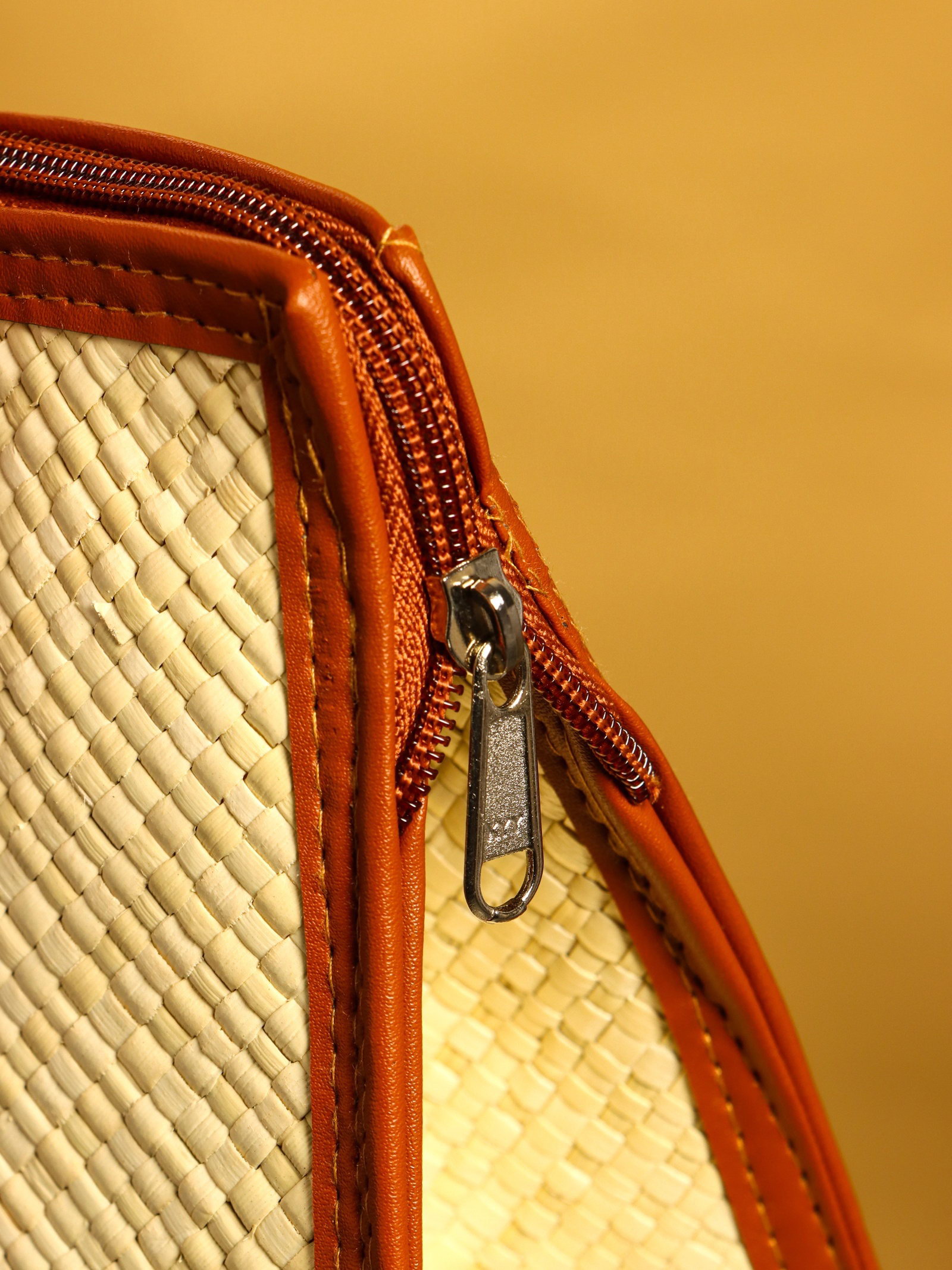 Сумка плетёная на молнии из пандана, 35x12x40 см, бежево-коричневая, 12x35x25 см., Индонезия