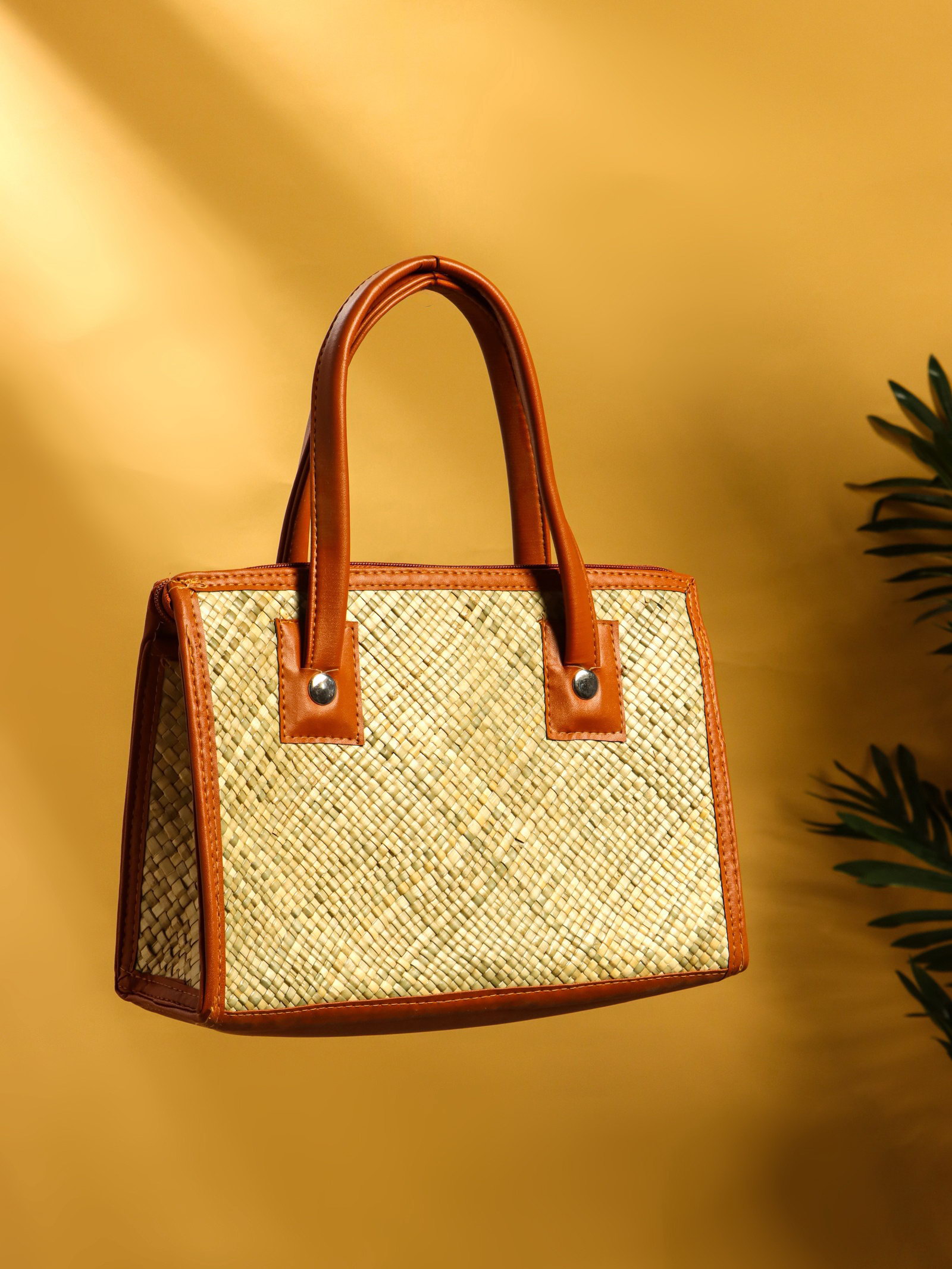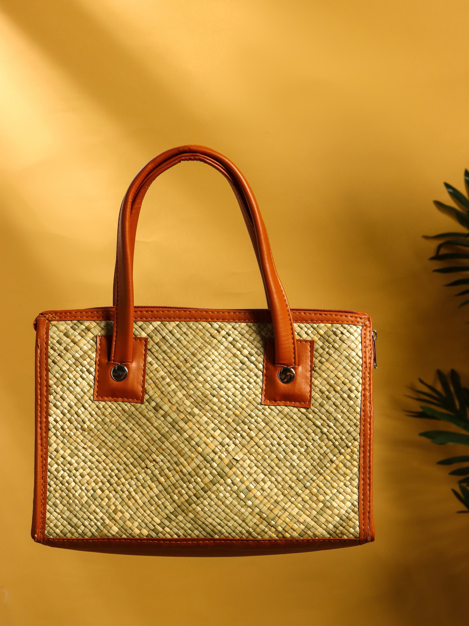 Сумка плетёная на молнии из пандана, 30x10x35 см, светло-коричневая, 10x30x20 см., Индонезия