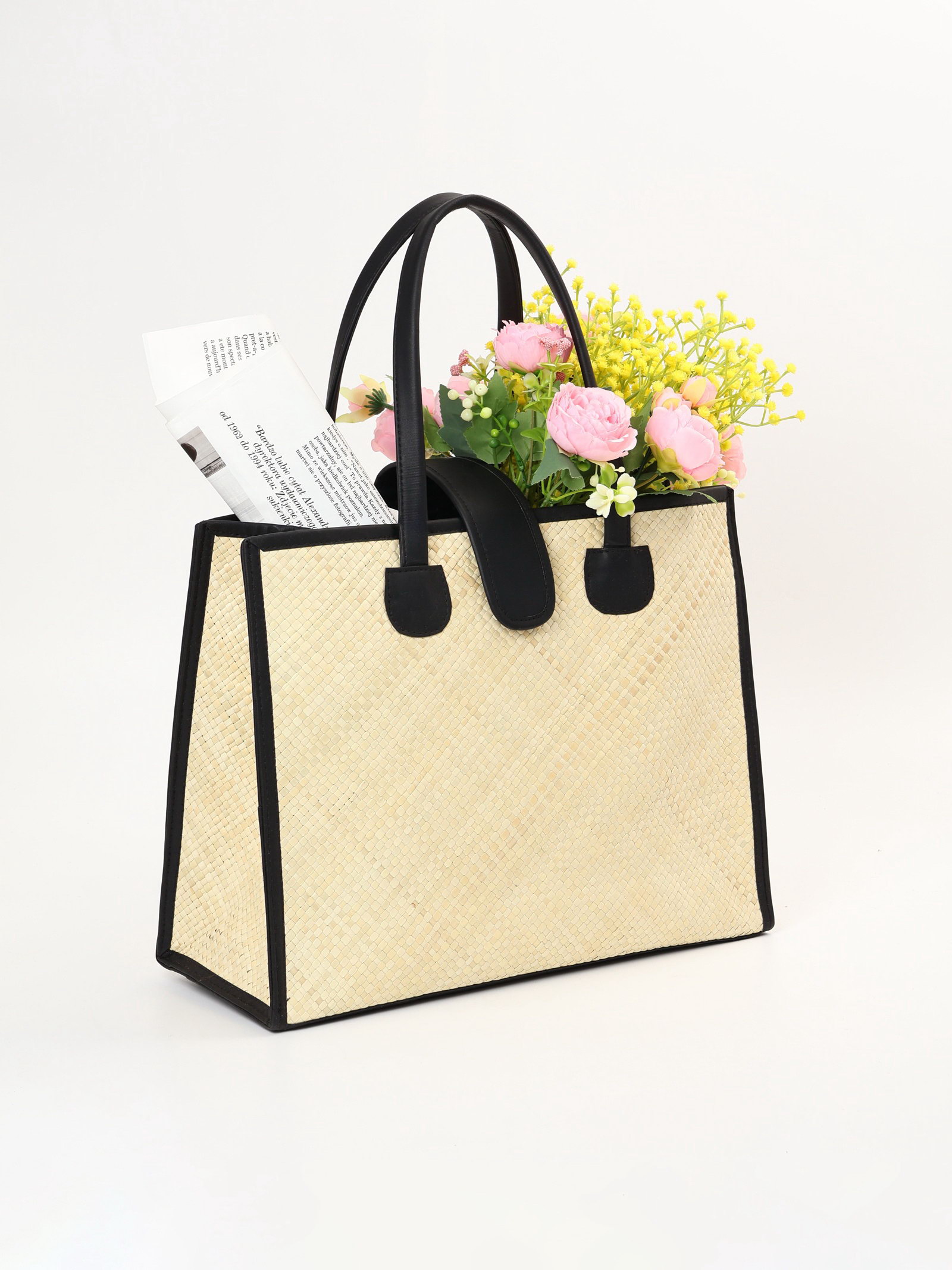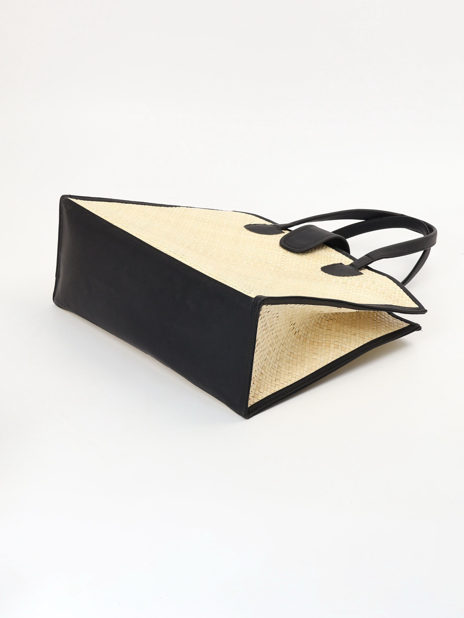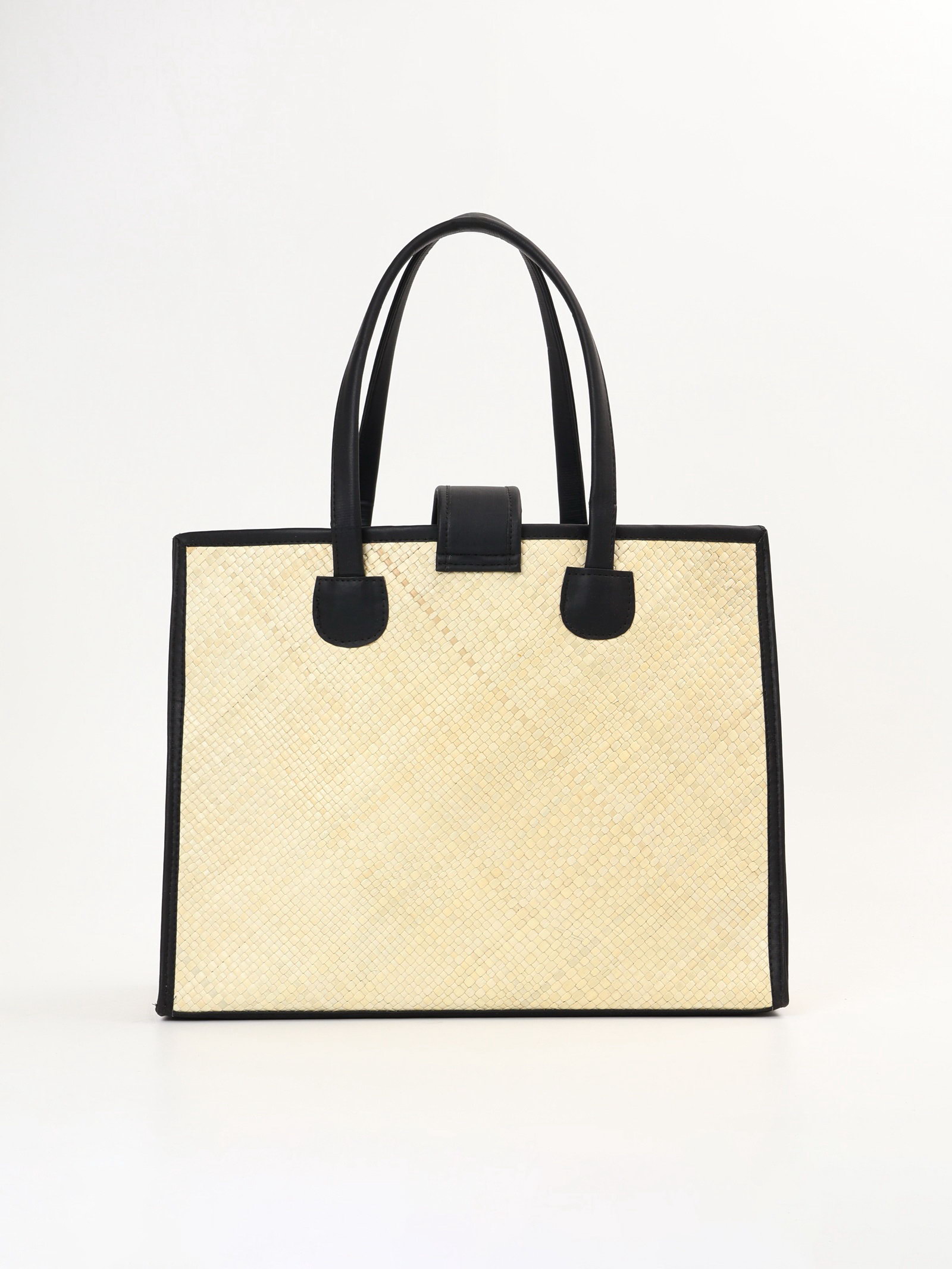 Сумка плетёная на застёжке из пандана, 41x16x50 см, бежево-чёрная, 16x41x32 см., Индонезия