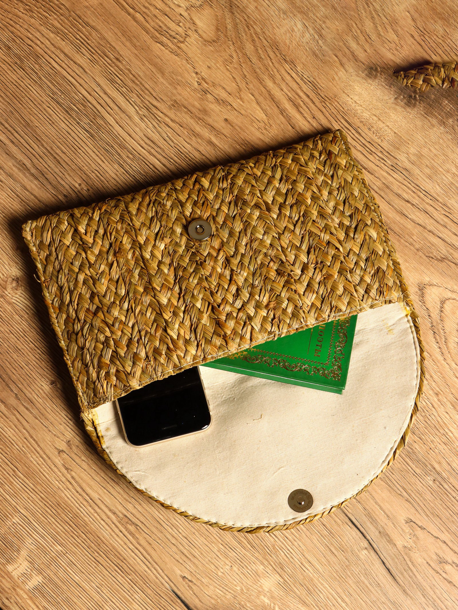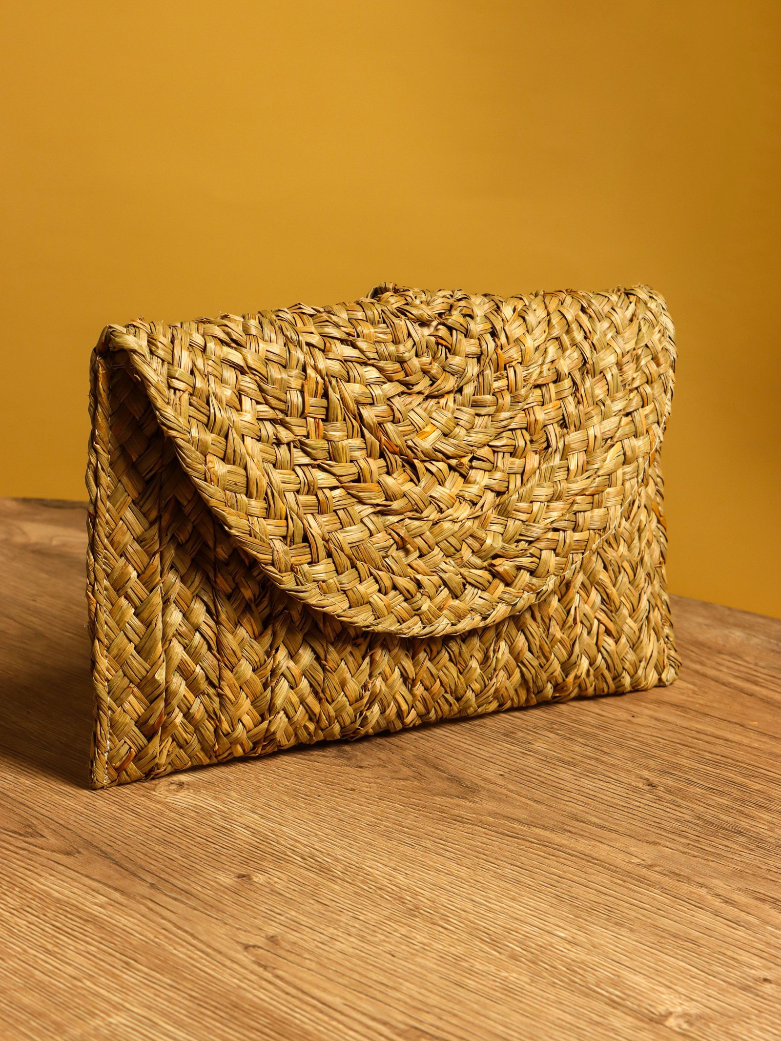 Сумка клатч плетёная из сиграсса, 26x16x3 см, бежевая, 16x26x3 см., Индонезия