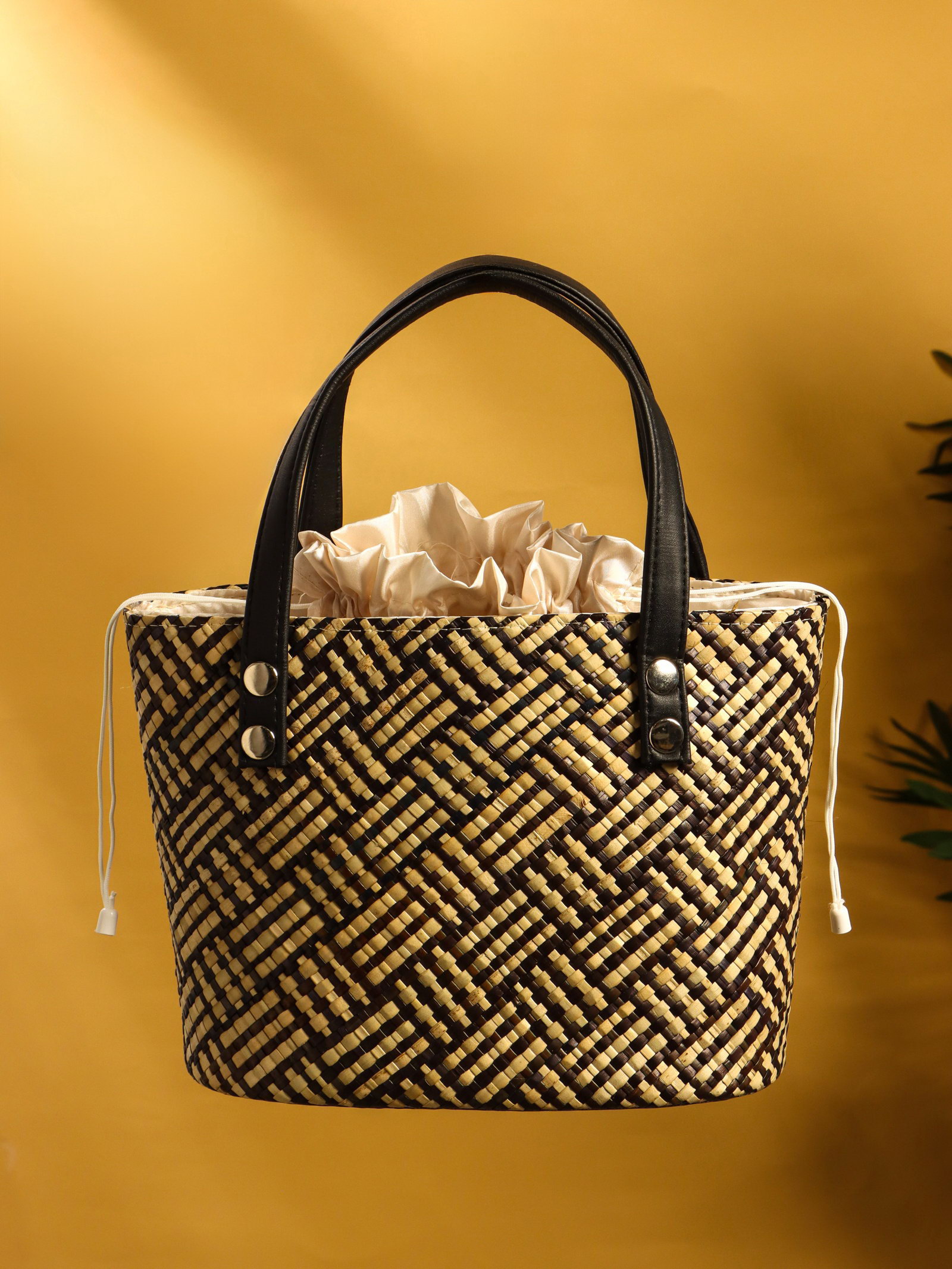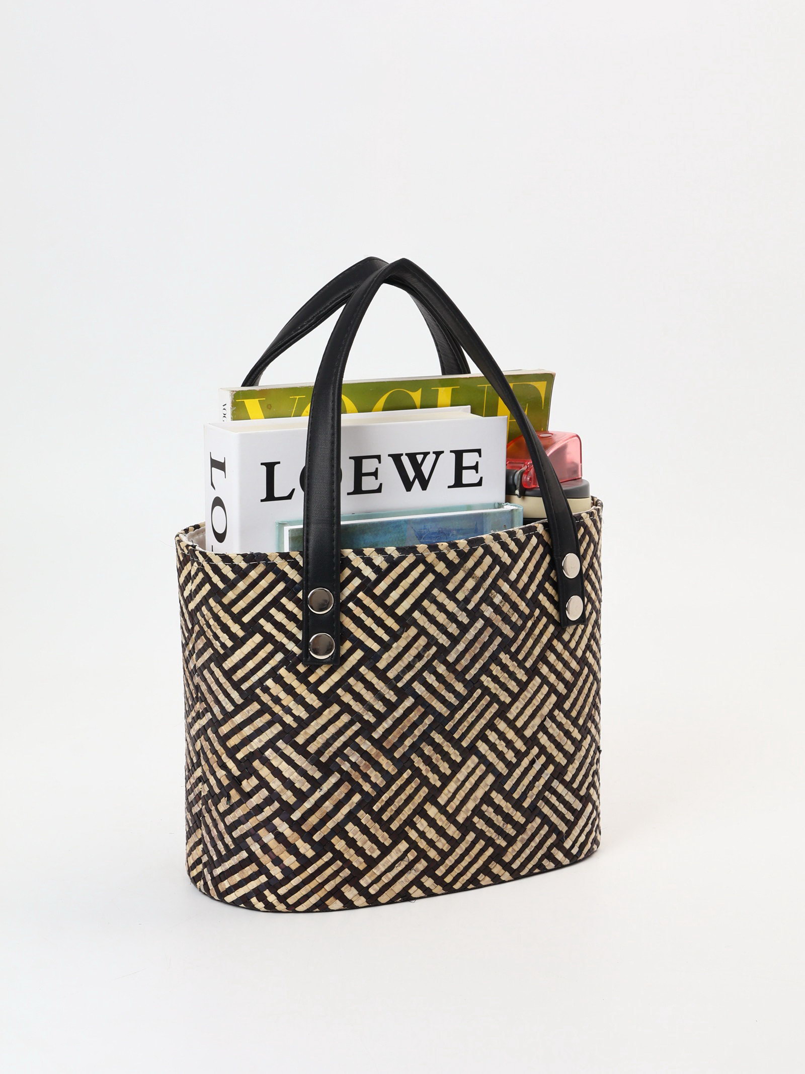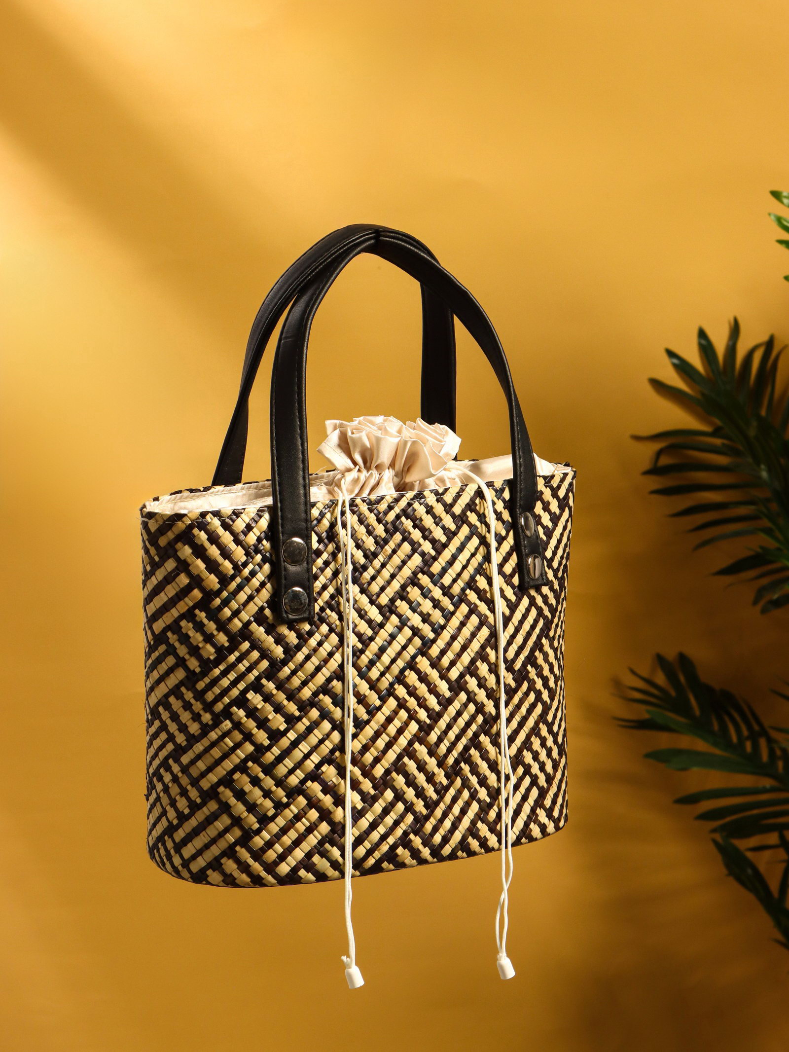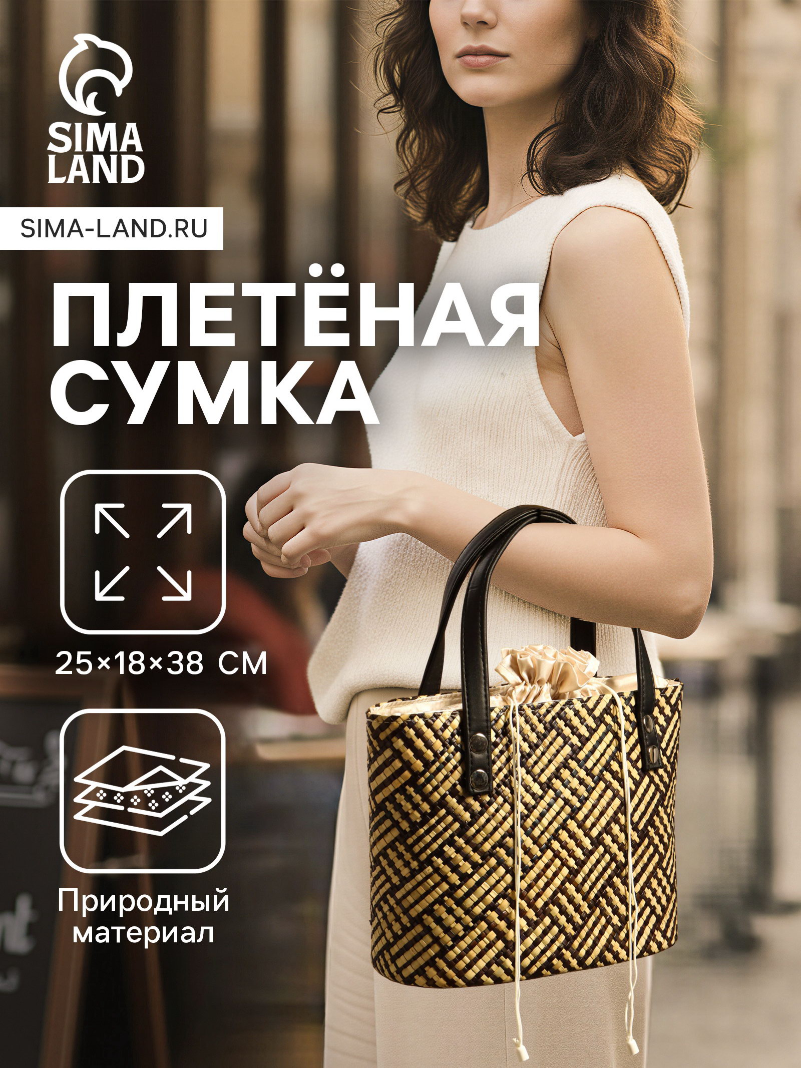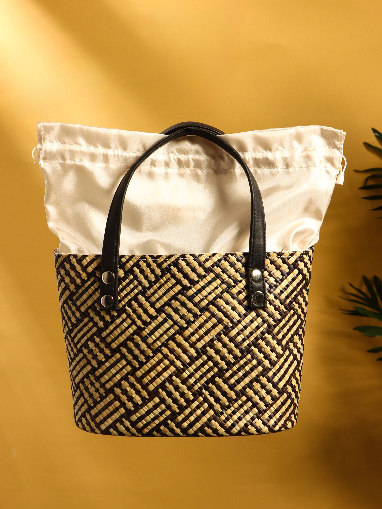 Сумка плетёная из пандана, 25x18x38 см, бежево-коричневая, 18x25x38 см., Индонезия