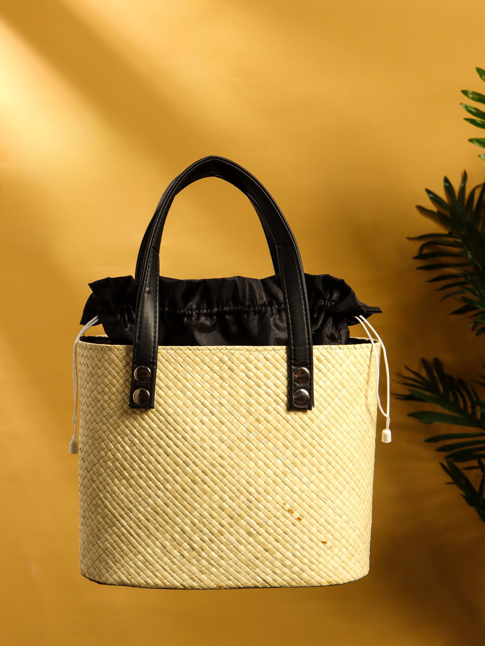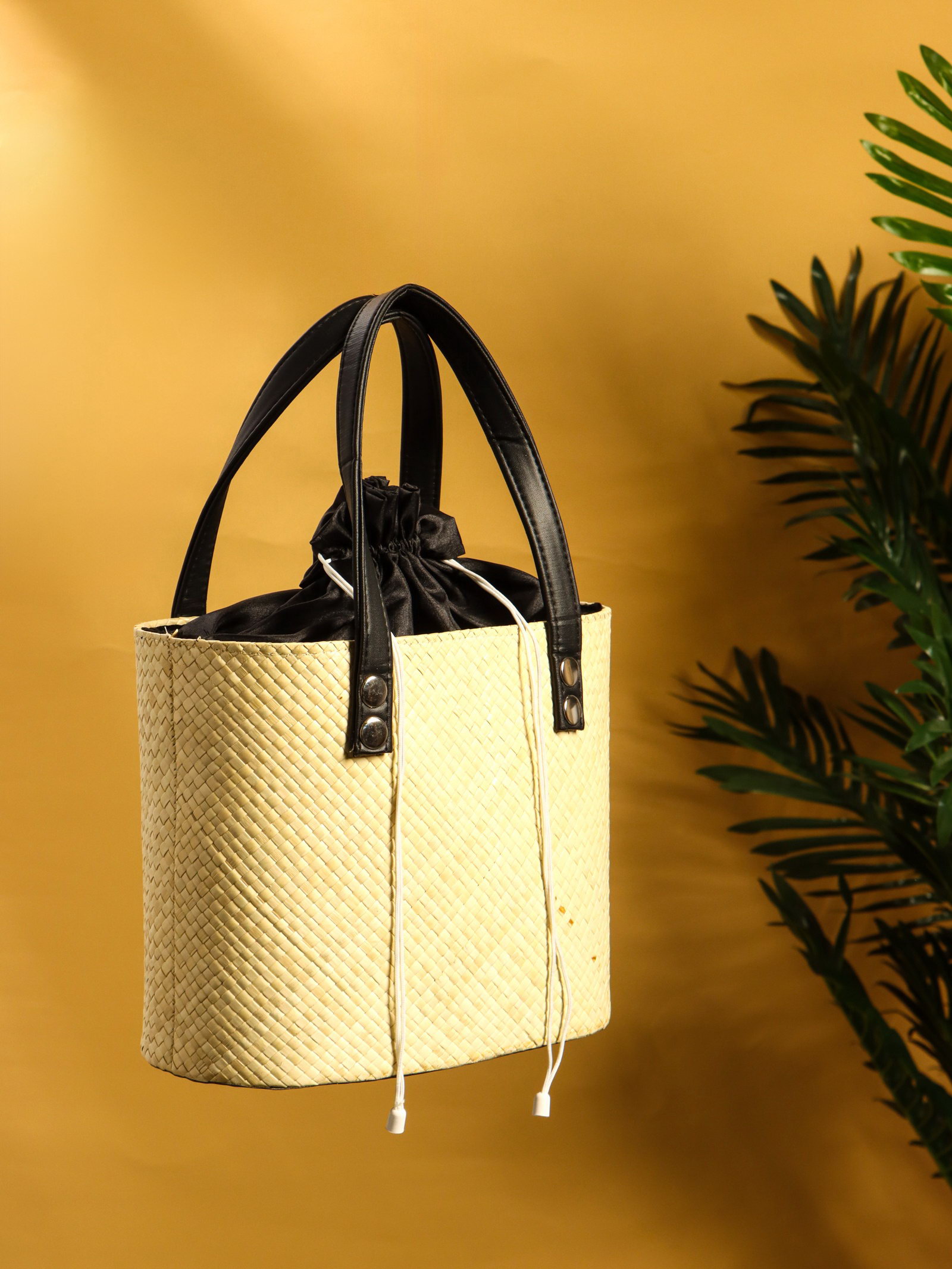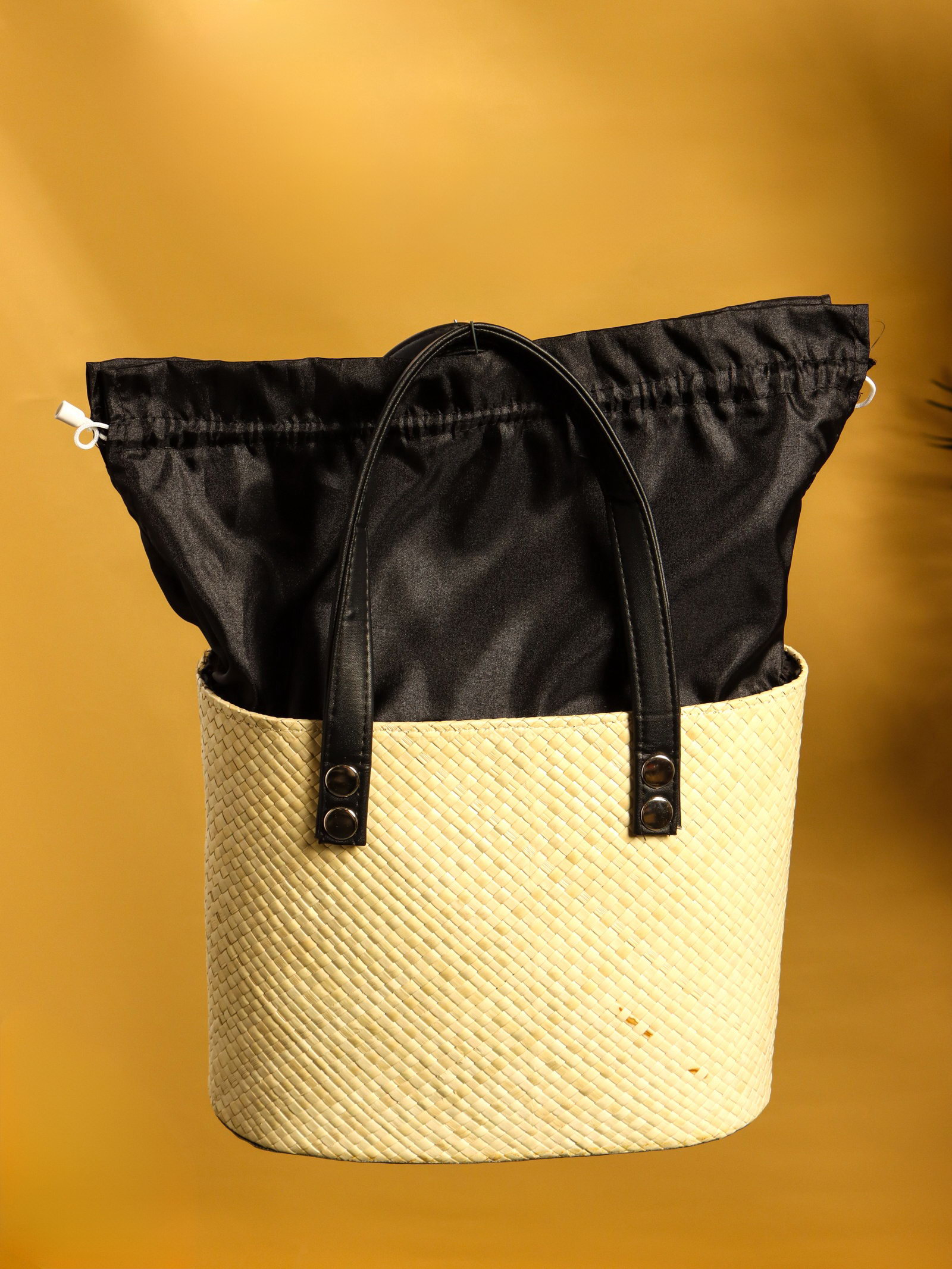 Сумка плетёная из пандана, 26x15x38 см, бежево-чёрная, 18x25x38 см., Индонезия