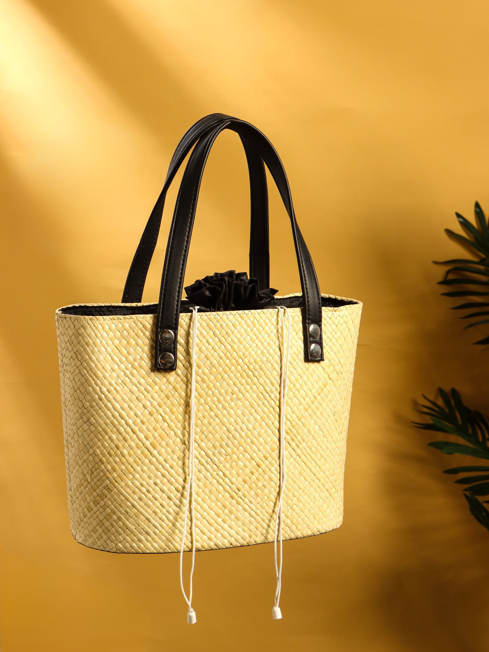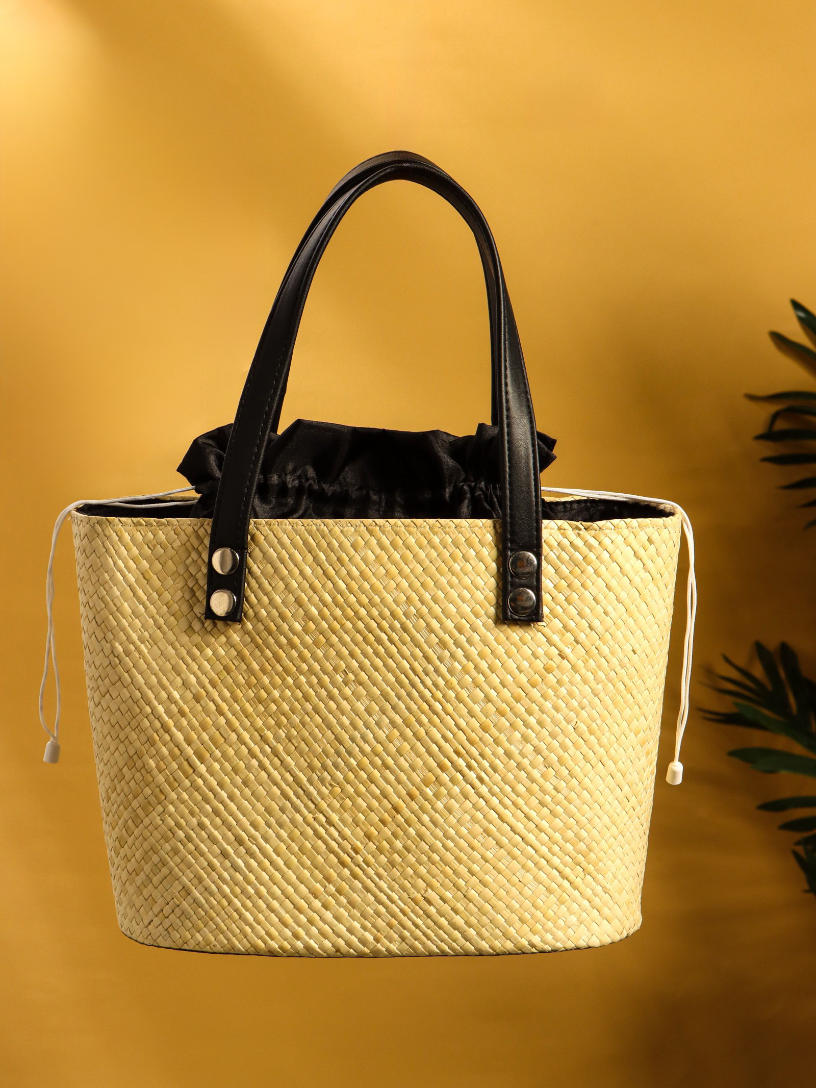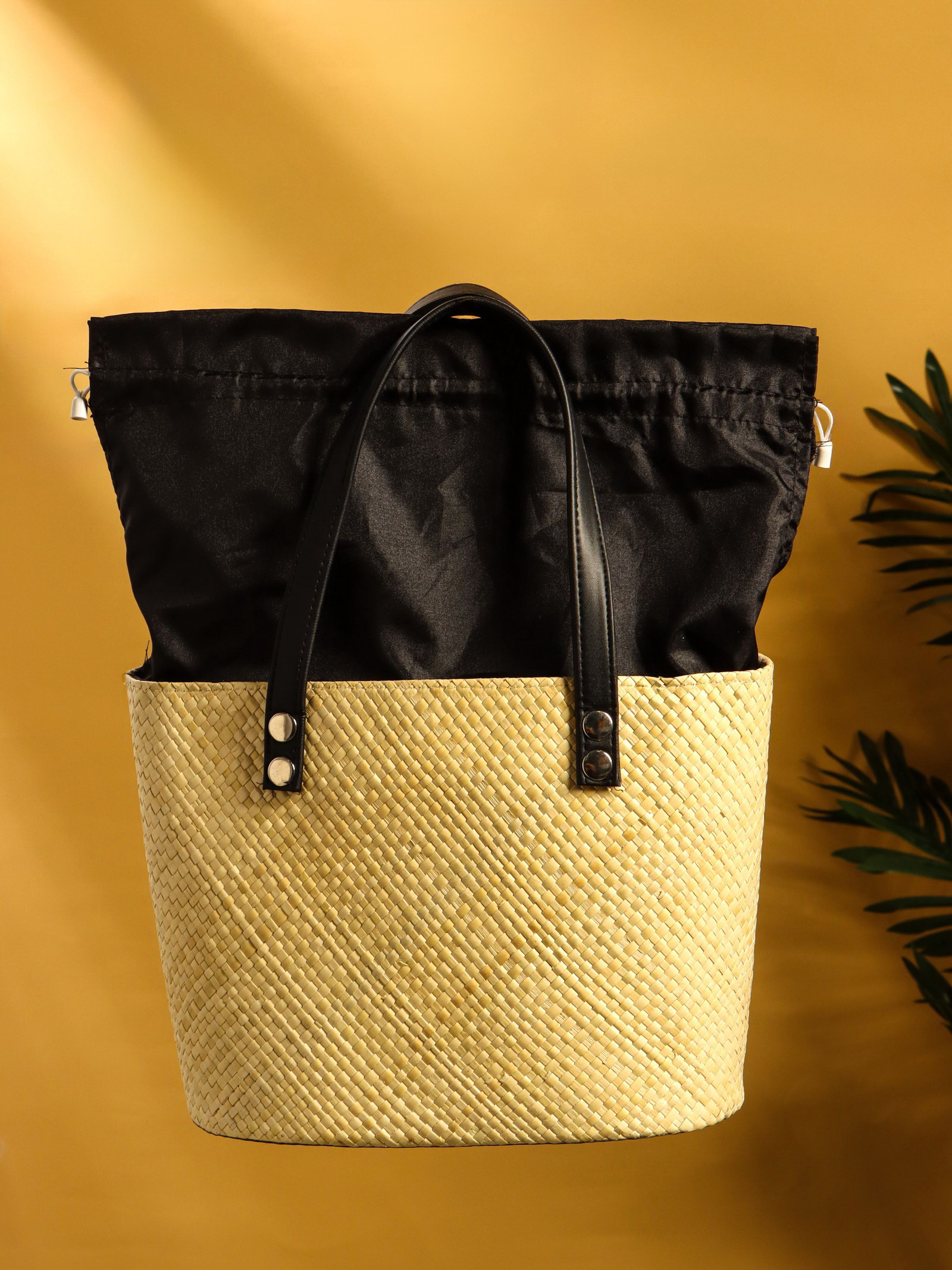 Сумка плетёная из пандана, 29x17x42 см, бежево-чёрная, 19x27x42 см., Индонезия