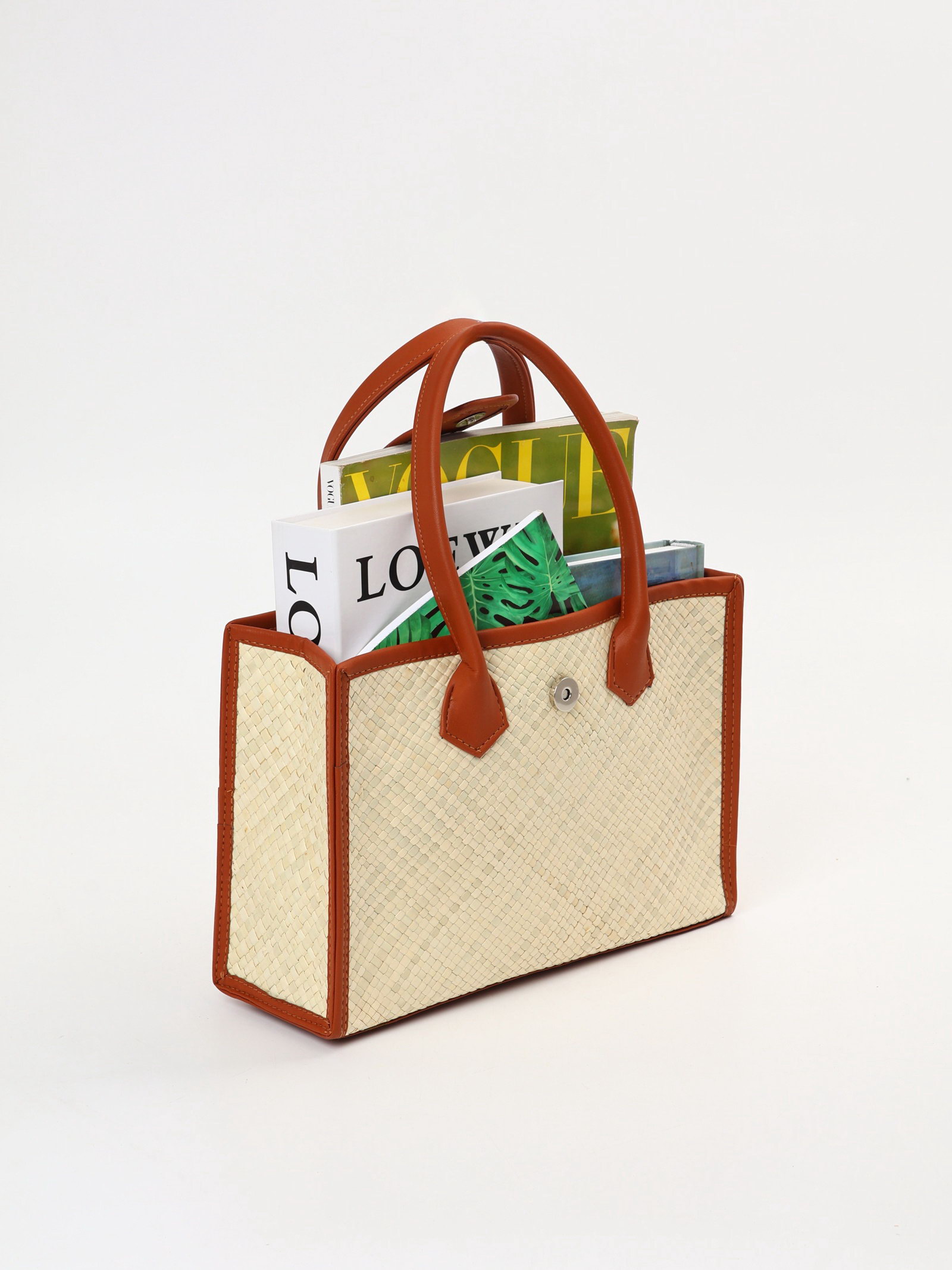 Сумка плетёная на застёжке из пандана, 30x10x35 см, бежево-коричневая, 10x30x20 см., Индонезия