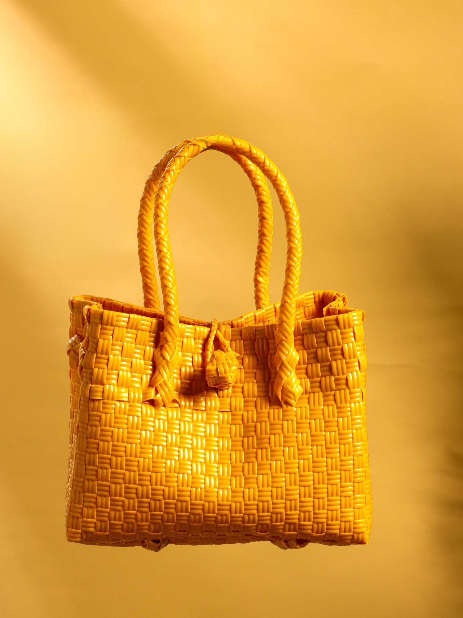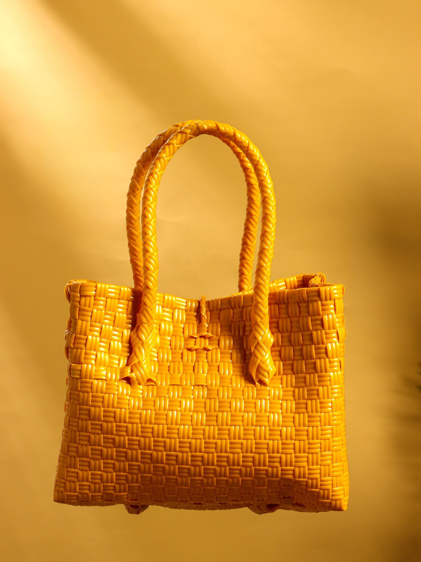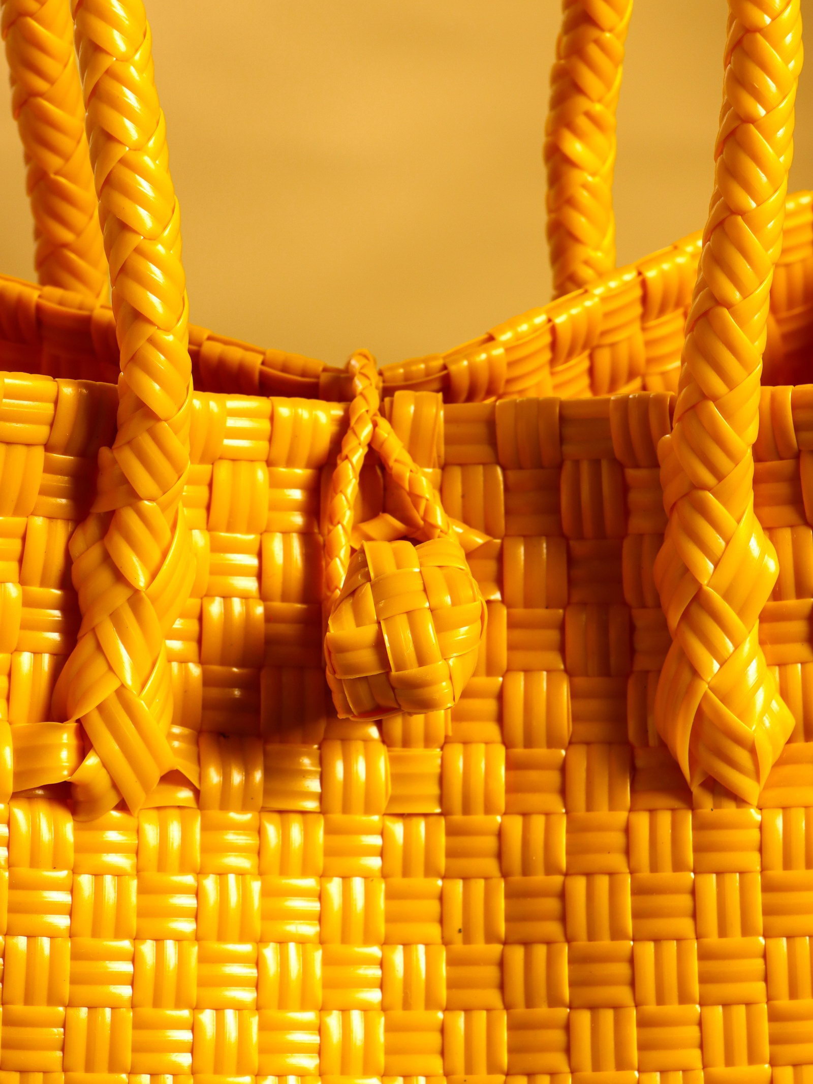 Сумка плетёная пластиковая, 23x11x30 см, жёлтая, 11x23x22 см., Индонезия