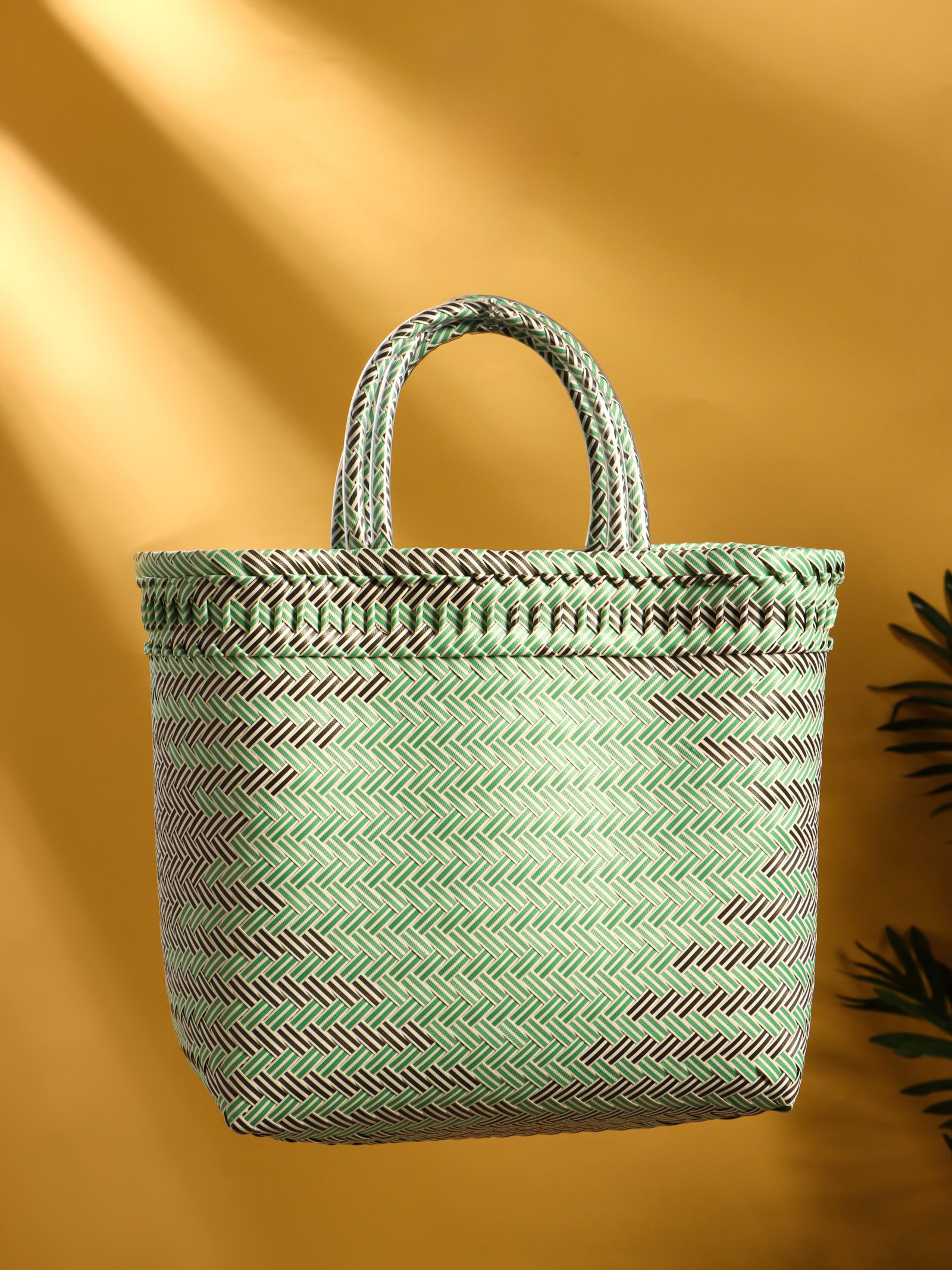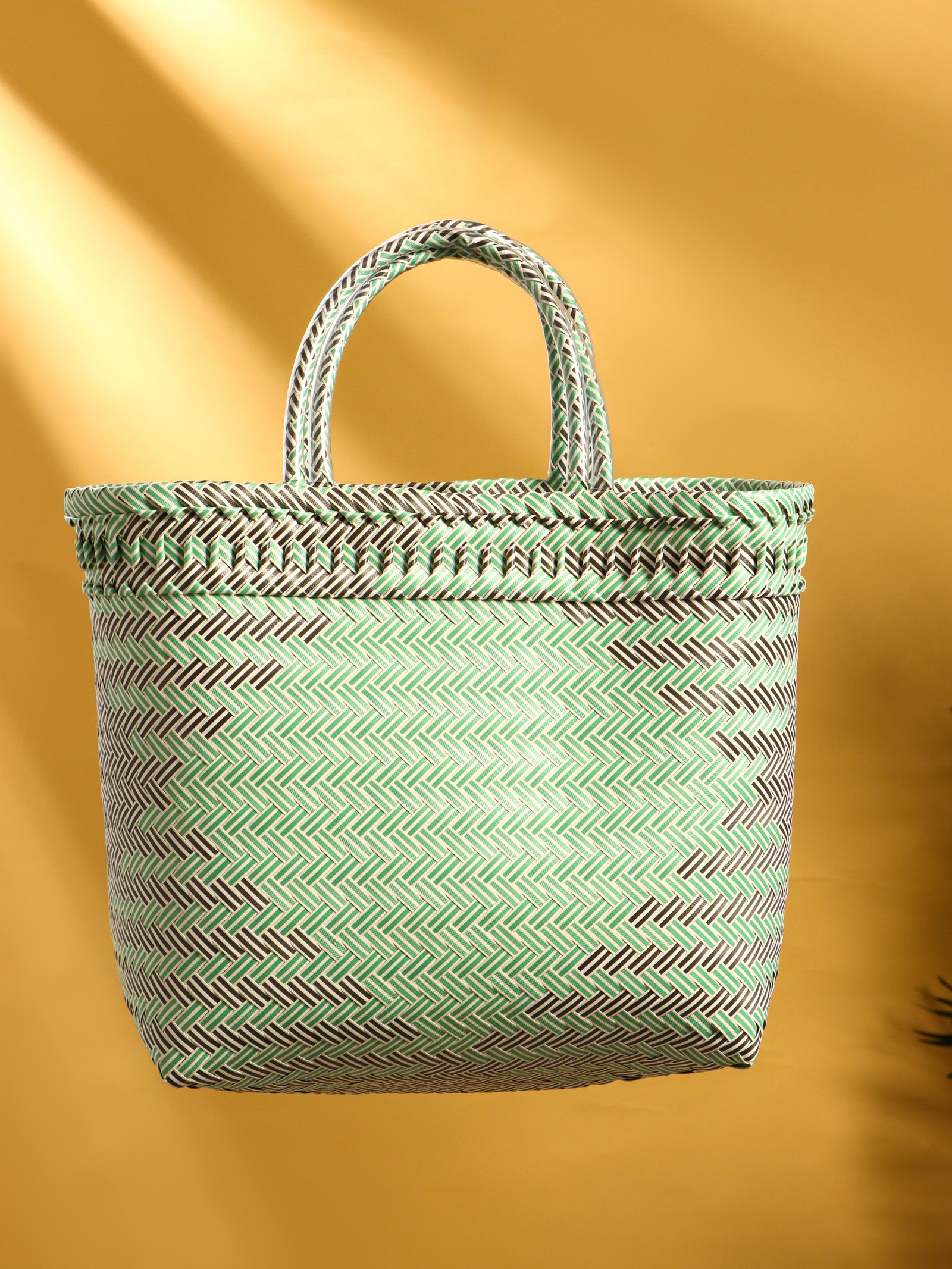 Сумка плетёная, 30x15x35 см, пластик, чёрно-зелёная, 15x30x30 см., Индонезия