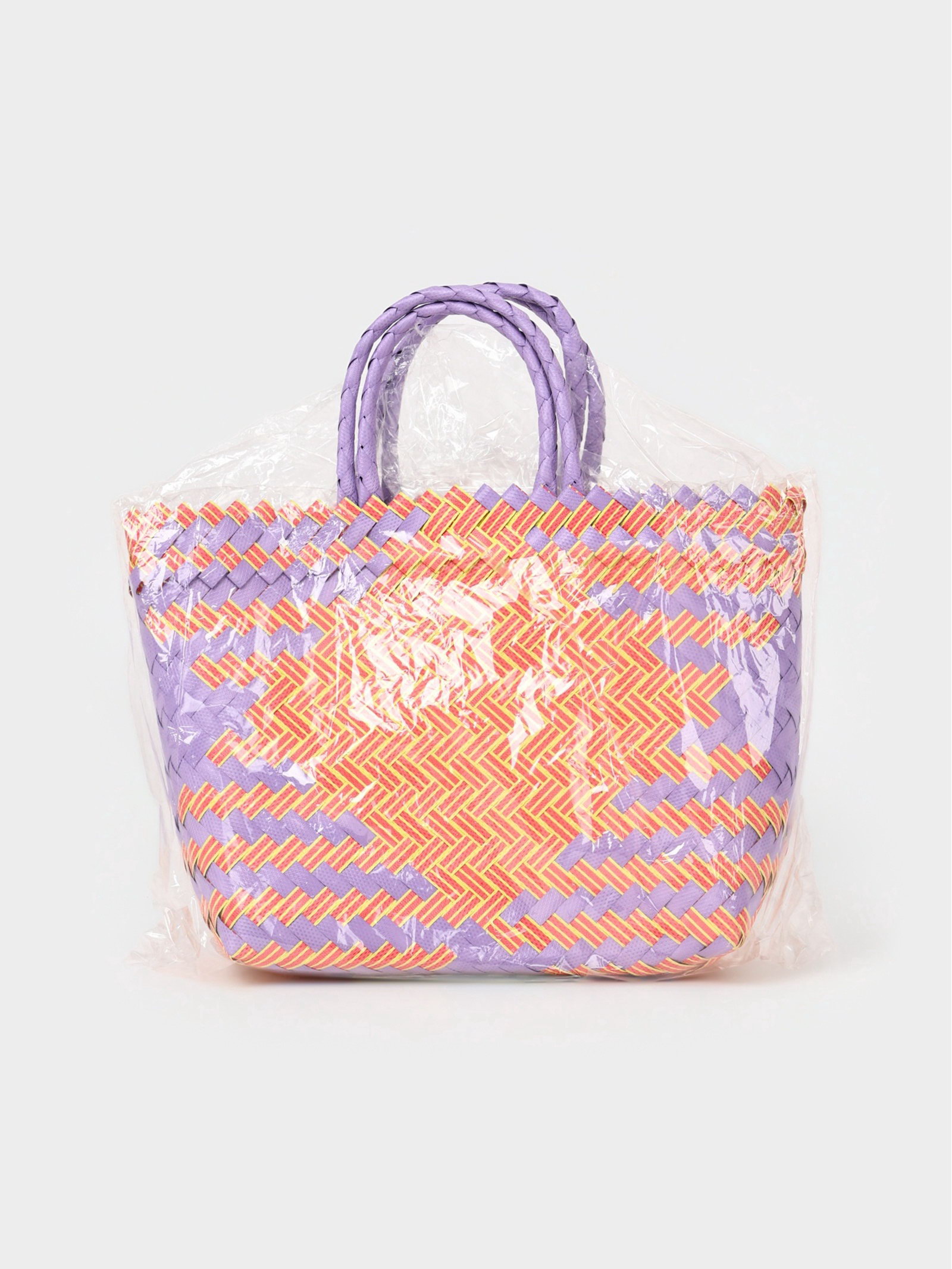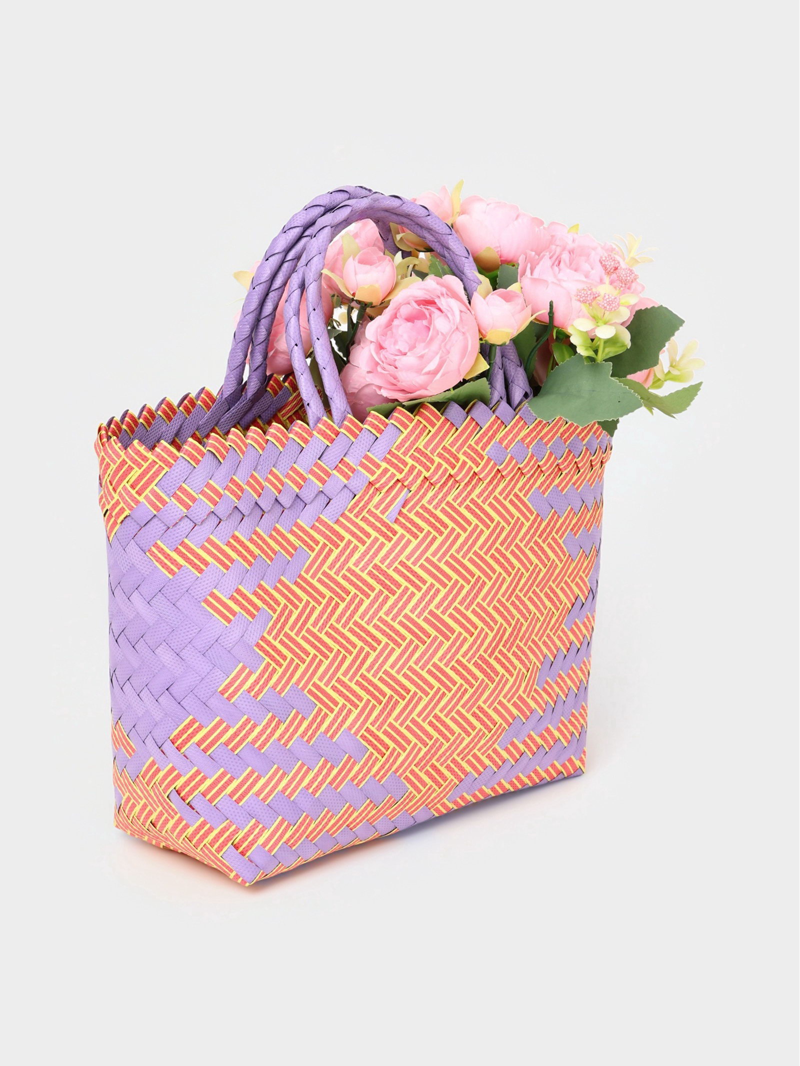 Сумка плетёная, 20x10x30 см, пластик, сиренево-жёлтая, 10x20x23 см., Индонезия