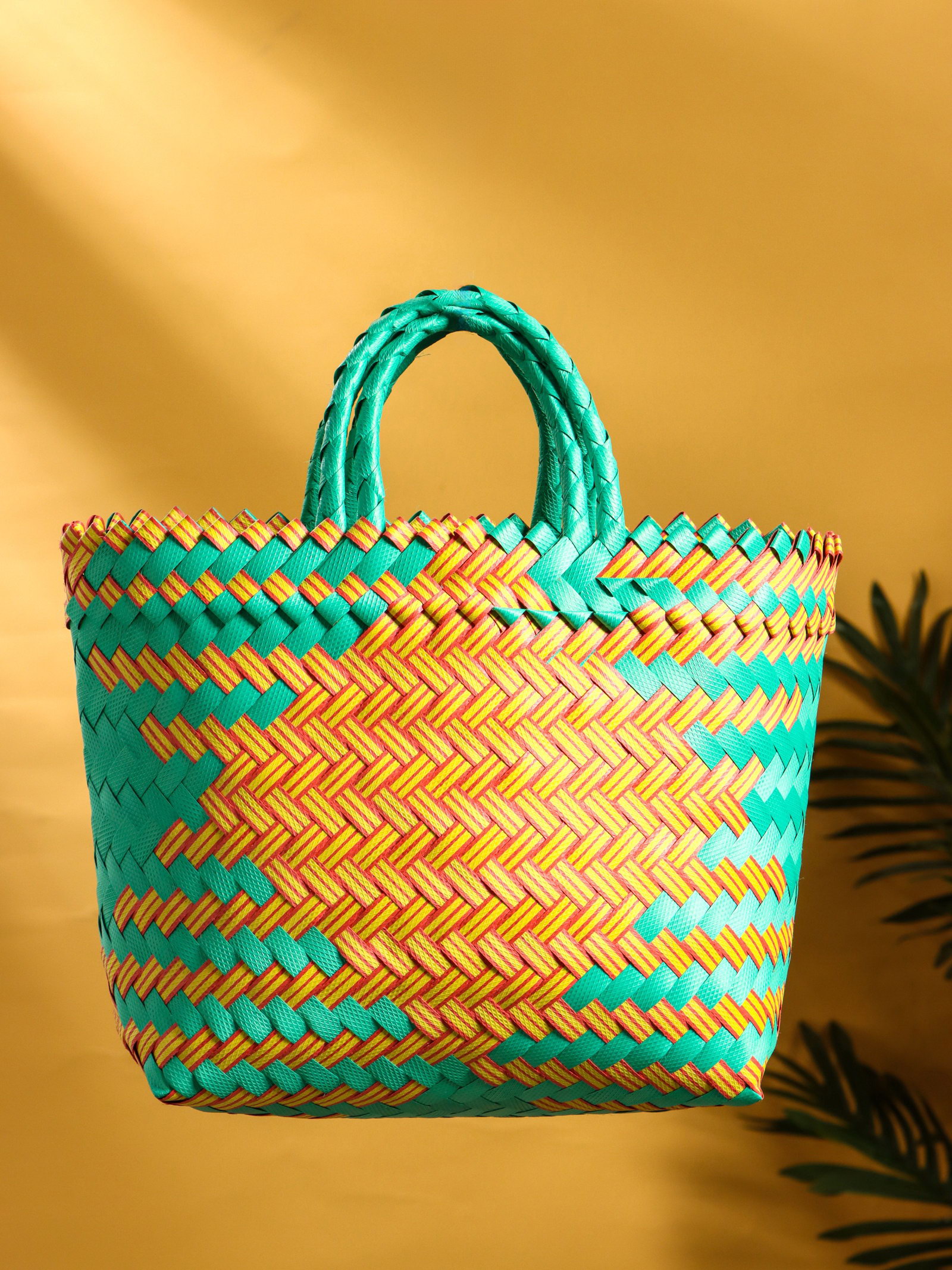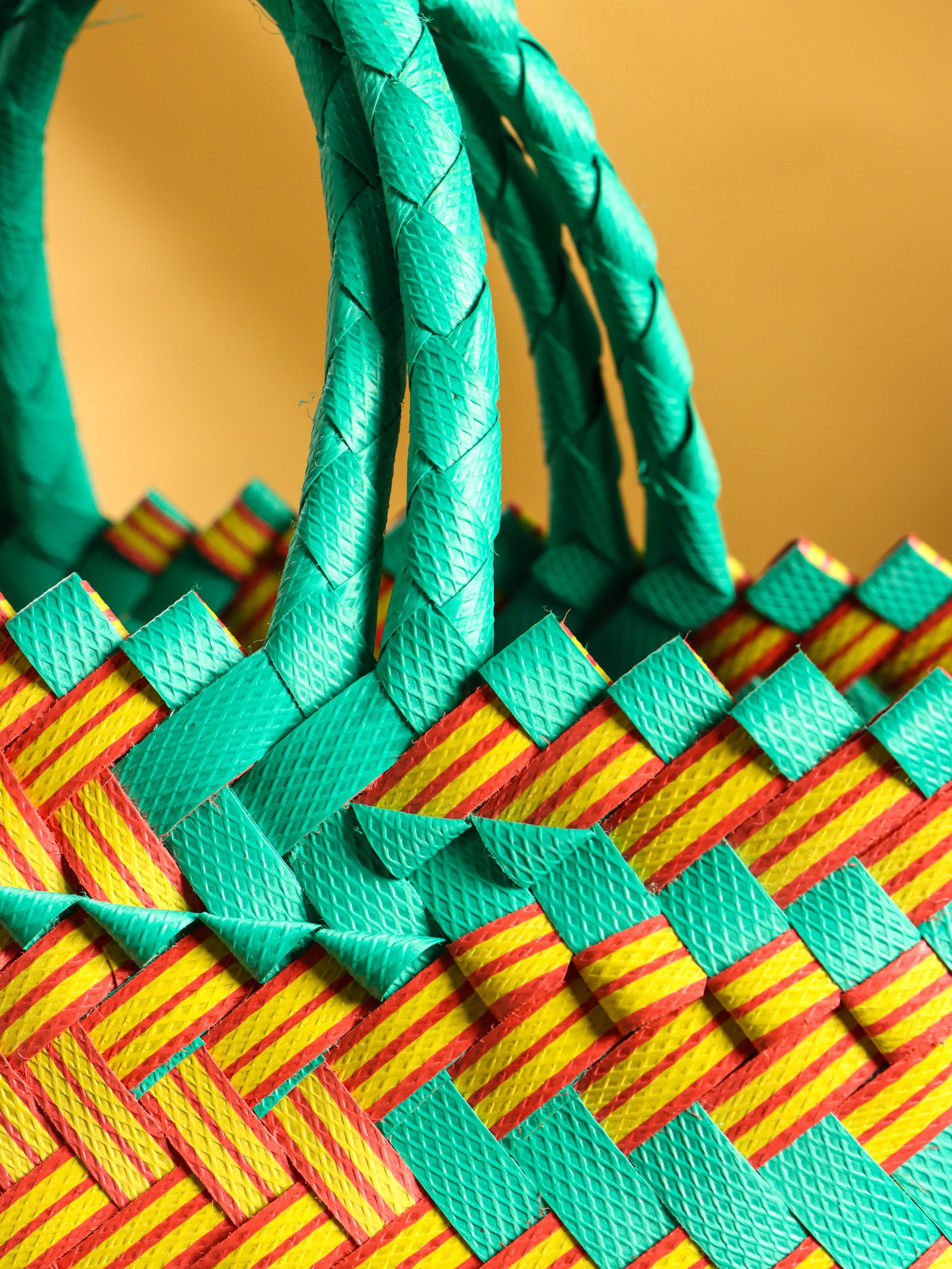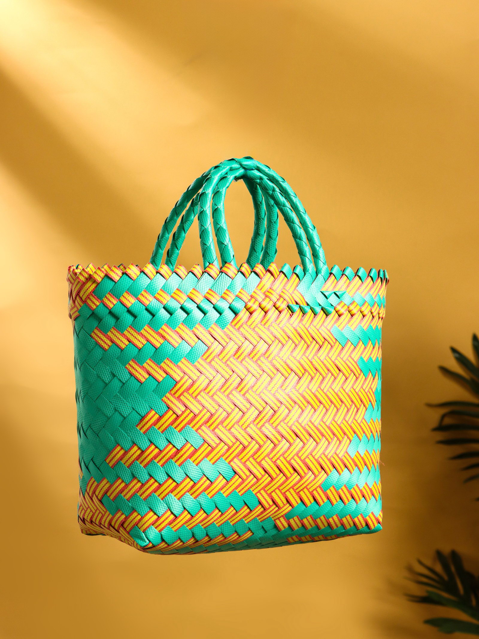 Сумка плетёная, 20x10x30 см, пластик, бирюзово-жёлтая, 10x20x23 см., Индонезия